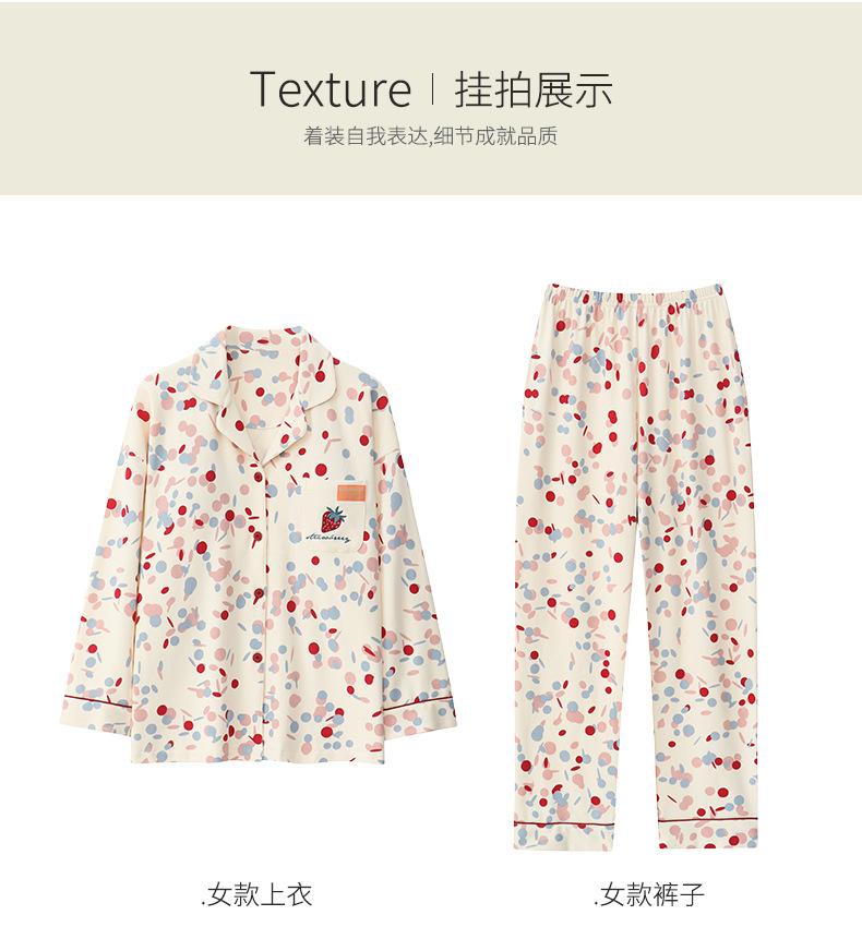 Pijama de Algodón Puro para Mujer Primavera y Otoño 2025 Nuevo Estilo Ropa de Casa para Mujer con Traje con Almohadilla en el Pecho Manga Larga para Invierno