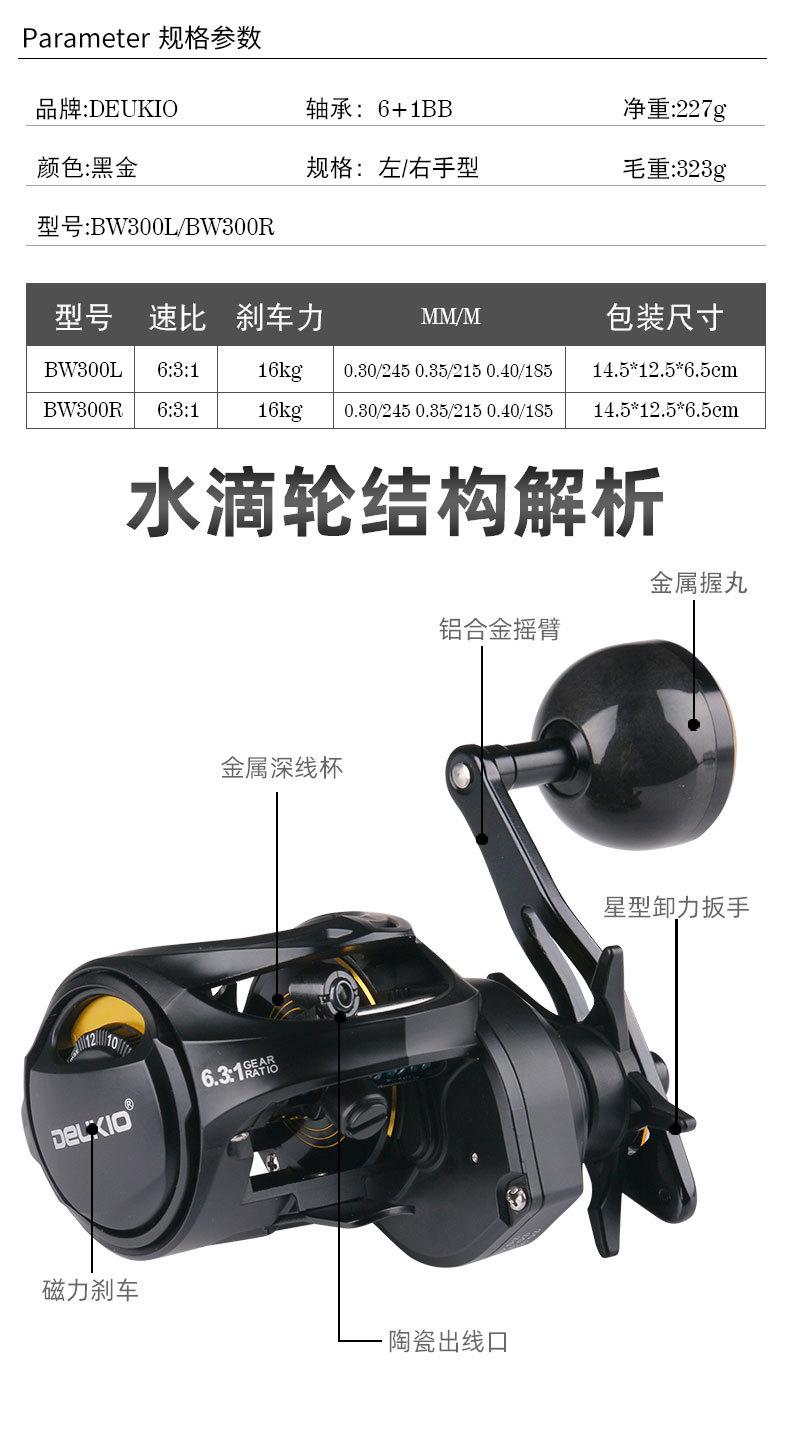 Carrete Diqu Luya de Gota de Agua Placa de Hierro Negro Carrete de Pesca de Barco Cuerpo de Fibra de Carbono Pesca Pesca Carrete de Pesca Lei Qiang Venta al por Mayor