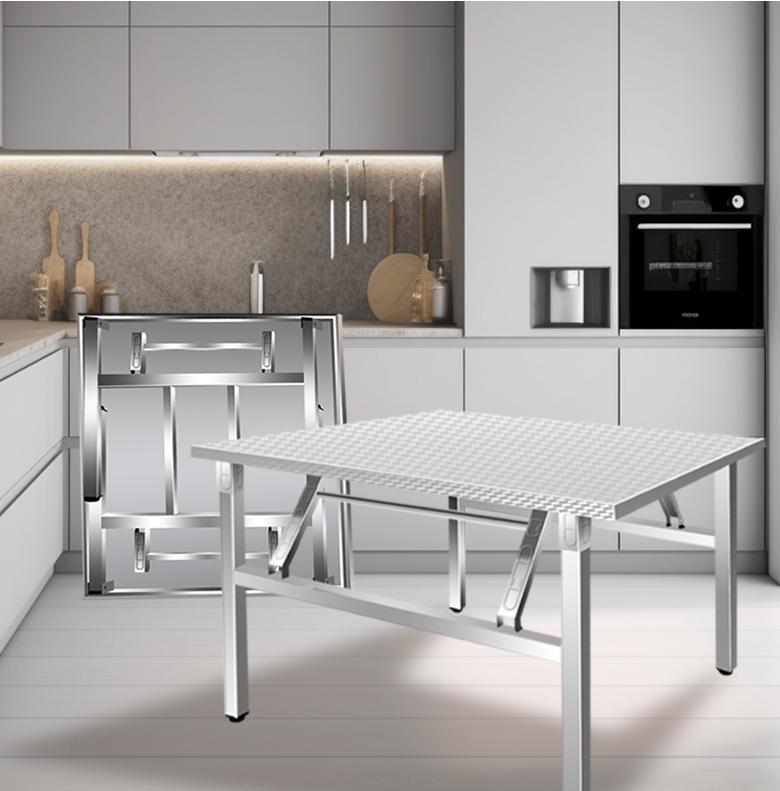 Mesa Plegable de Acero Inoxidable de 5V Mesa de Comedor Engrosada Mesa para Barbacoa Mesa Cuadrada Rectangular Portátil para Comer Puesto de Mercado Nocturno