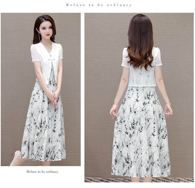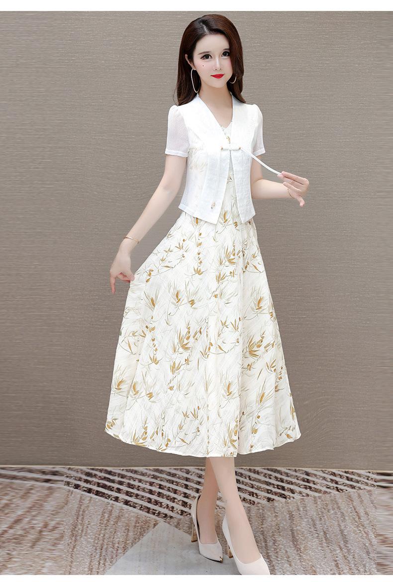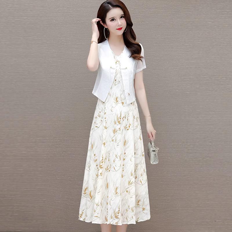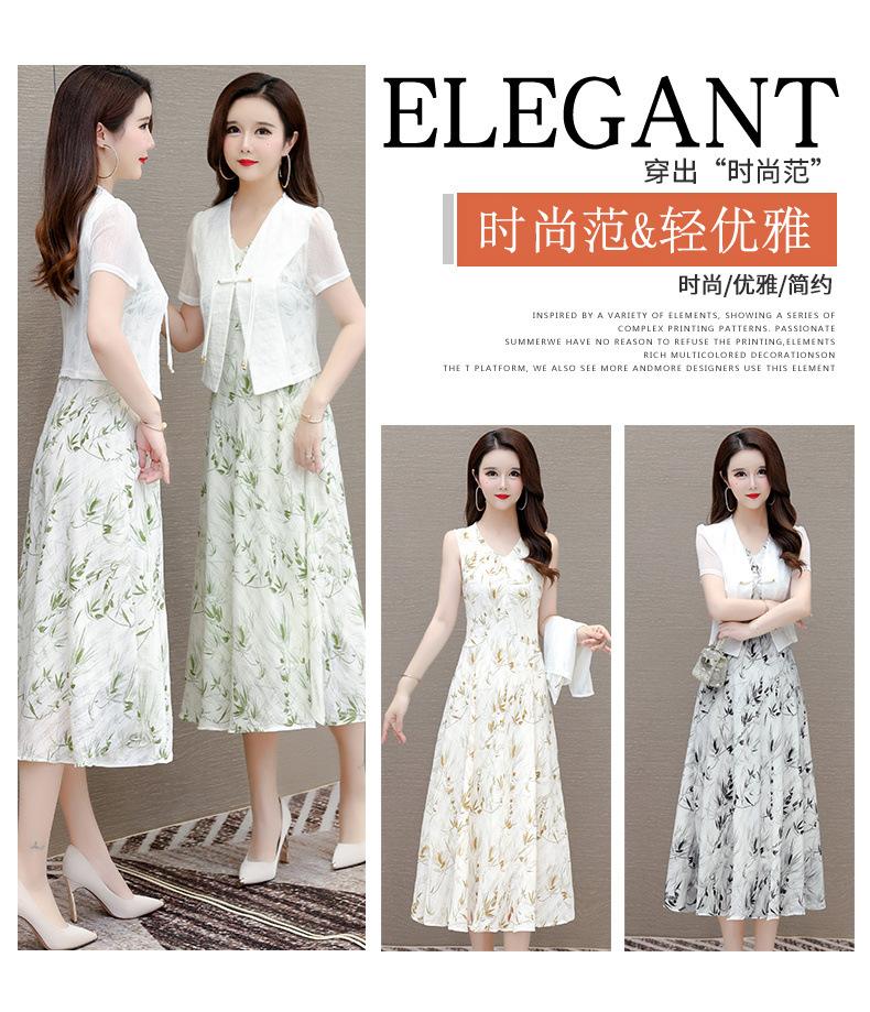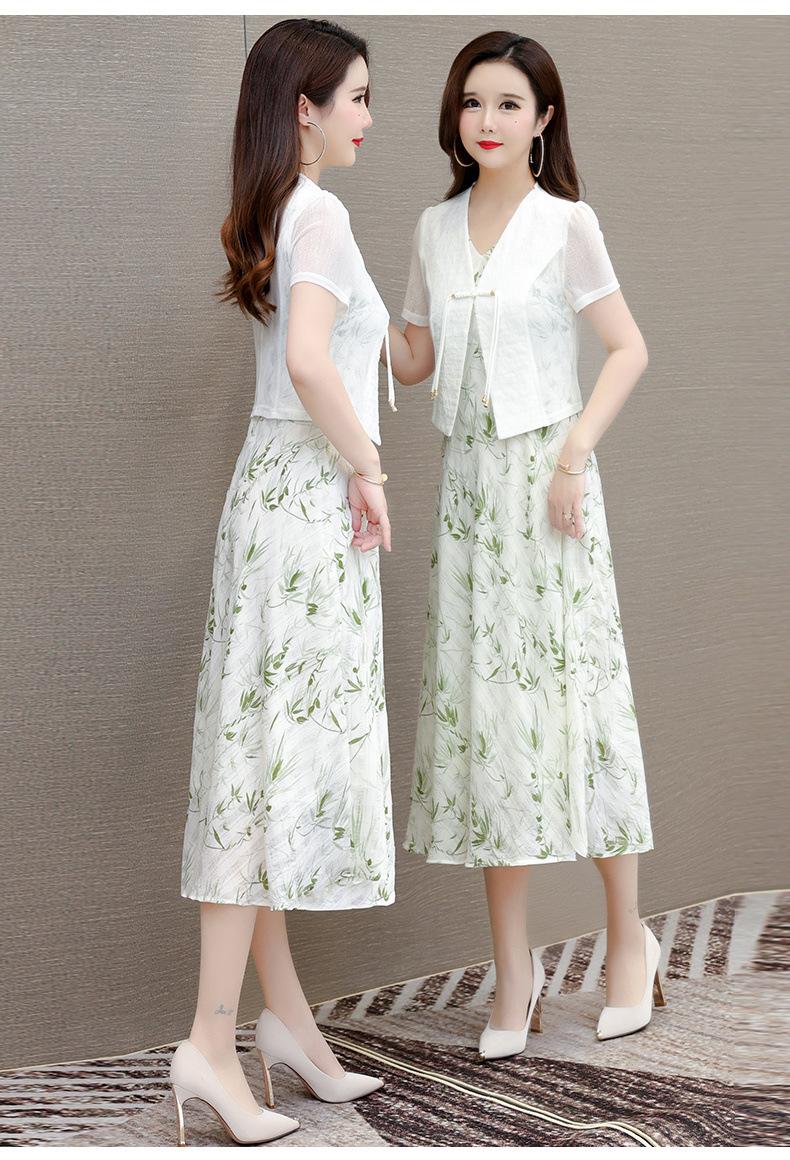 Moda 2025 Estampado Nuevo Verano Estilo Chino Adelgazante Vestido de Madre Traje Chino de Dos Piezas