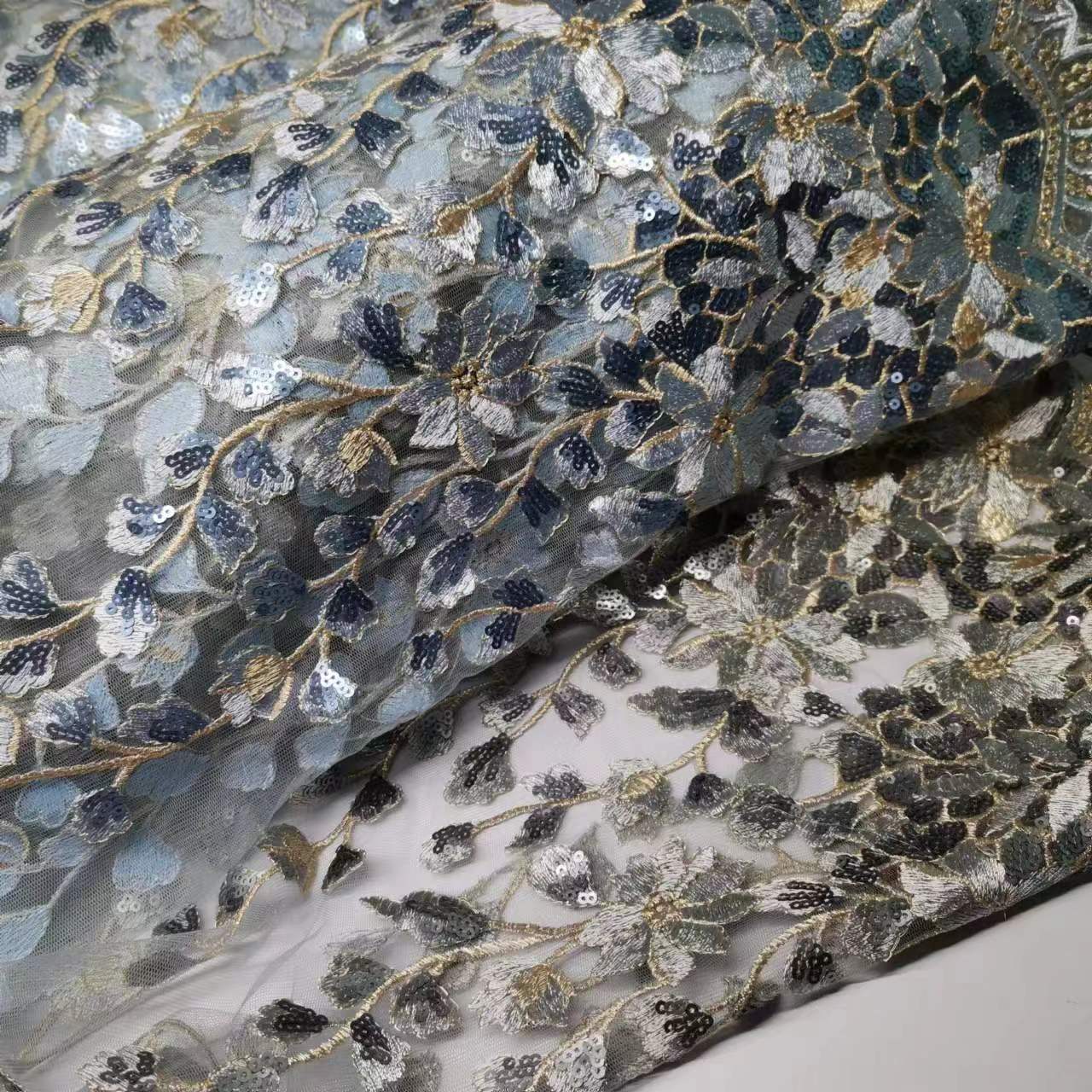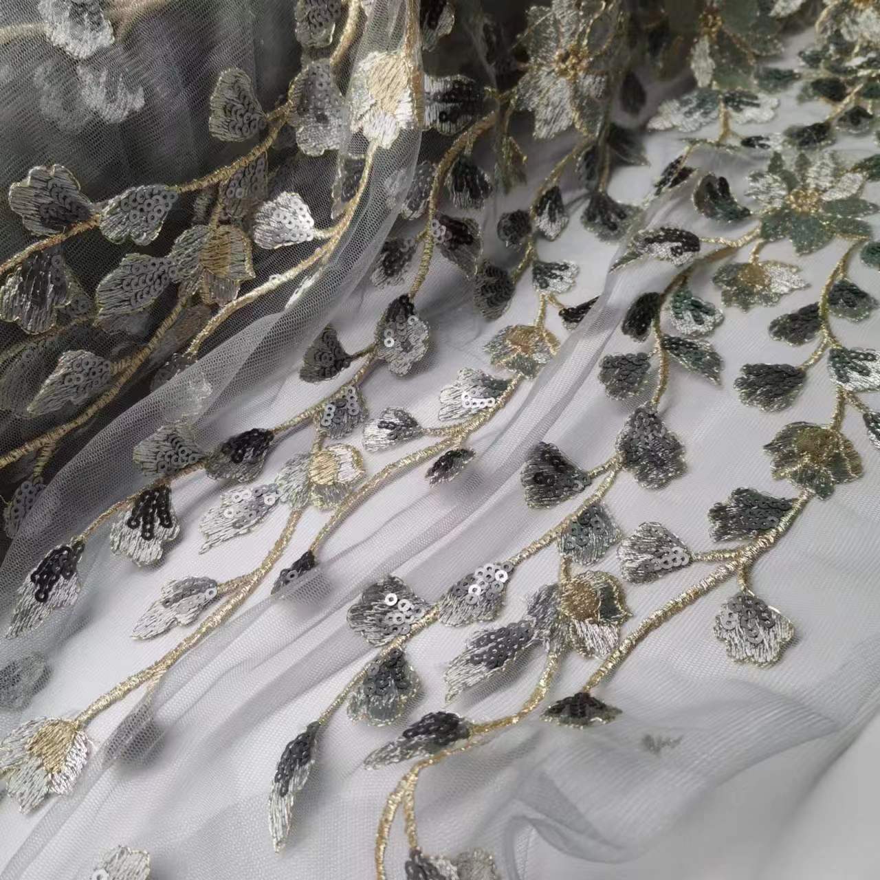 Tela de Encaje con Bordado de Lentejuelas de Malla para Decoración de Vestido de Novia y Vestido de Noche