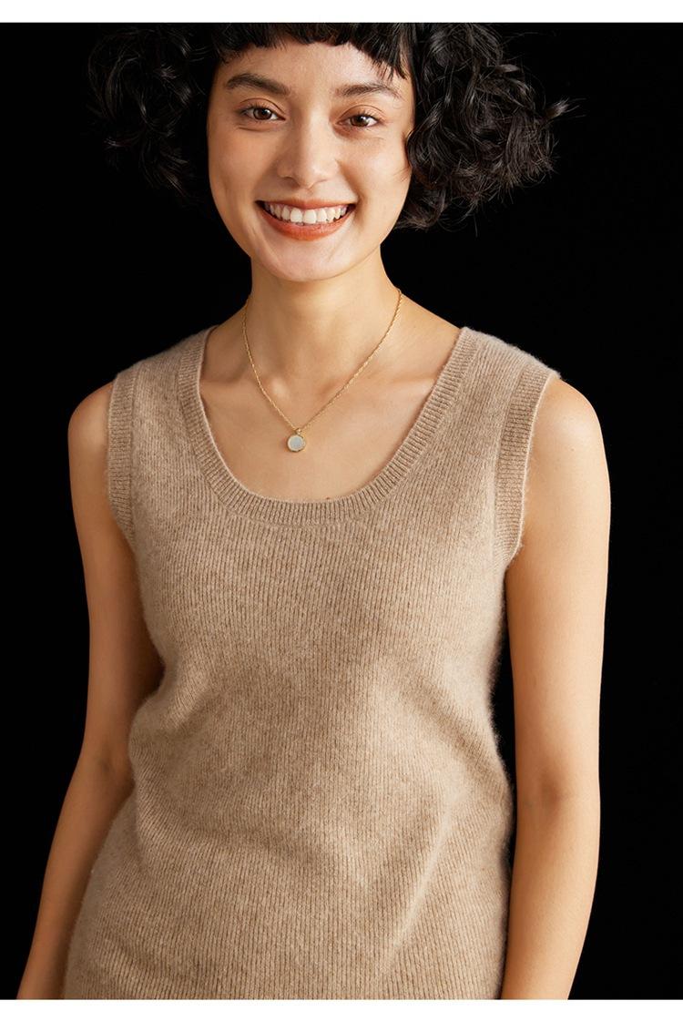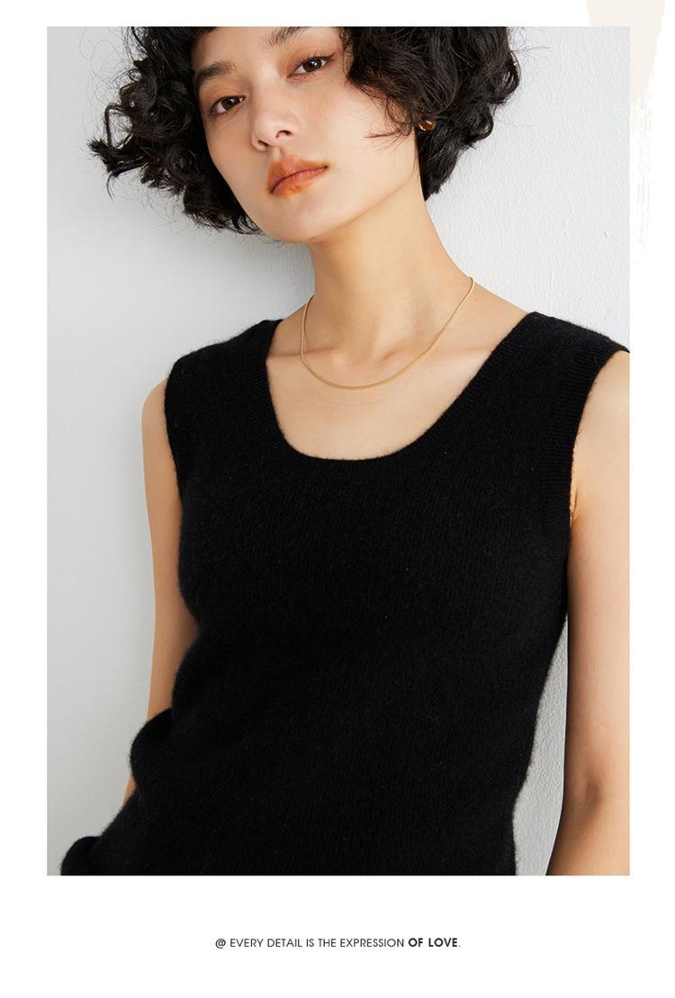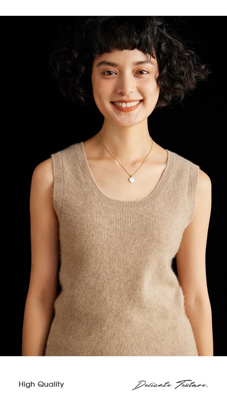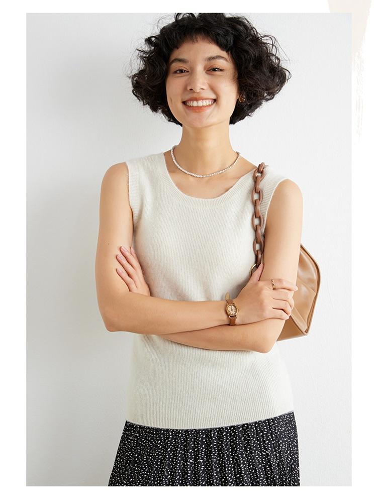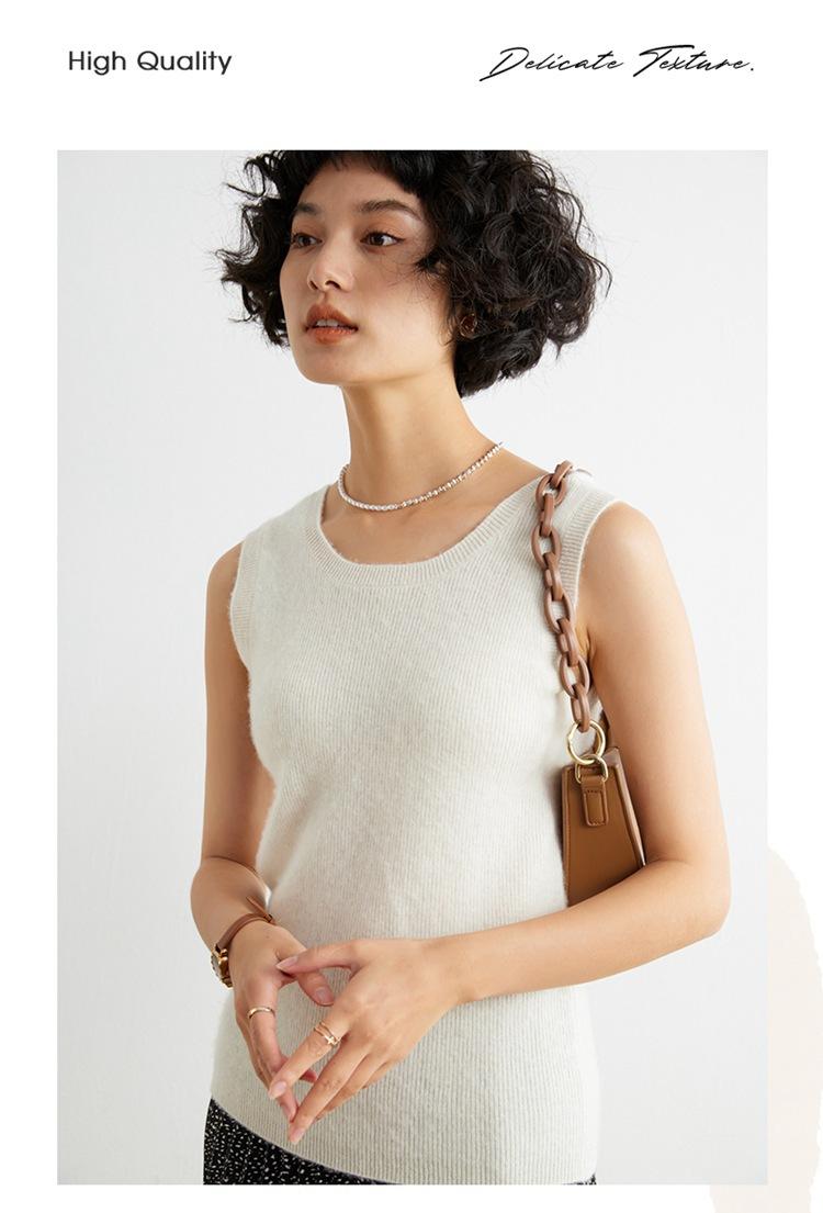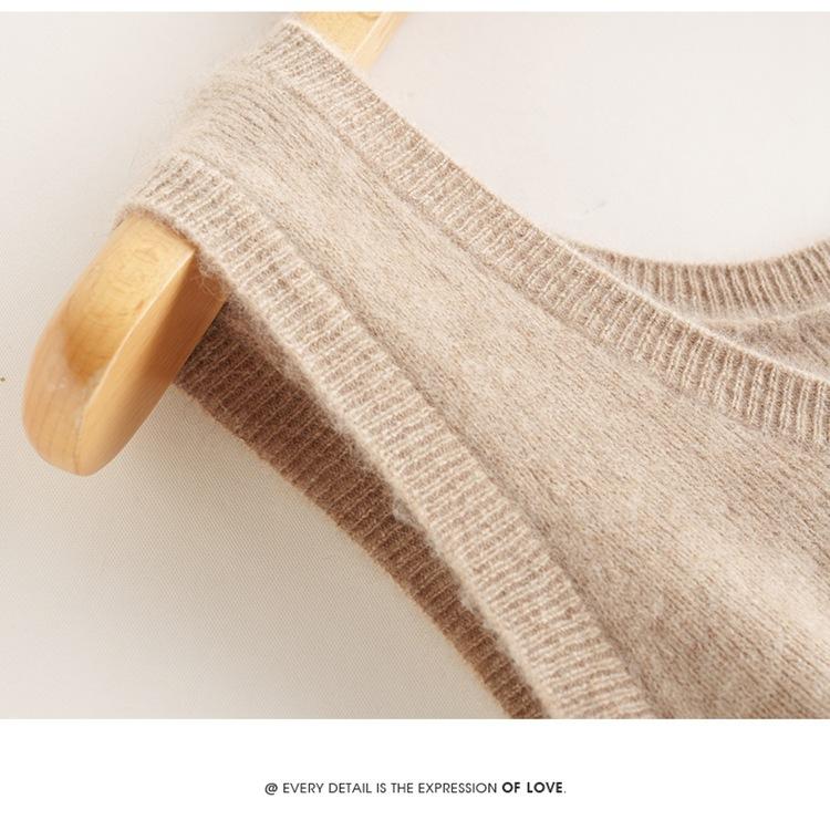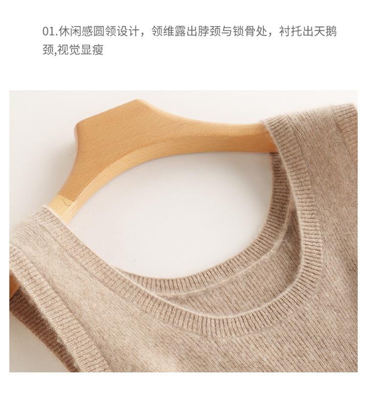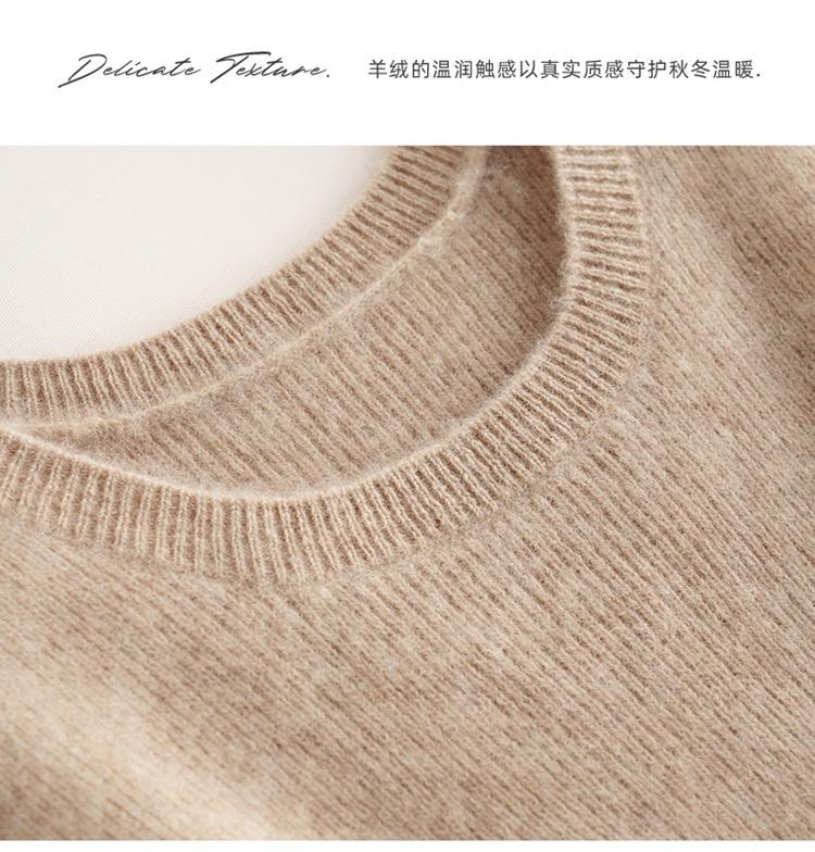 Otoño 2023 Nuevo Suéter de Cuello Redondo Tejido Fino Cachemira Camisola para Mujer Color Sólido Lana Base Chaleco con Patrón Tridimensional