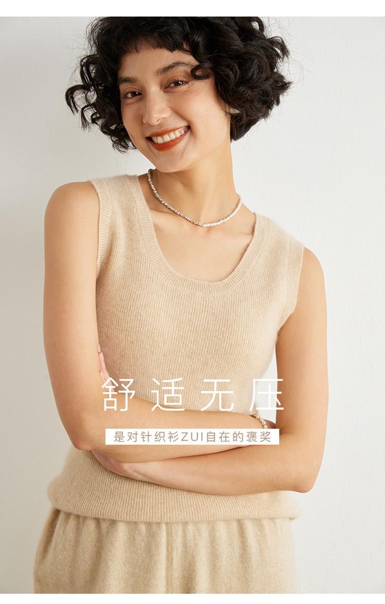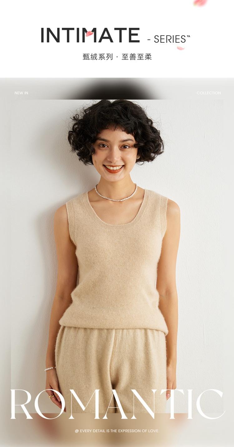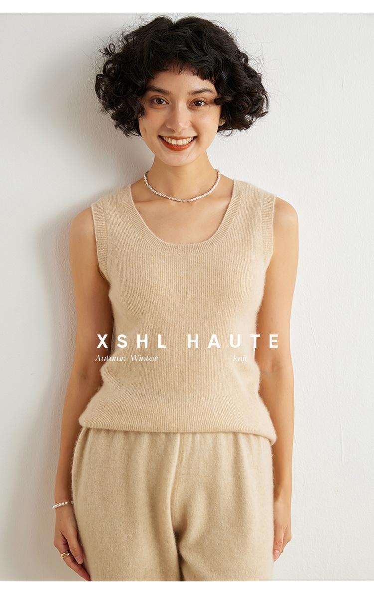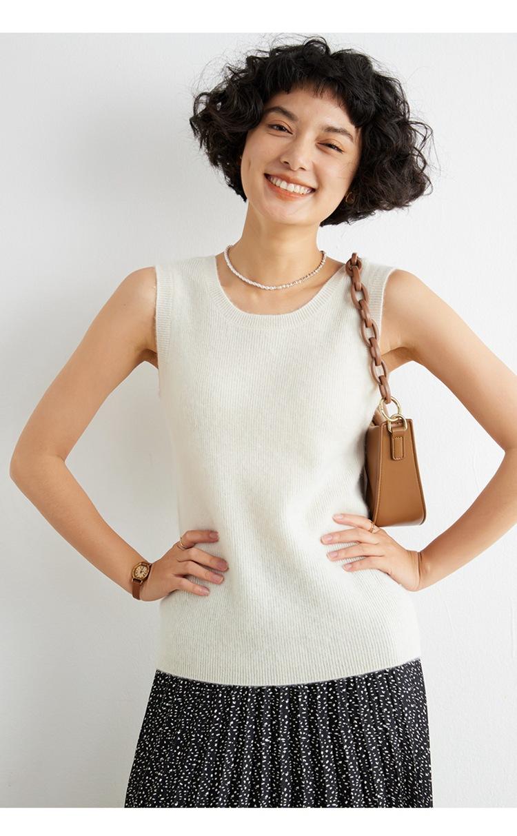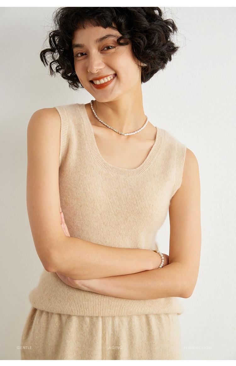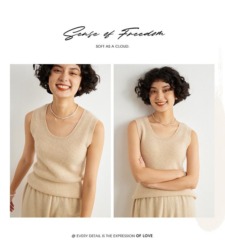 Otoño 2023 Nuevo Suéter de Cuello Redondo Tejido Fino Cachemira Camisola para Mujer Color Sólido Lana Base Chaleco con Patrón Tridimensional