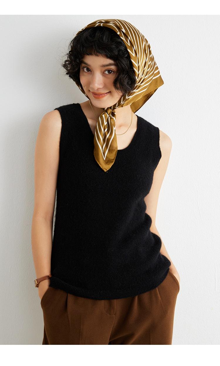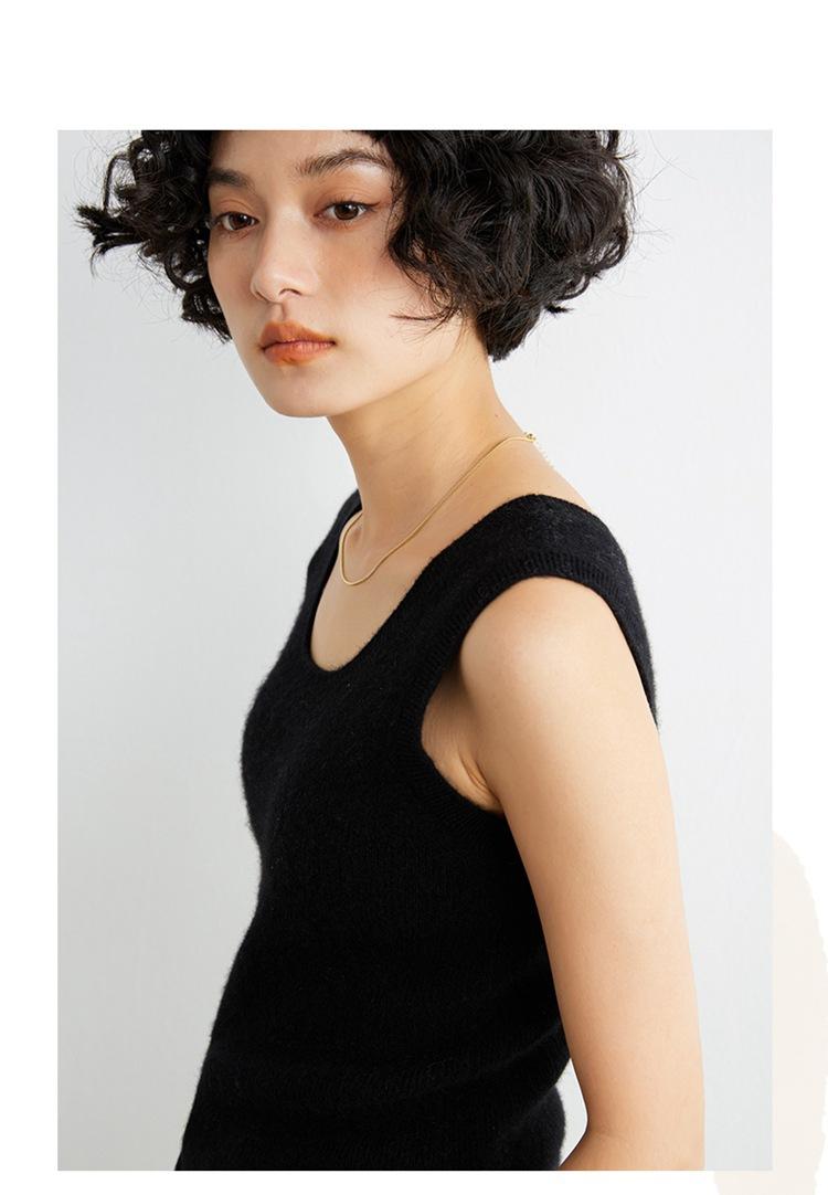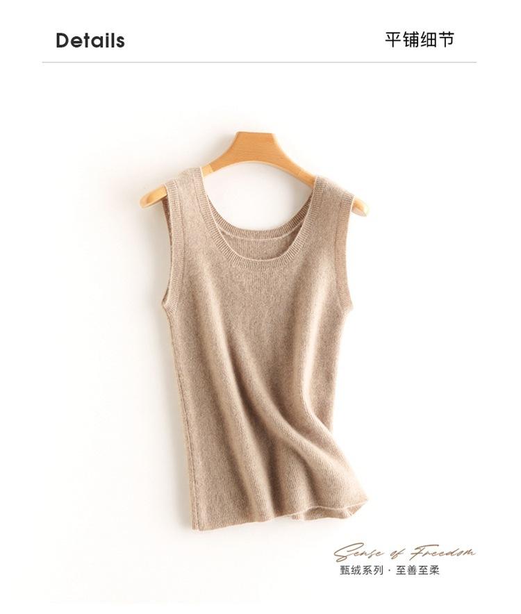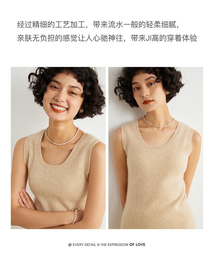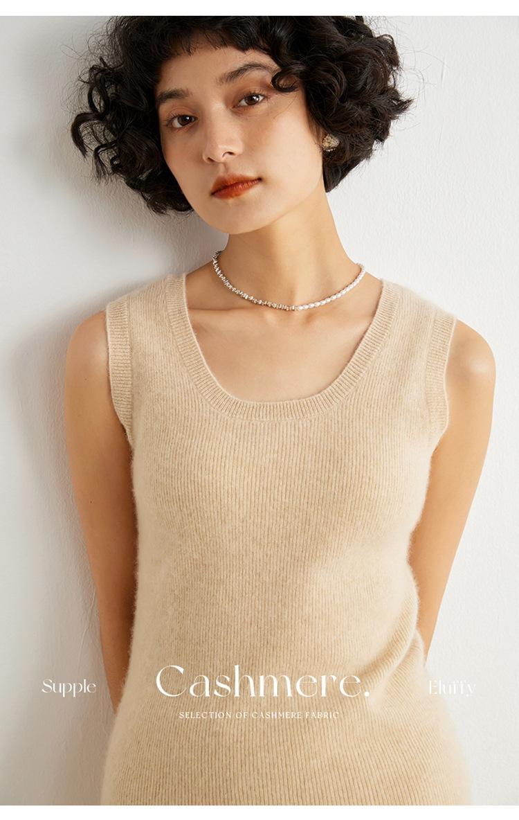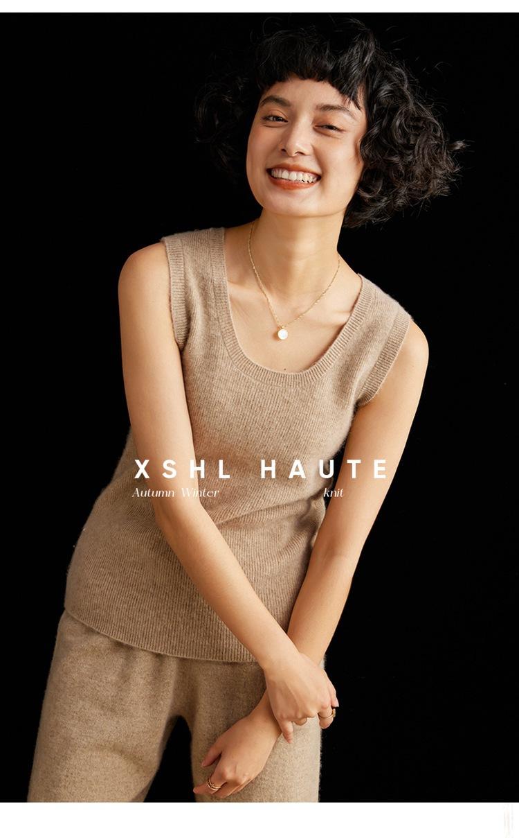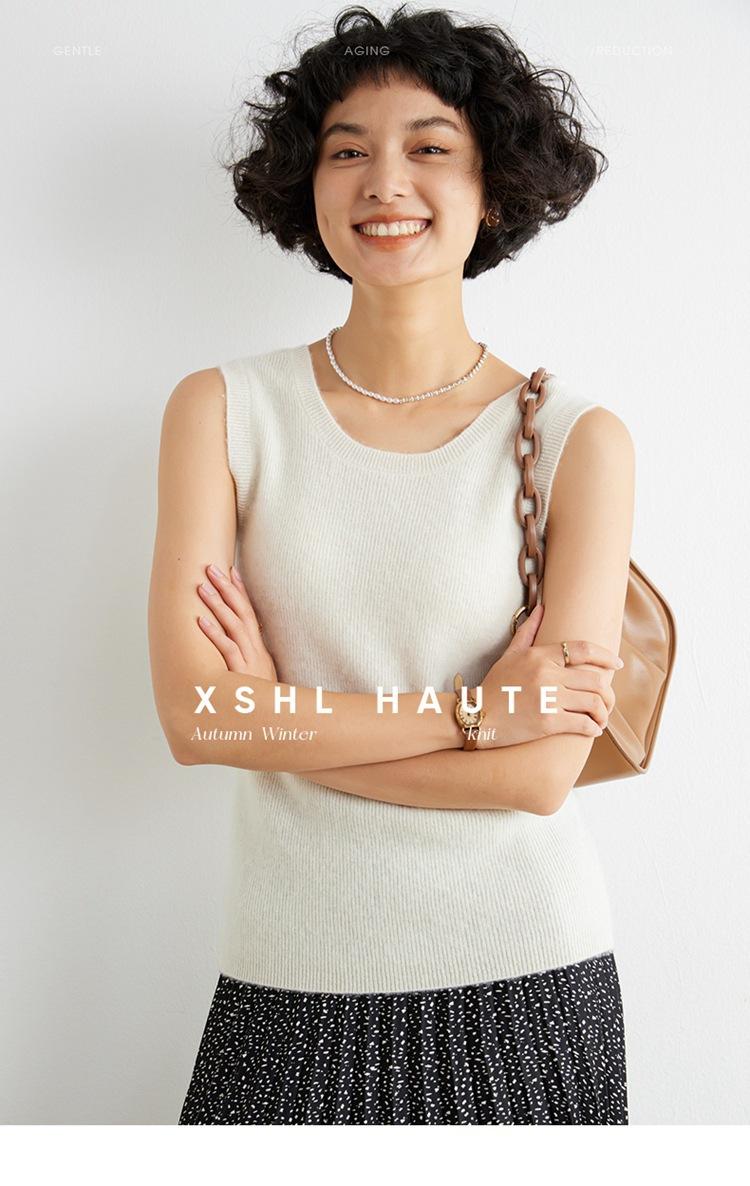 Otoño 2023 Nuevo Suéter de Cuello Redondo Tejido Fino Cachemira Camisola para Mujer Color Sólido Lana Base Chaleco con Patrón Tridimensional