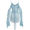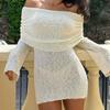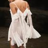 Estilo Vacacional Transfronterizo Europeo y Americano Amazon Chica Caliente Delgado Hombro Descubierto Tirantes Malla Transparente Vestido de Manga Larga con Lazos