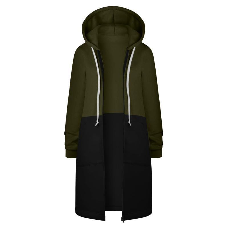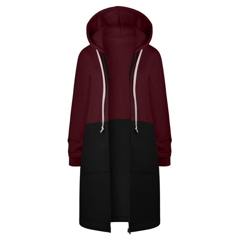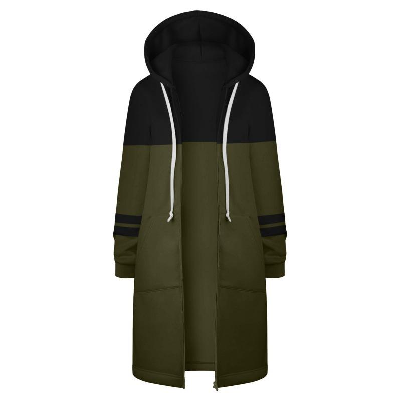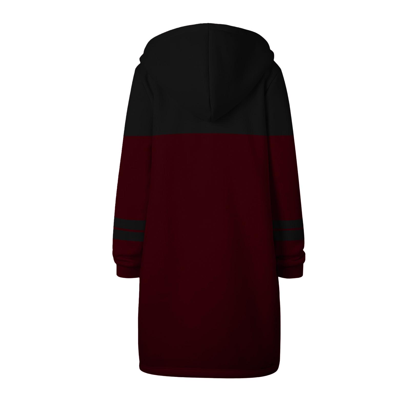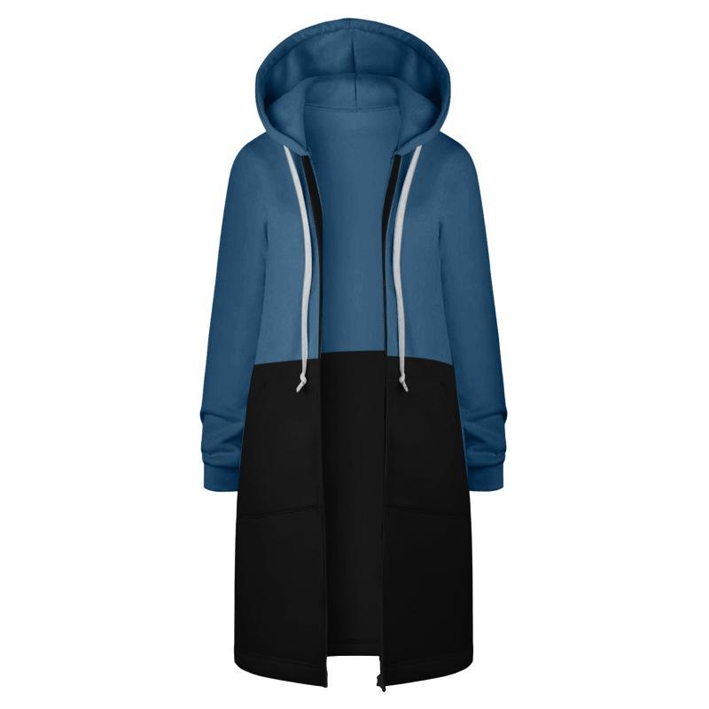 Sudadera Recta de Invierno para Mujer Americana y Europea Transfronteriza con Capucha de Manga Larga y Combinación de Colores con Cierre Largo en la Cadera
