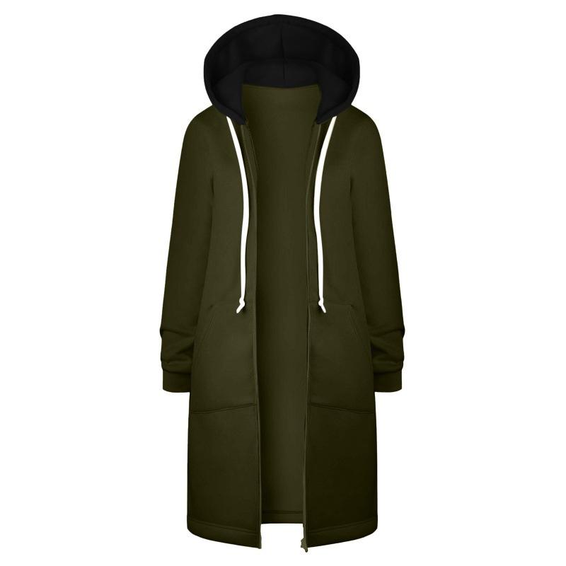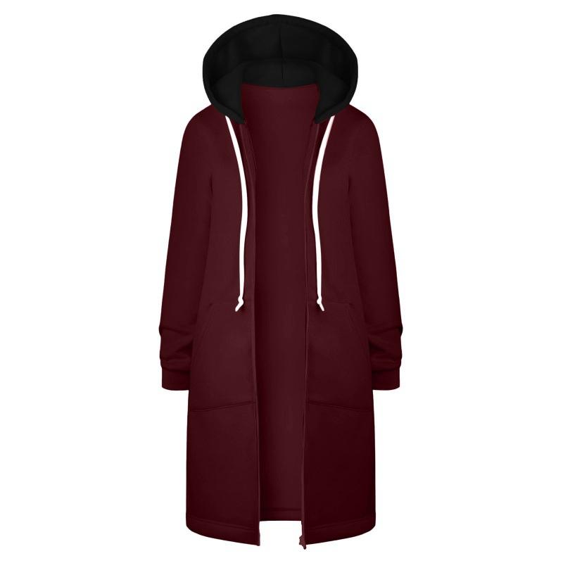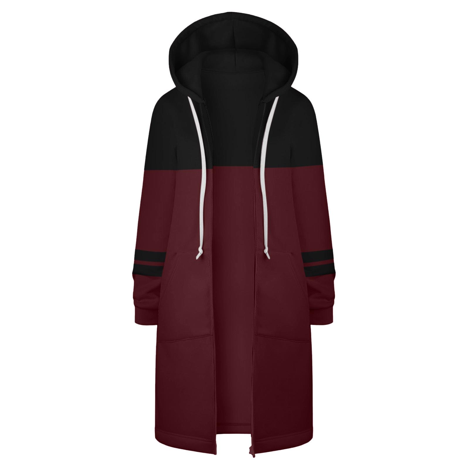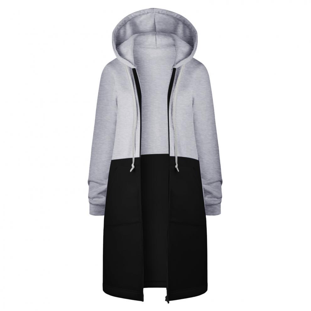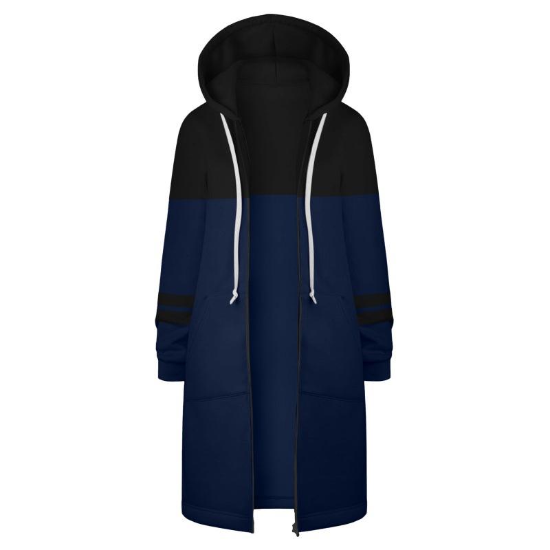 Sudadera Recta de Invierno para Mujer Americana y Europea Transfronteriza con Capucha de Manga Larga y Combinación de Colores con Cierre Largo en la Cadera