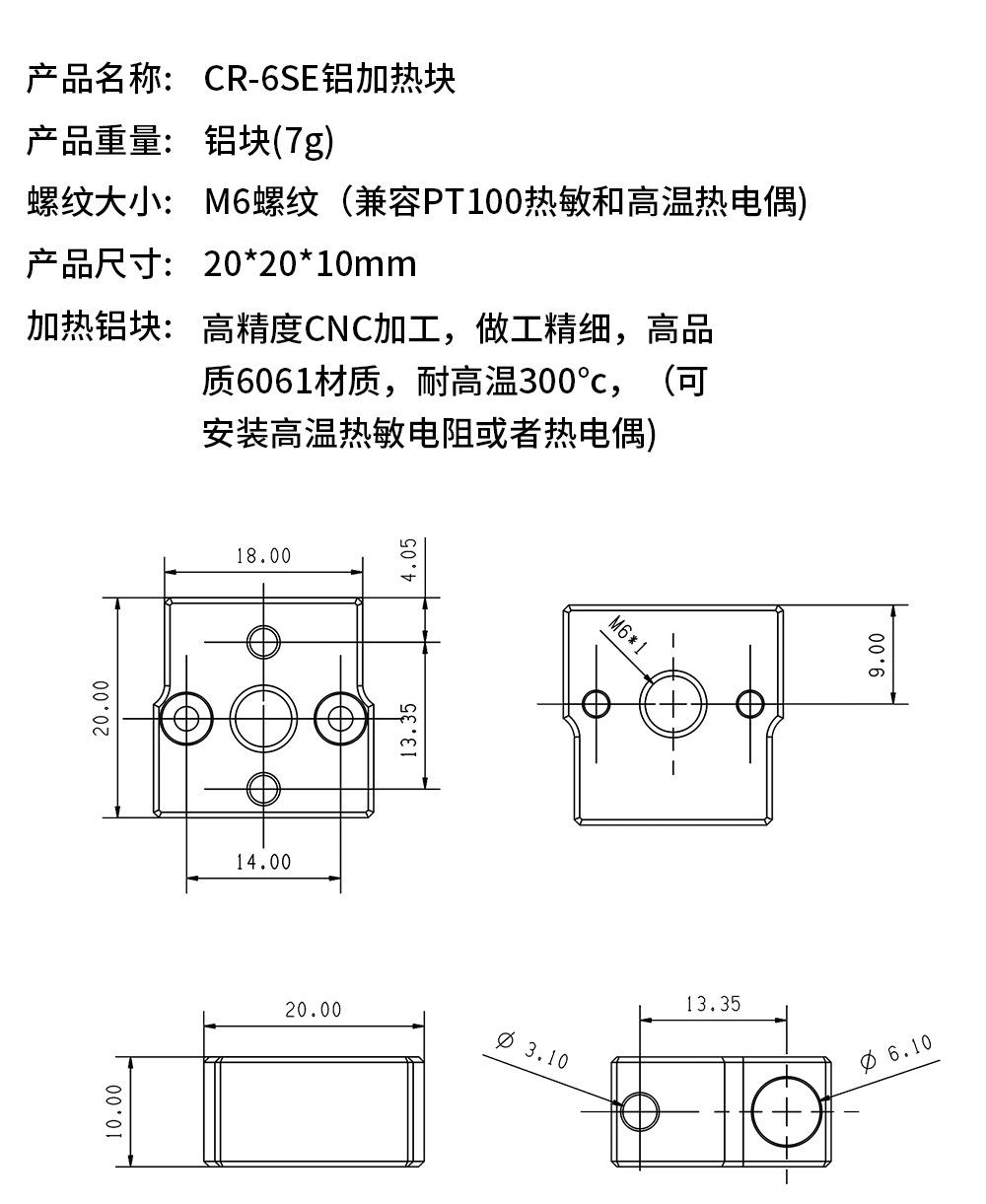 CR6SE aluminum heating block, CR6SE copper plated heating block