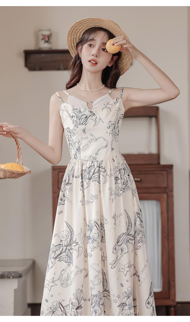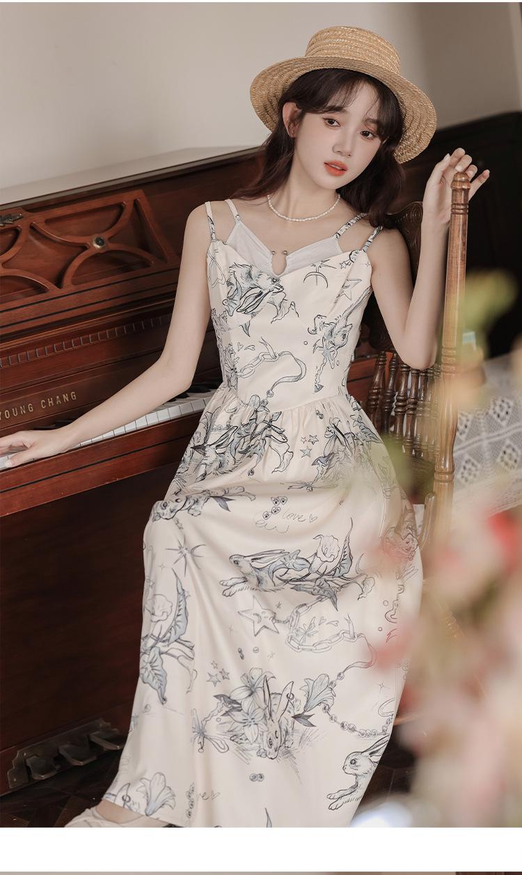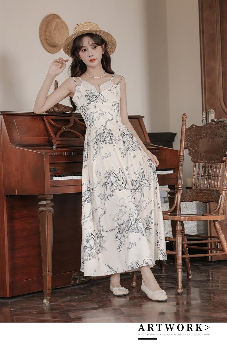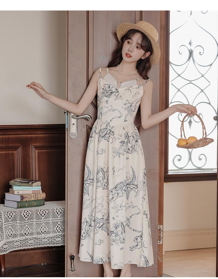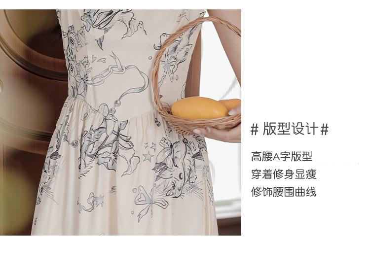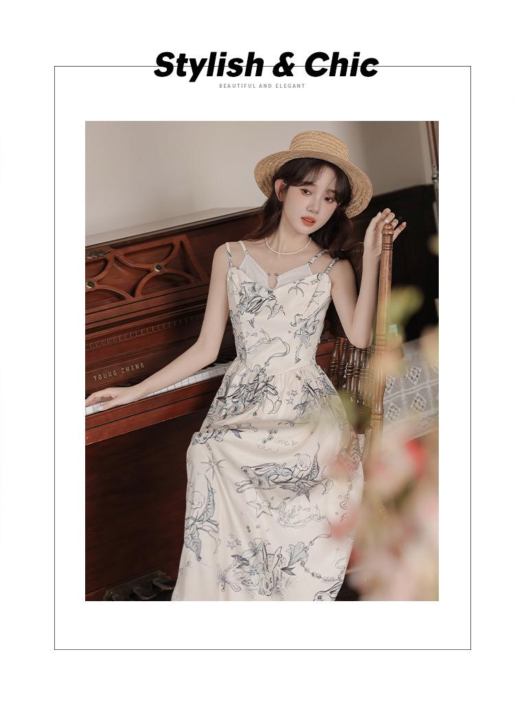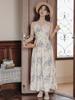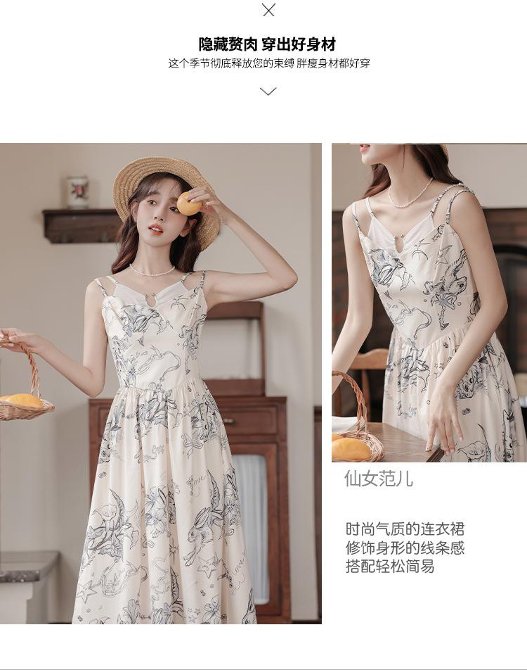 No menos de 138 Vestido de tirantes con temperamento de industria pesada con estampado empalmado que ciñe la cintura