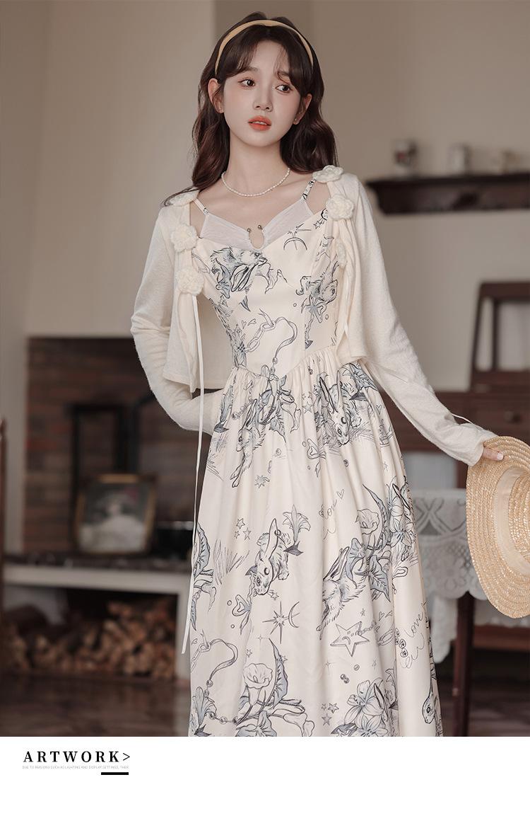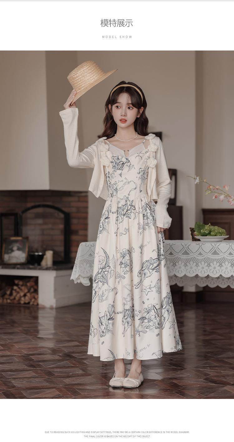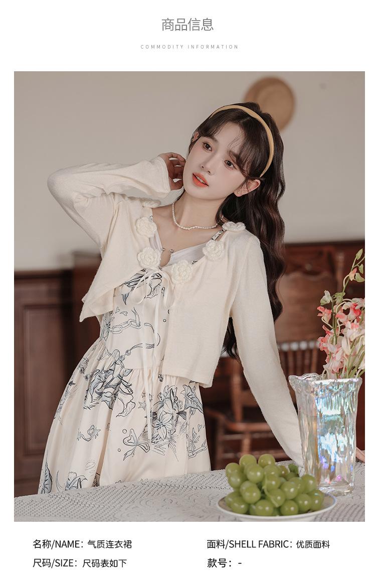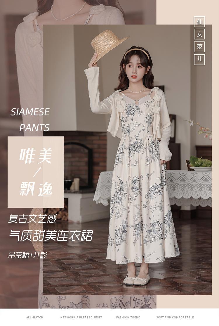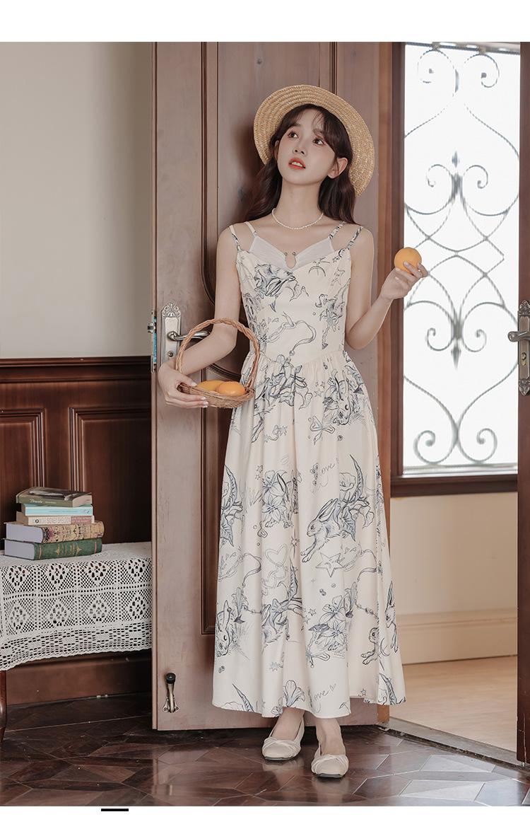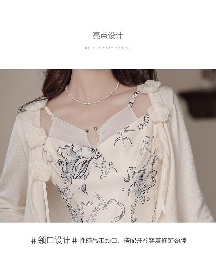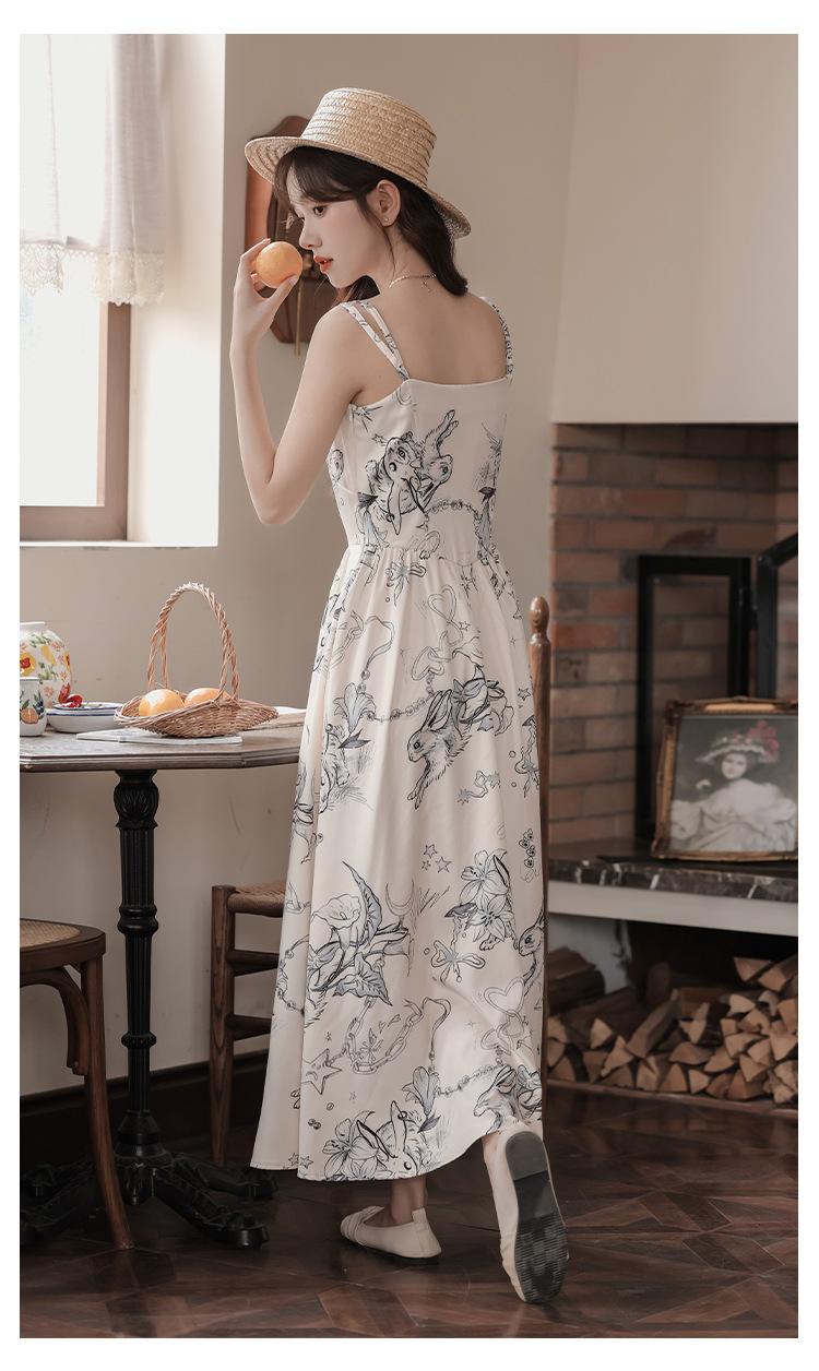 No menos de 138 Vestido de tirantes con temperamento de industria pesada con estampado empalmado que ciñe la cintura