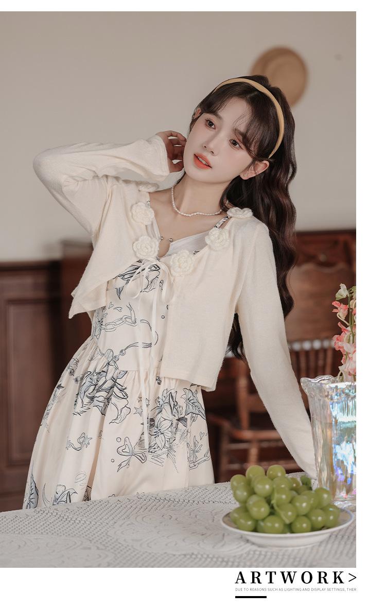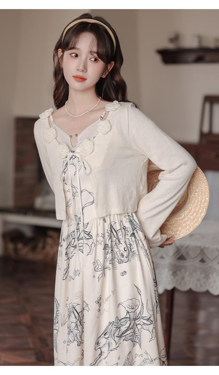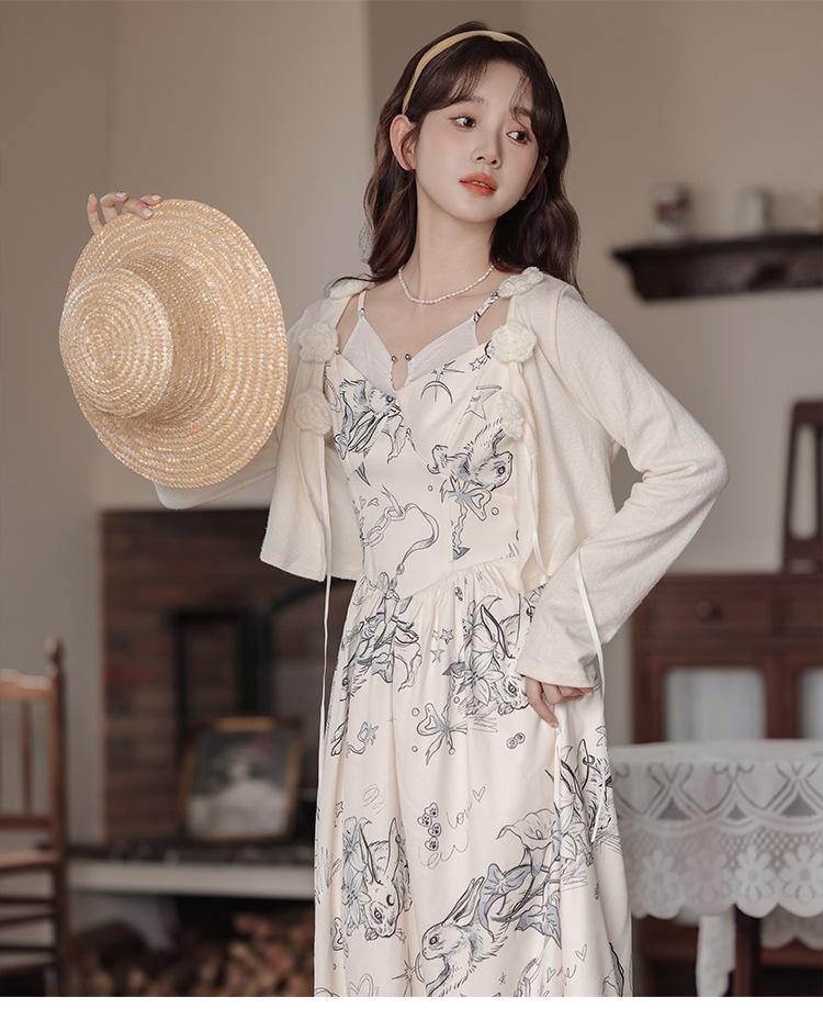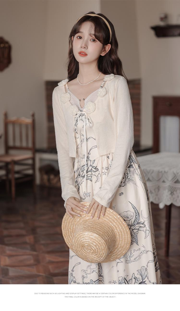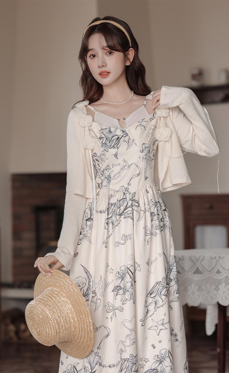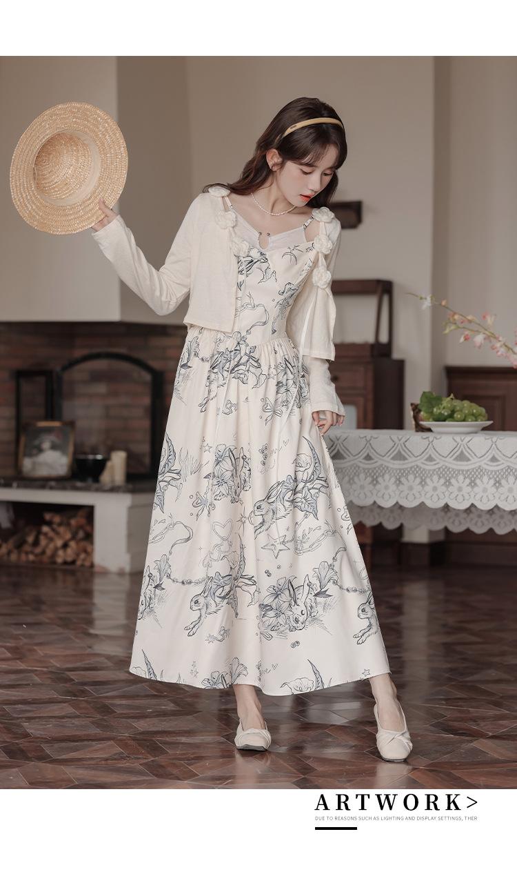 No menos de 138 Vestido de tirantes con temperamento de industria pesada con estampado empalmado que ciñe la cintura