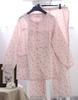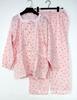 El top rosa y blanco con cuello de volantes y lazo tiene solo un bolsillo, otros colores tienen dos bolsillos, y los pantalones no tienen bolsillos.