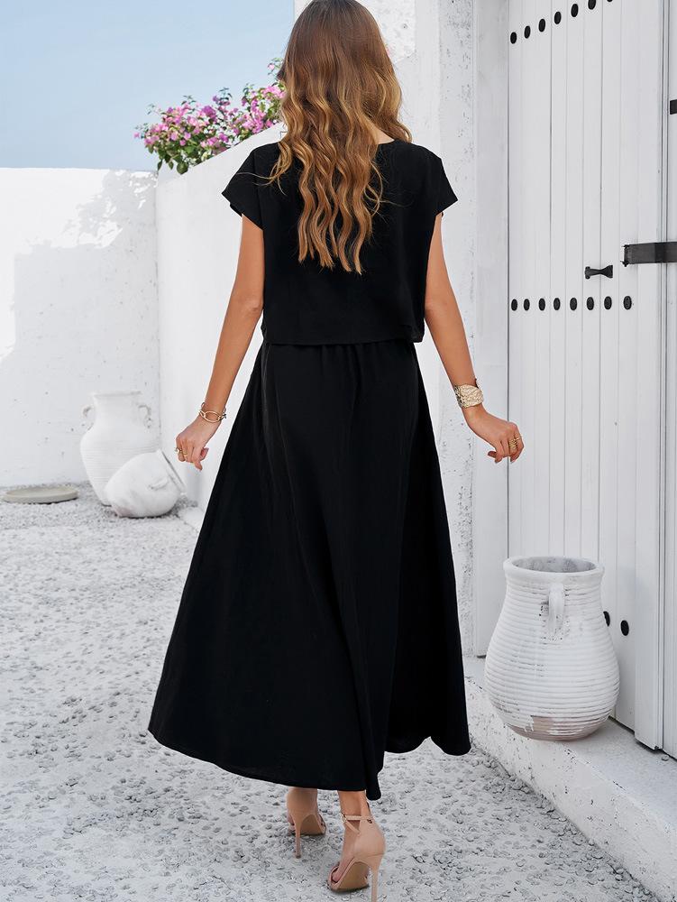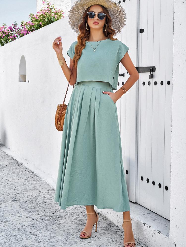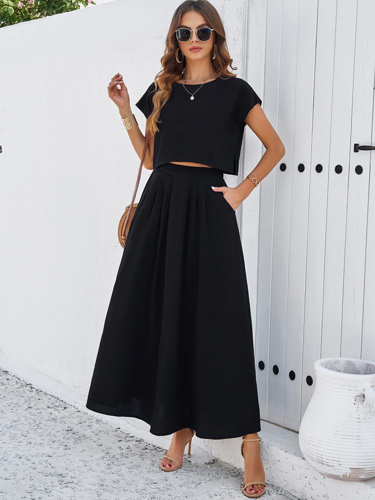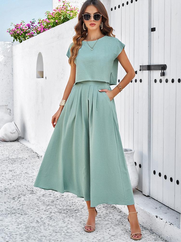 Ropa de Mujer Transfronteriza Amazon Europeo y Americano 2024 Primavera y Verano Temperamento Casual Color Sólido Top Chaleco sin Mangas Traje de Falda