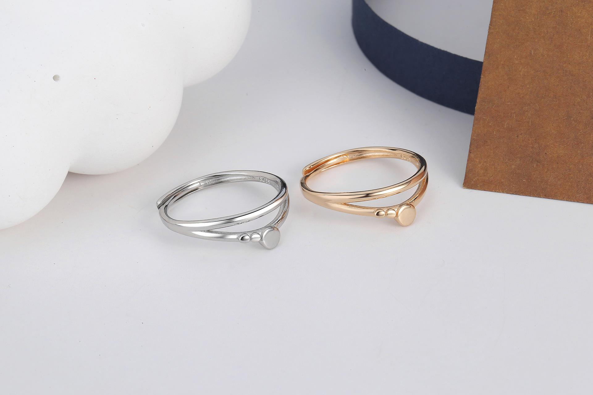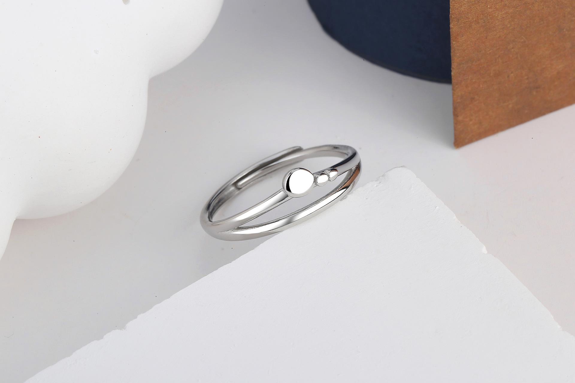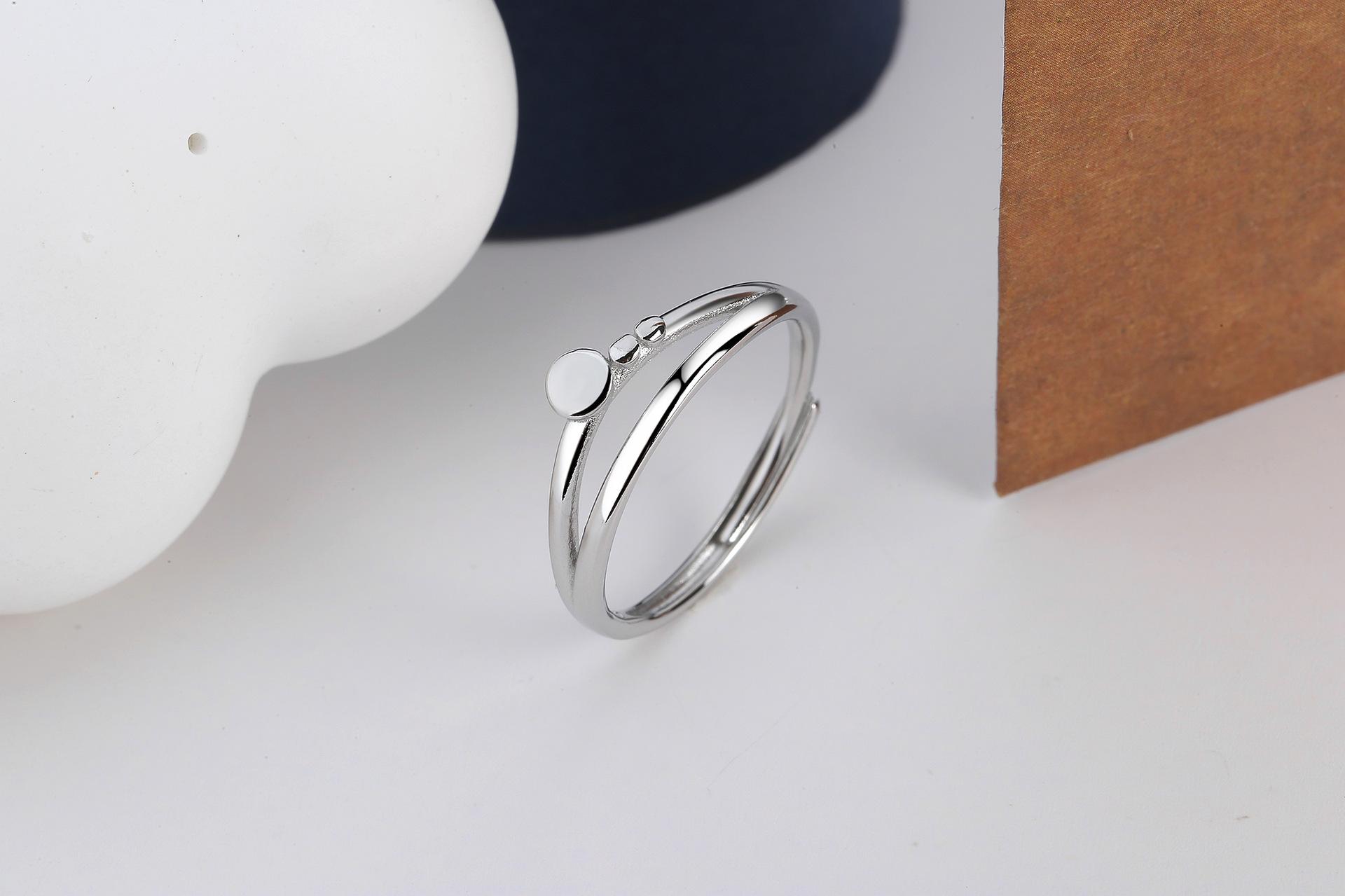 Anillo para Niñas Personalizado Estilo Frío Exagerado Geométrico Doble Línea Plateado Moda Coreana Nicho Elegante Anillo ins