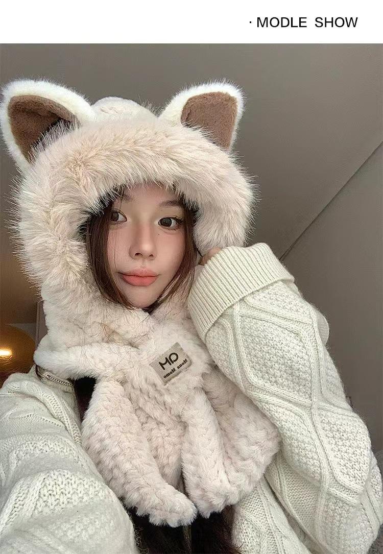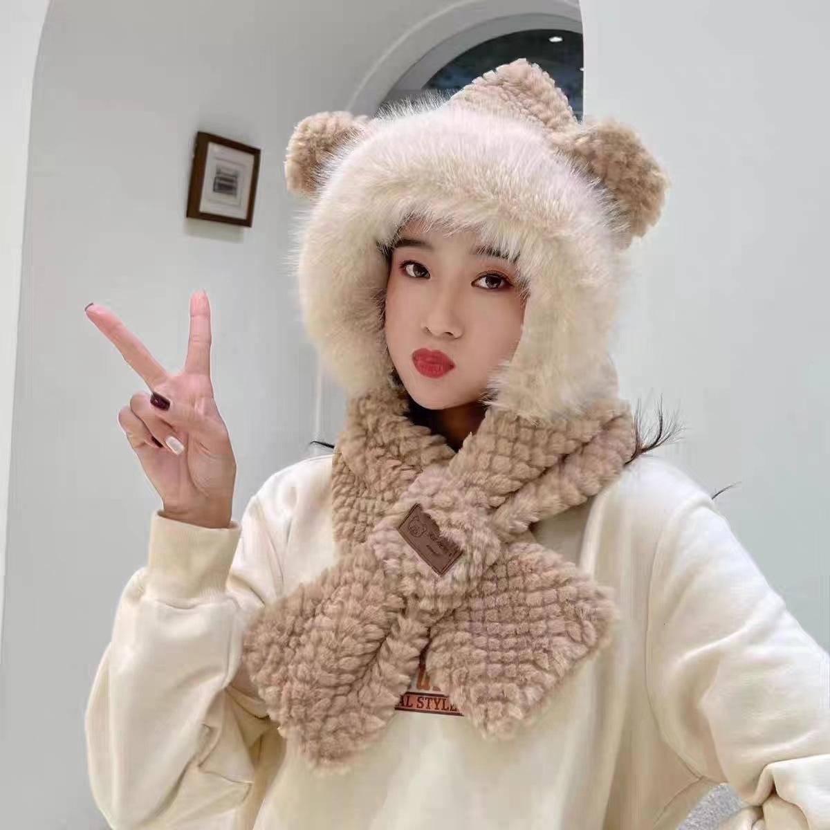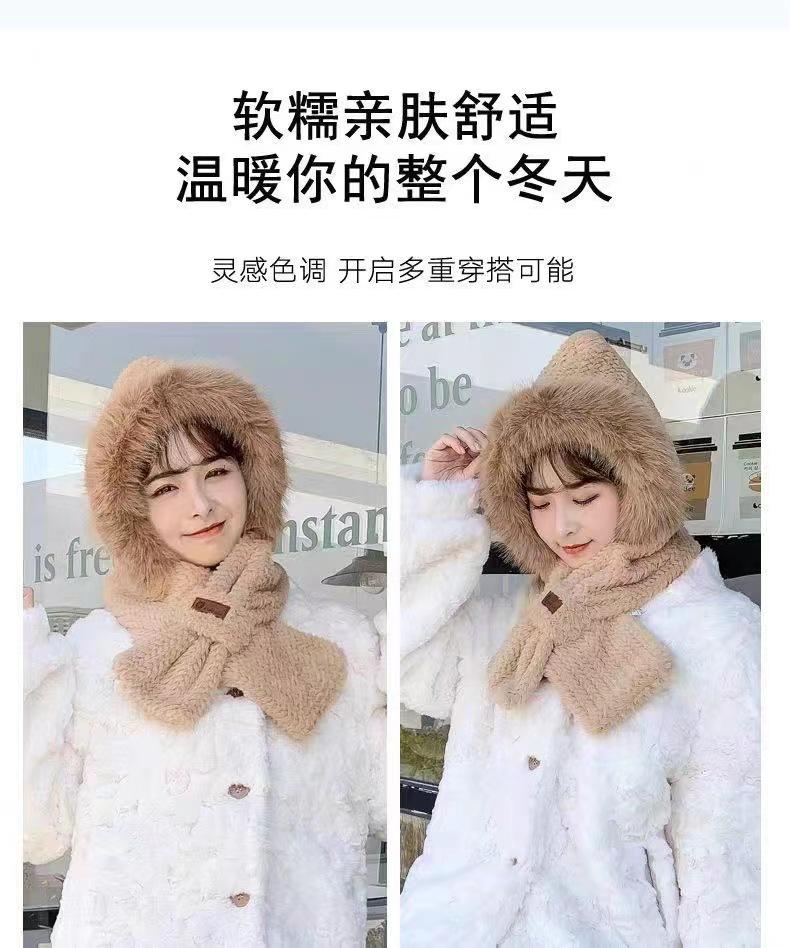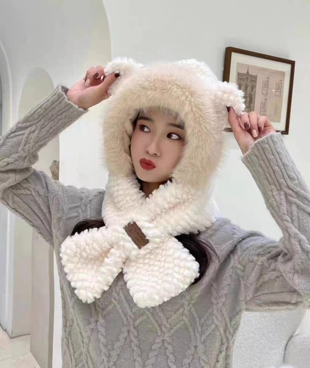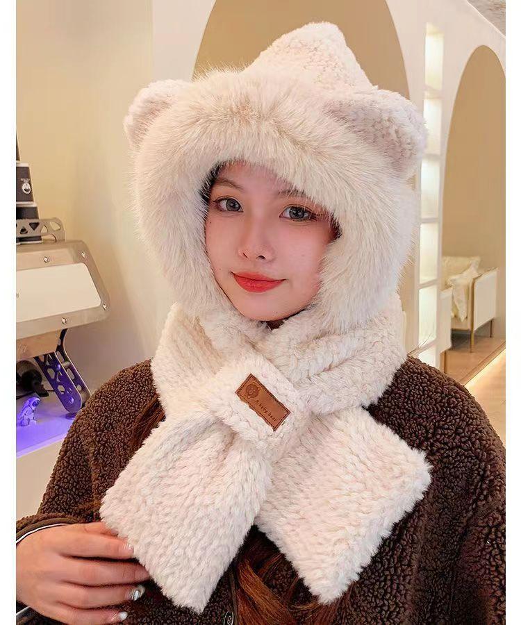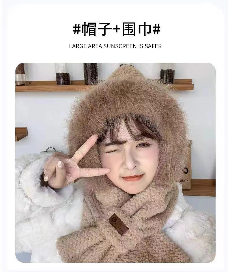 Sombrero y Bufanda Todo en Uno para Mujer Invierno Versátil Lindo Sombrero de Felpa Cálido Invierno Engrosado Antihielo y Cortavientos Bufanda con Capucha