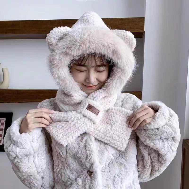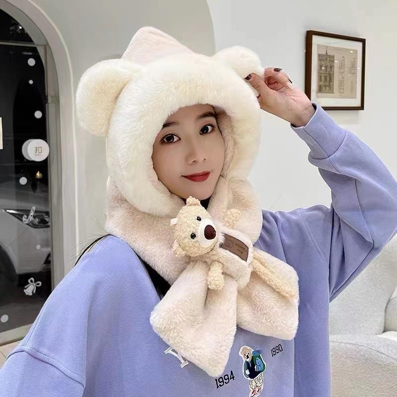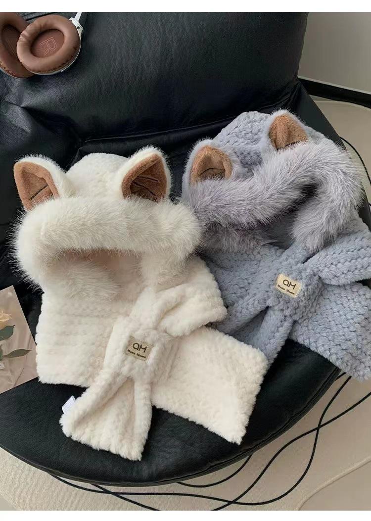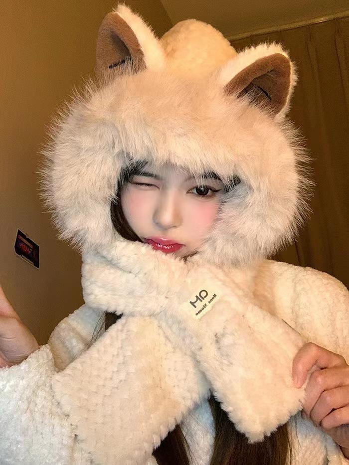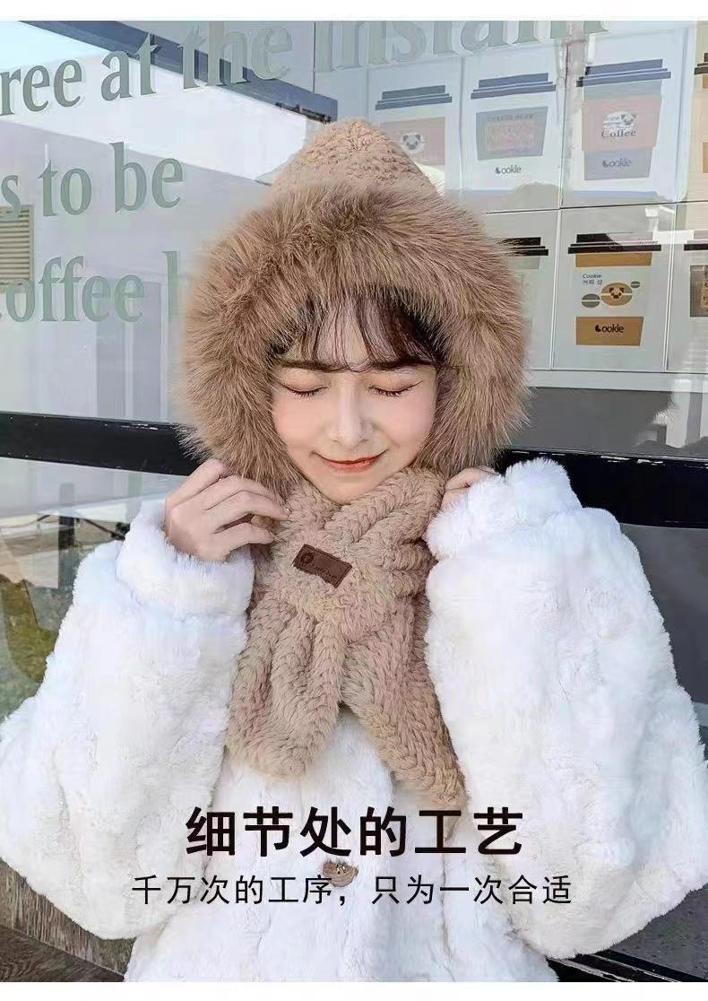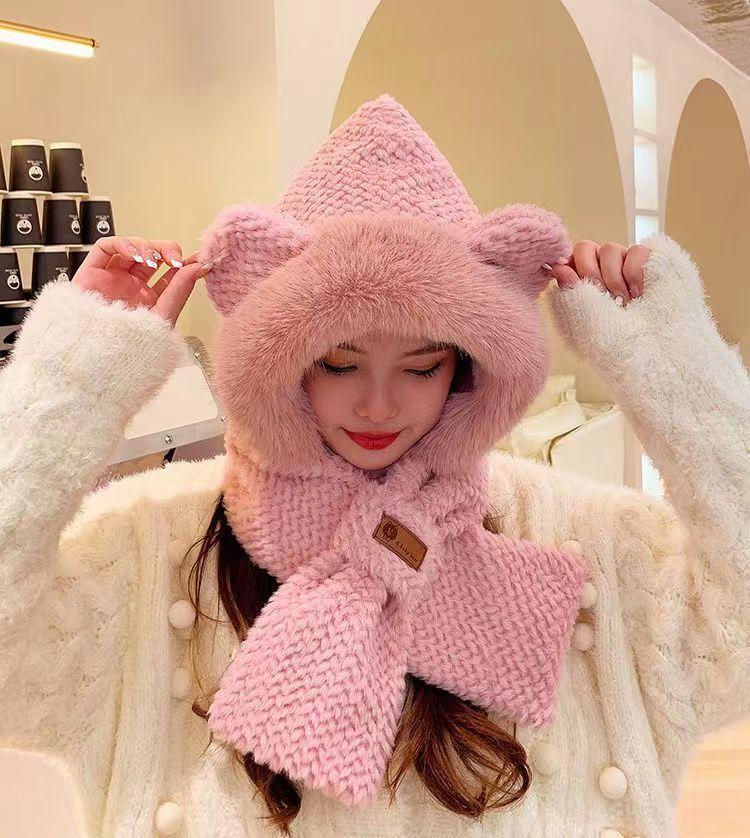 Sombrero y Bufanda Todo en Uno para Mujer Invierno Versátil Lindo Sombrero de Felpa Cálido Invierno Engrosado Antihielo y Cortavientos Bufanda con Capucha