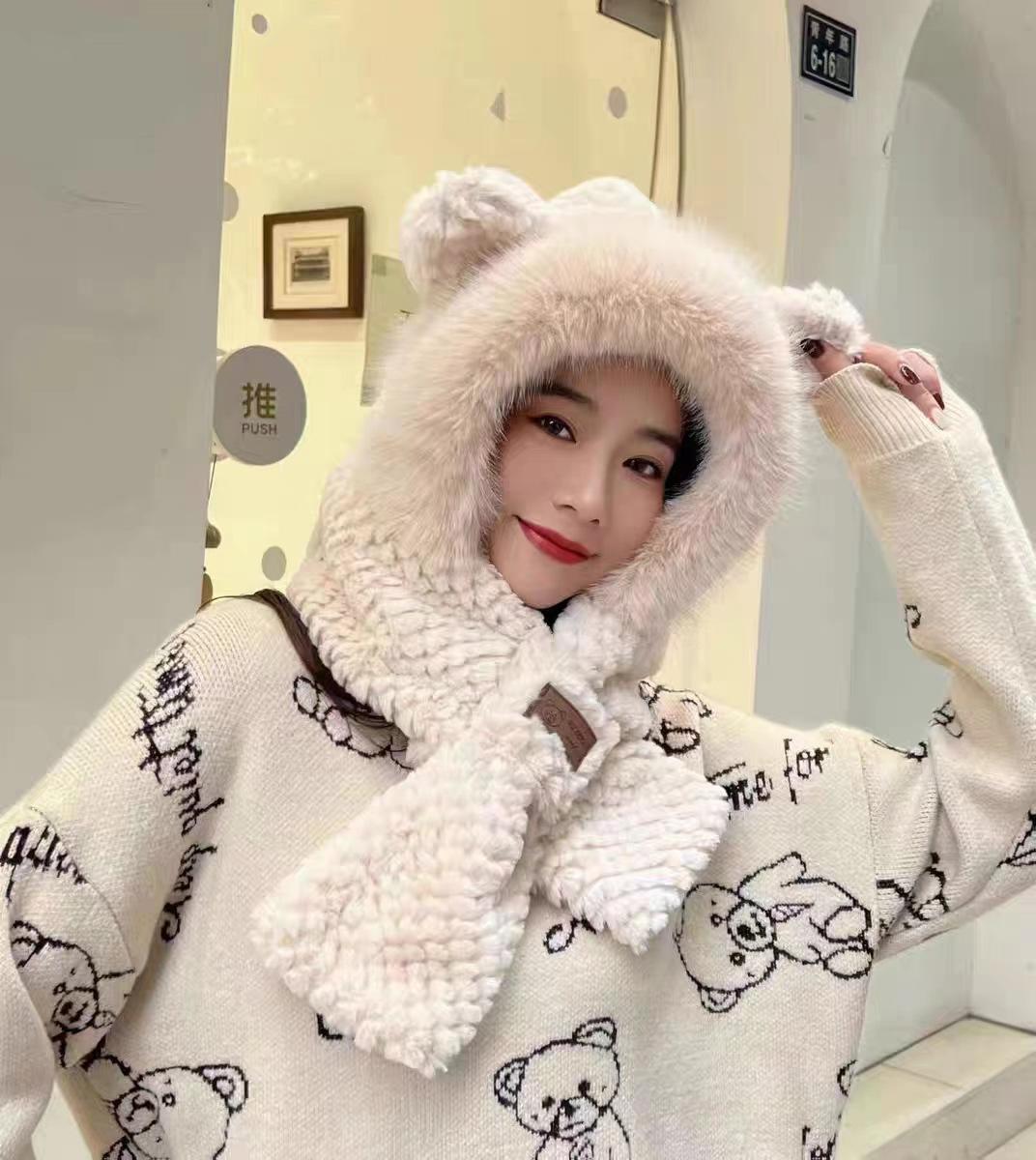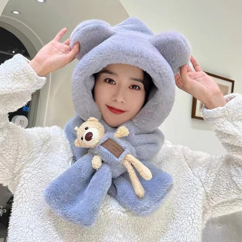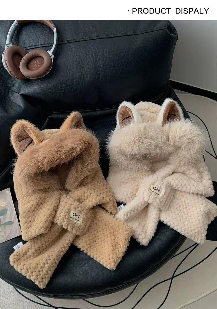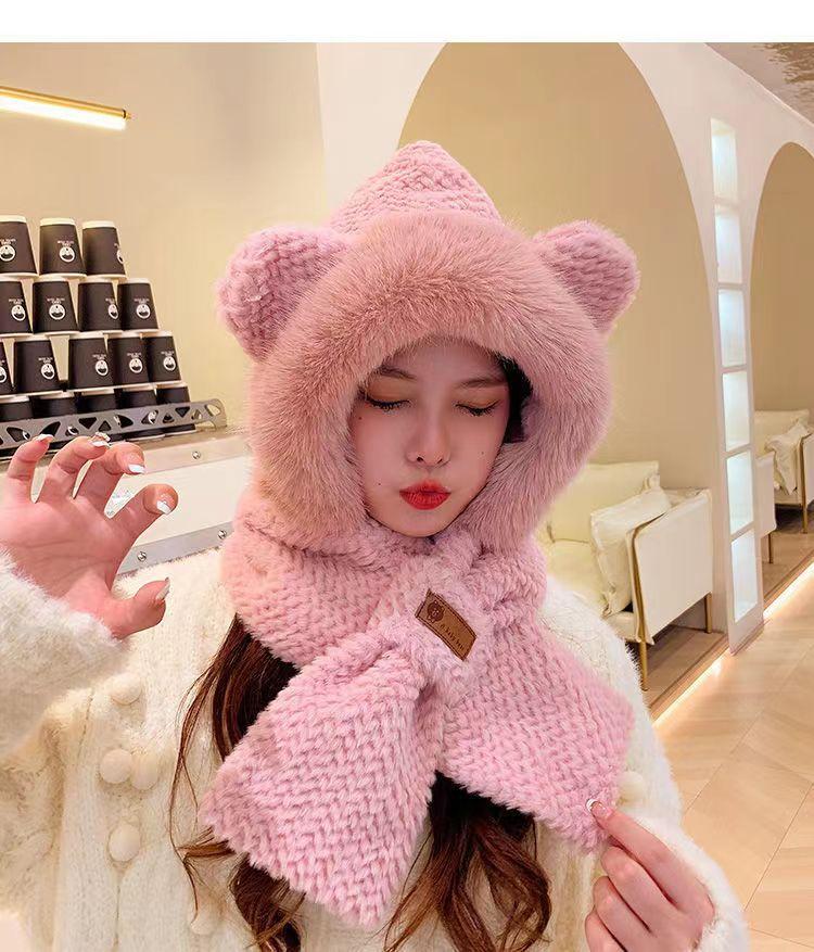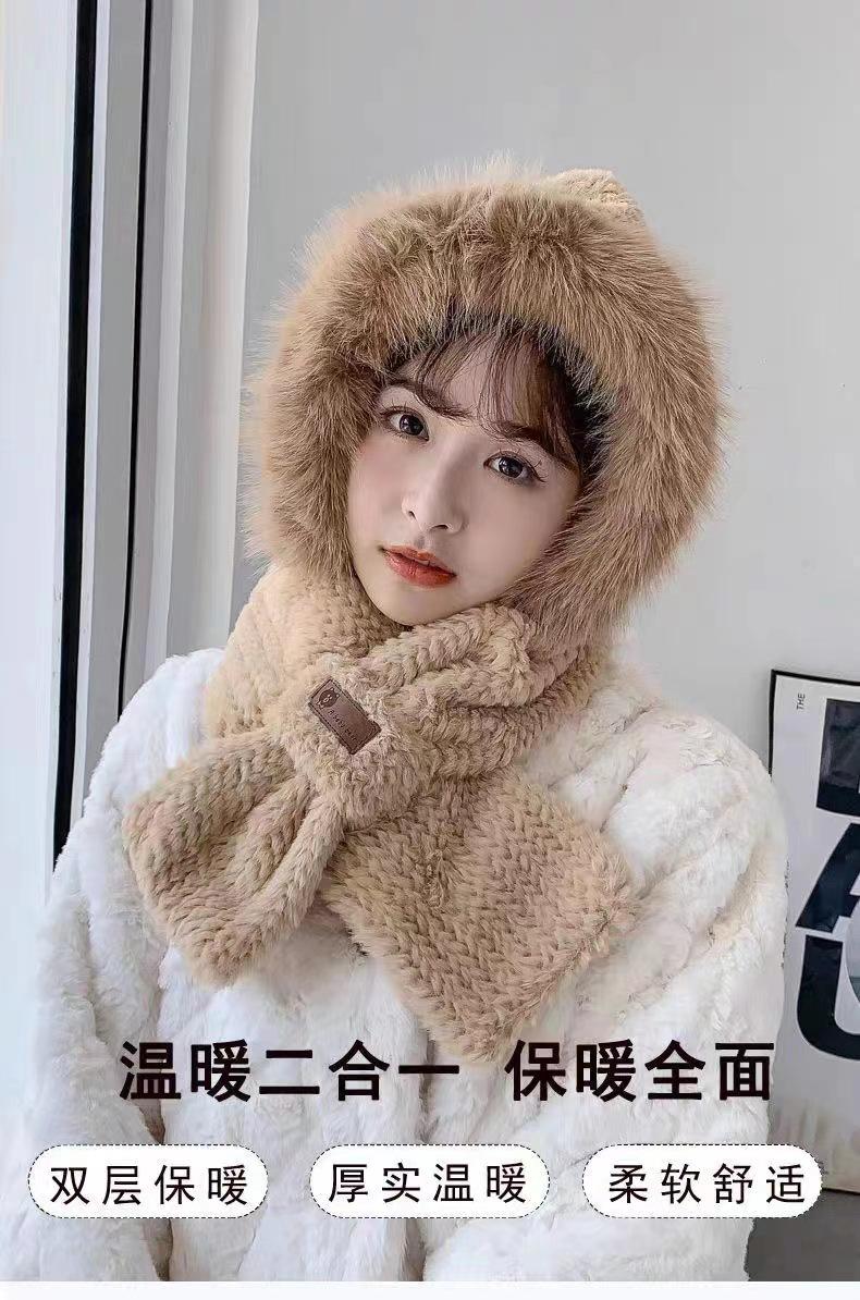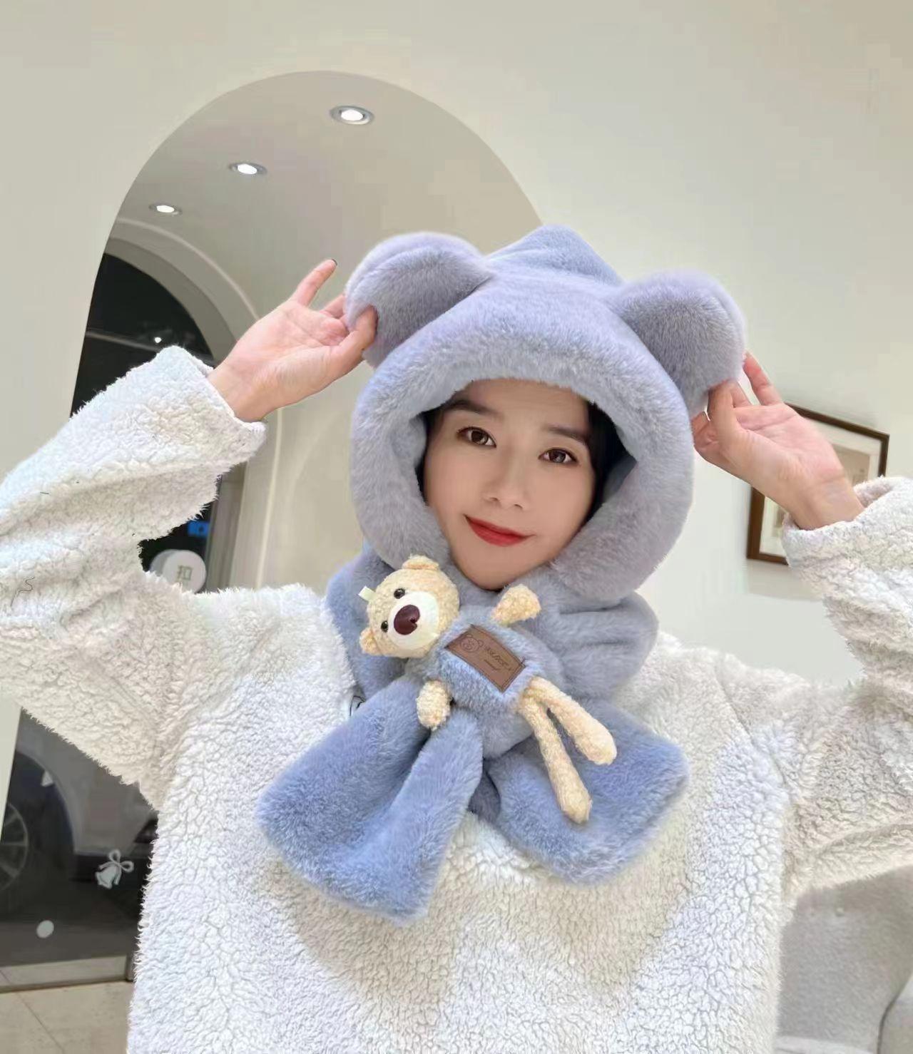 Sombrero y Bufanda Todo en Uno para Mujer Invierno Versátil Lindo Sombrero de Felpa Cálido Invierno Engrosado Antihielo y Cortavientos Bufanda con Capucha
