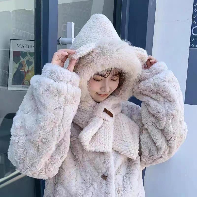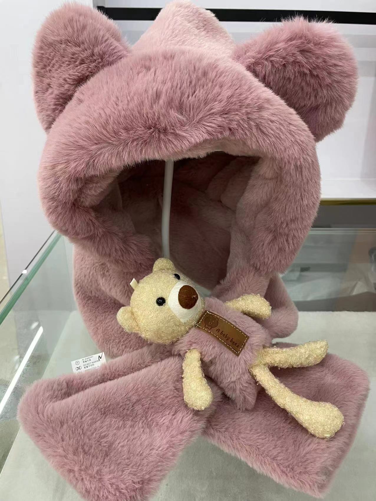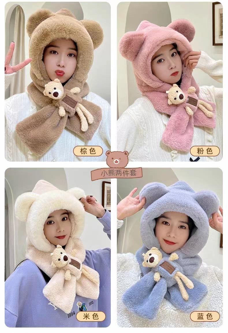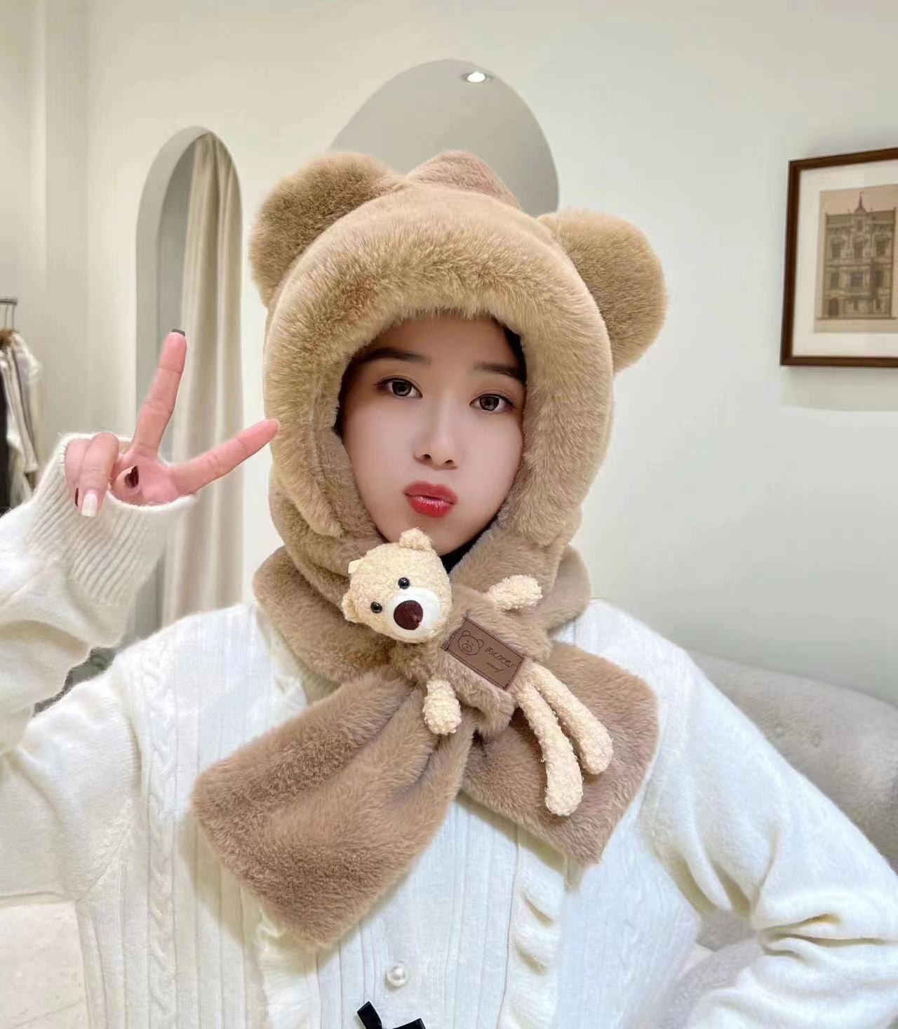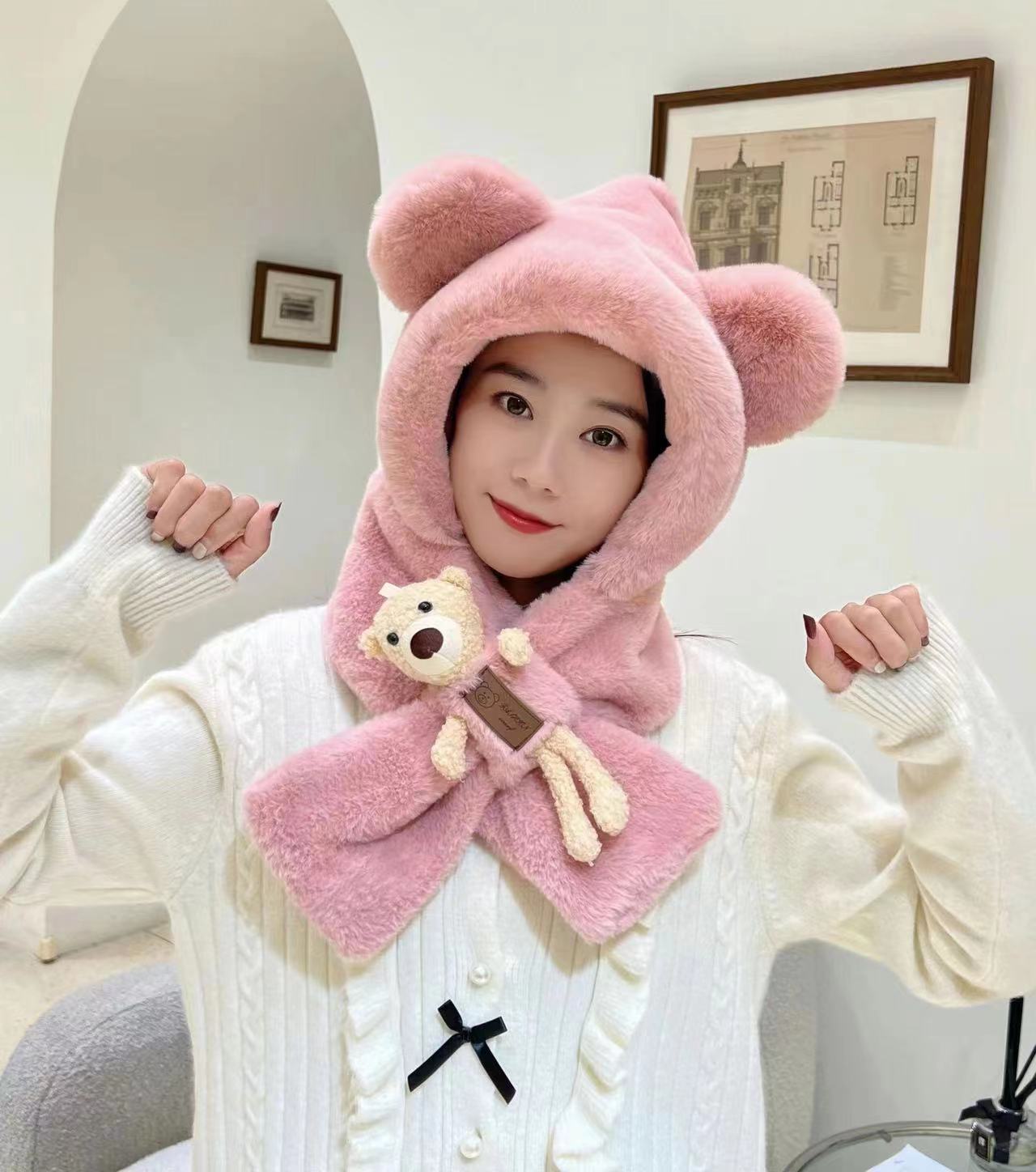 Sombrero y Bufanda Todo en Uno para Mujer Invierno Versátil Lindo Sombrero de Felpa Cálido Invierno Engrosado Antihielo y Cortavientos Bufanda con Capucha