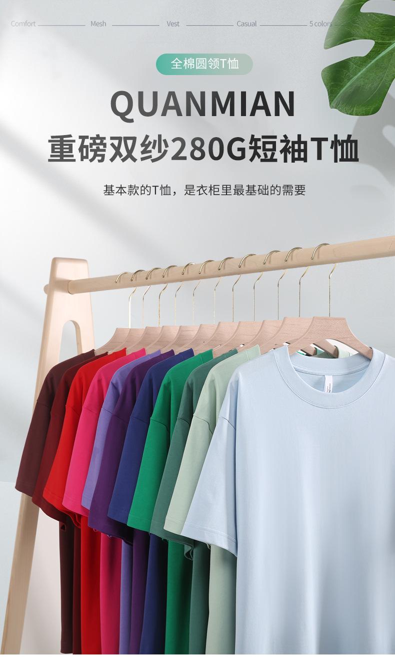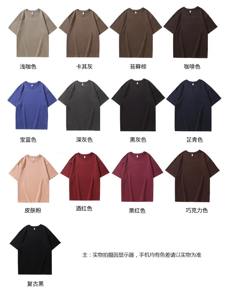 Color dopamina 280g marca sin género Qin camiseta pesada de cuello redondo algodón marca de moda manga corta para hombre y mujer