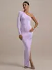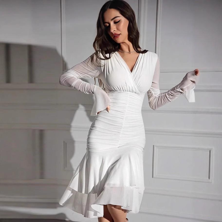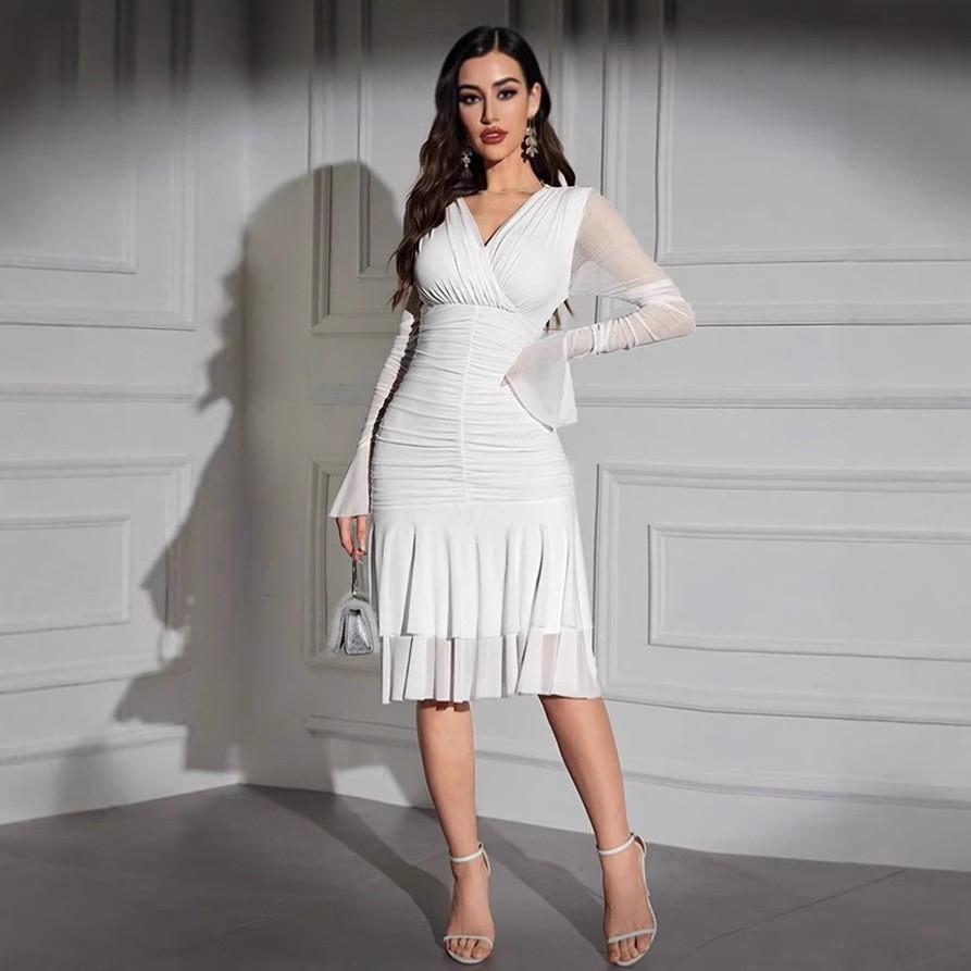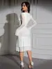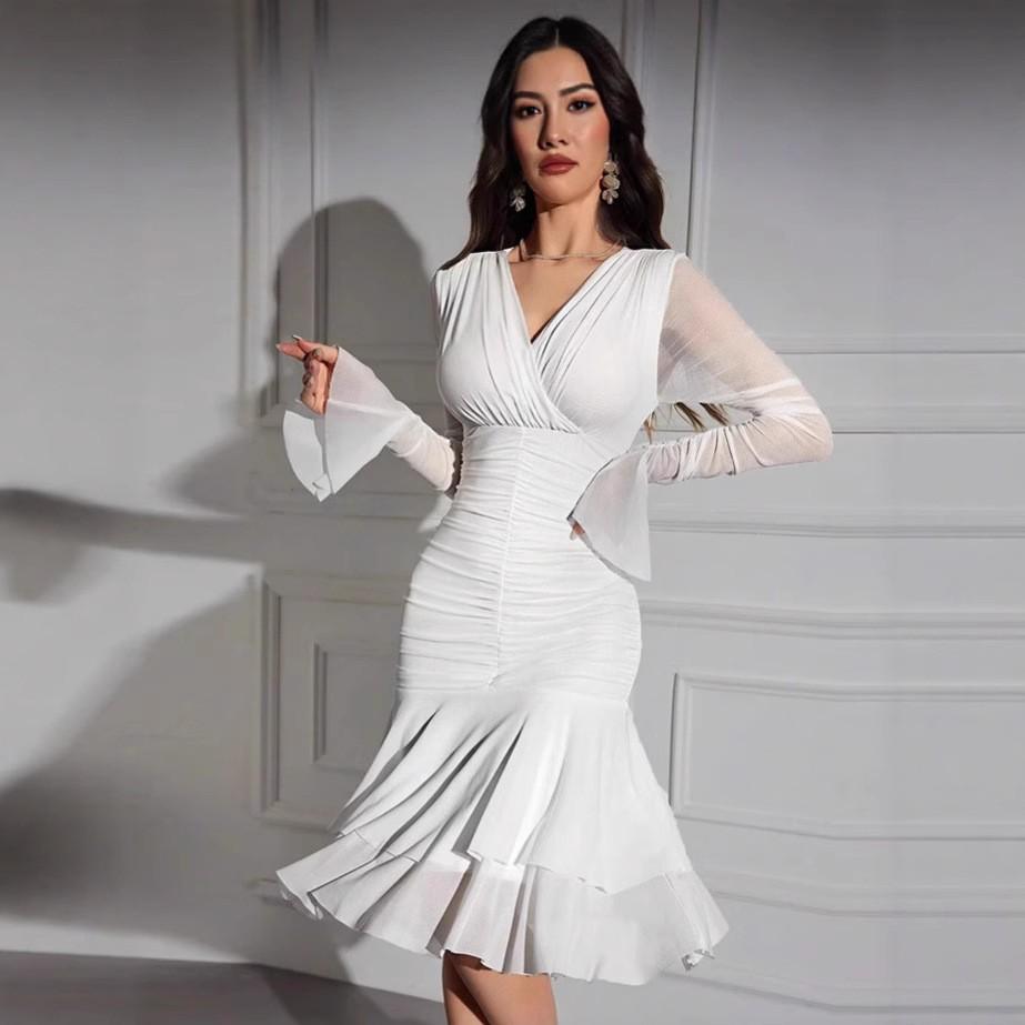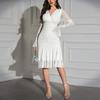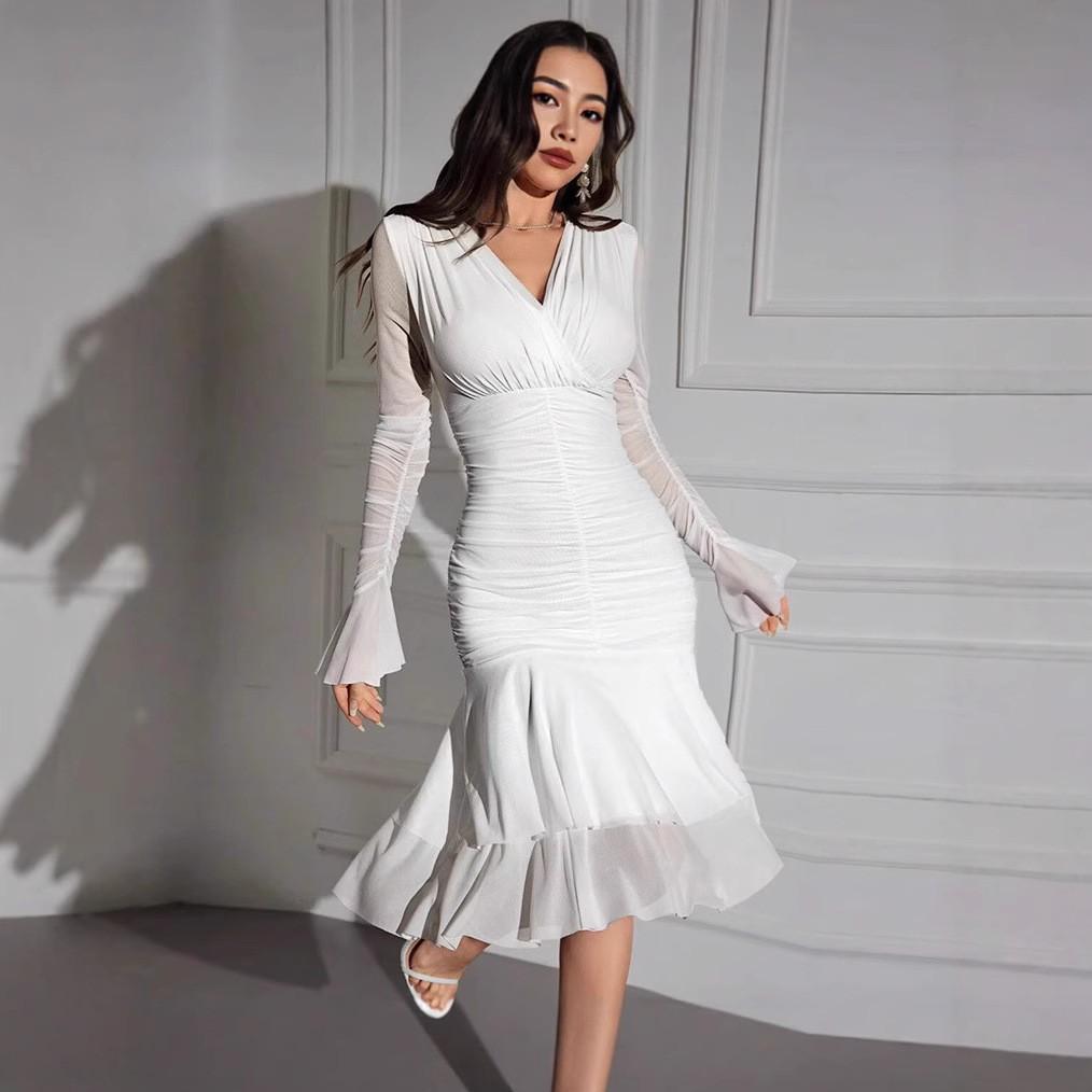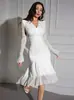 Exportación Europea y Americana 2025 Nueva Moda Elegante Color Puro Corte Slim Plisado en Cadera Manga Larga Falda Larga Vestido Lv