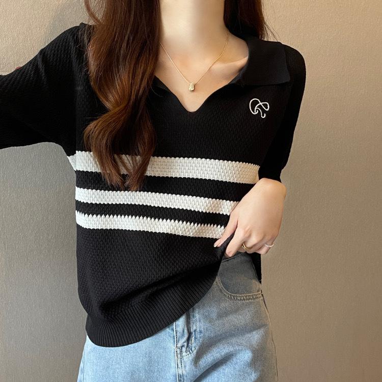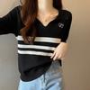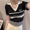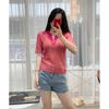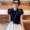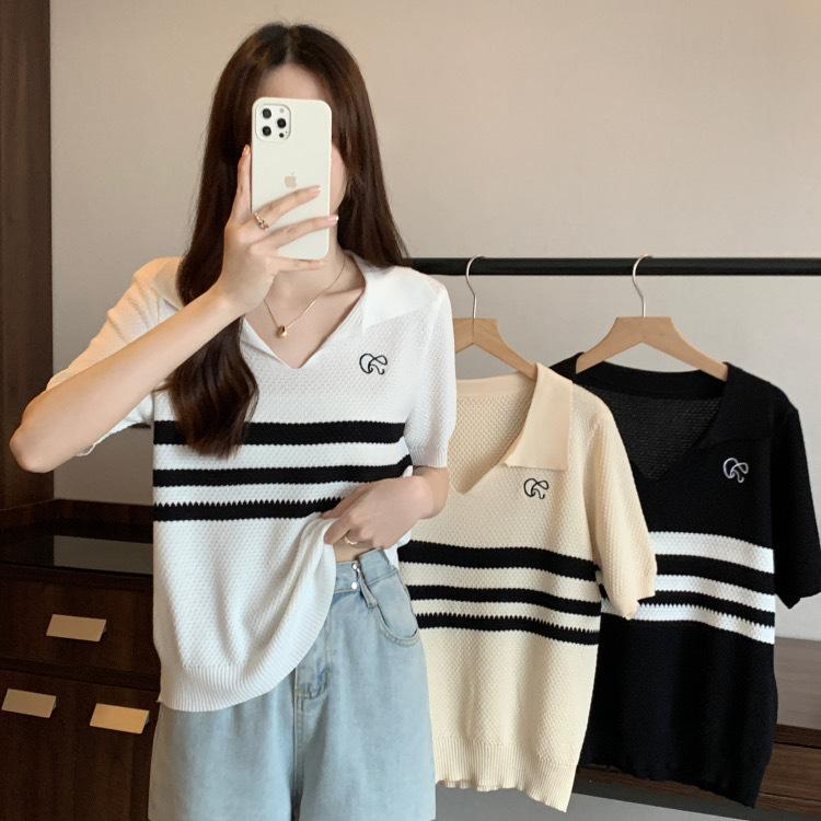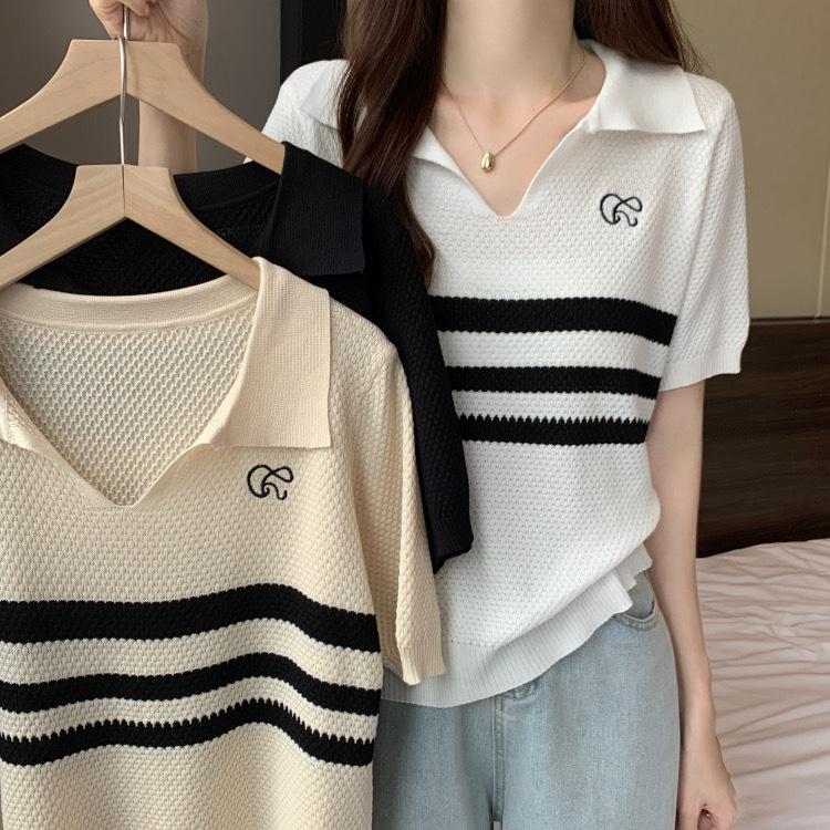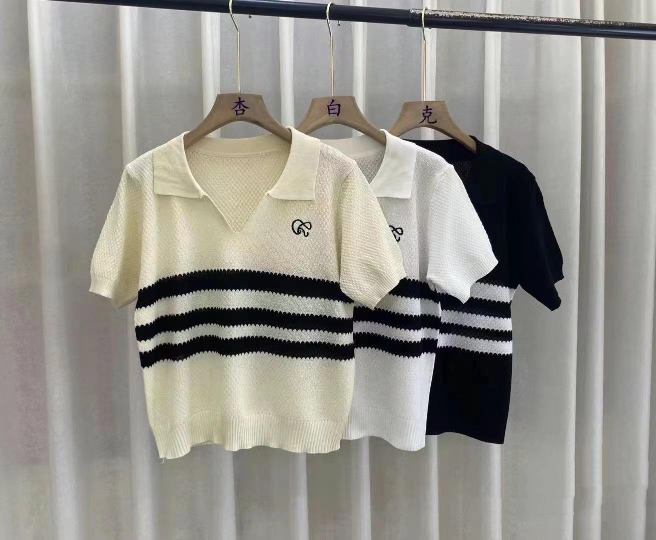 2025 Primavera y Verano Nuevo Top de Punto de Manga Corta con Solapa y Contraste de Color para Mujer, Ajuste Slim, Más Fácil de Combinar, Diseño Nicho