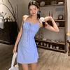 2025 Nuevo Traje de Baño a Cuadros con Tirantes Ajustados Fresco Traje de Baño de Una Pieza para Mujer de Vacaciones Estilo Francés Hermoso y Sexy