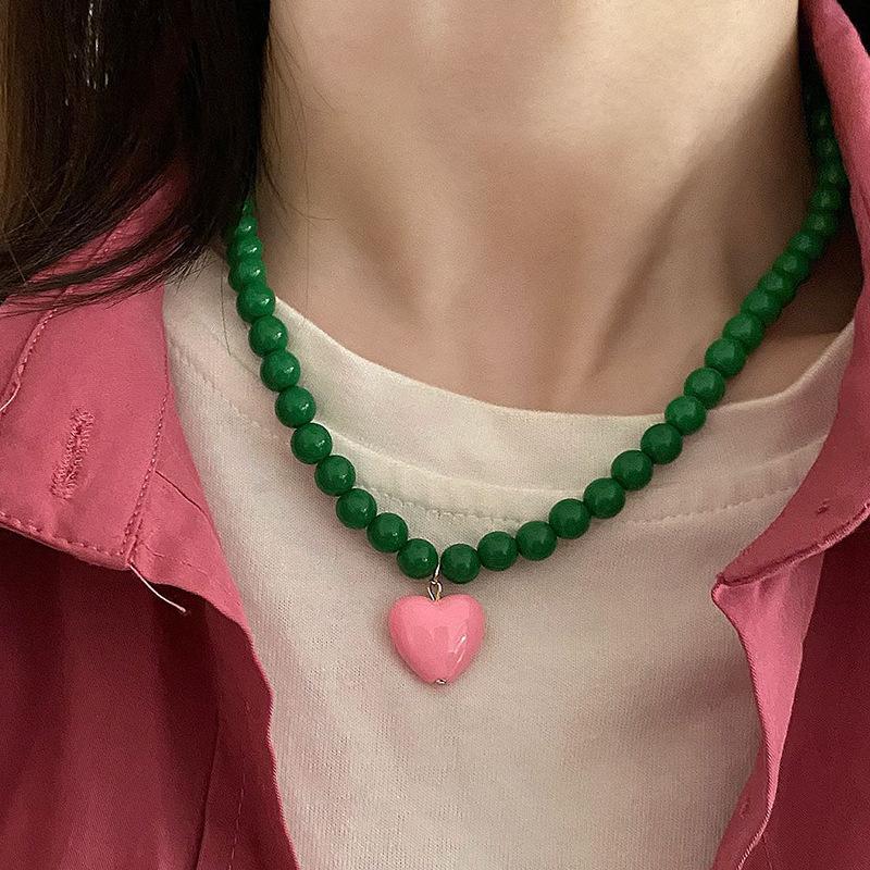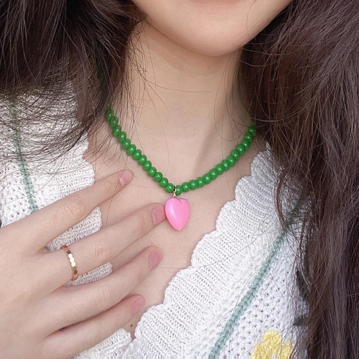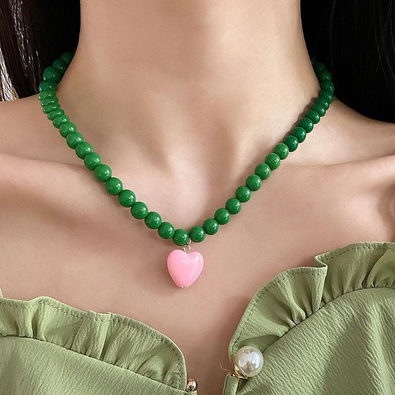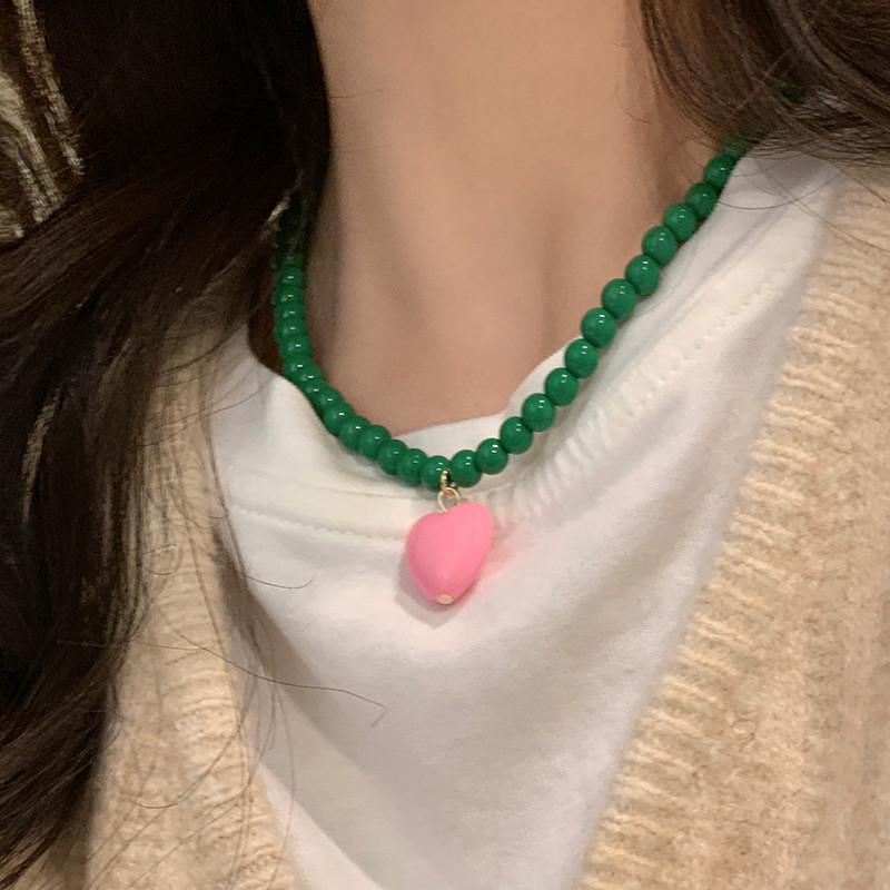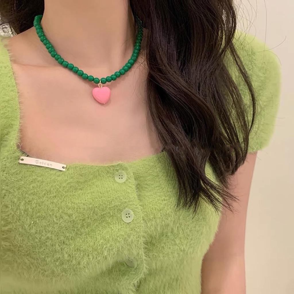 Collar de Cuentas Verdes de Amor de Primavera Temprana para Mujer Diseño Nicho Estilo Dulce Cool Collar Nuevo Estilo Cadena para Clavícula Accesorios