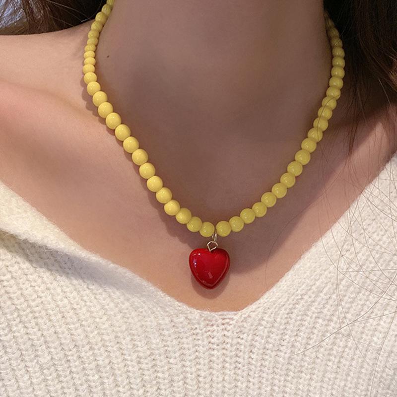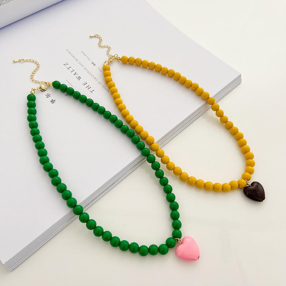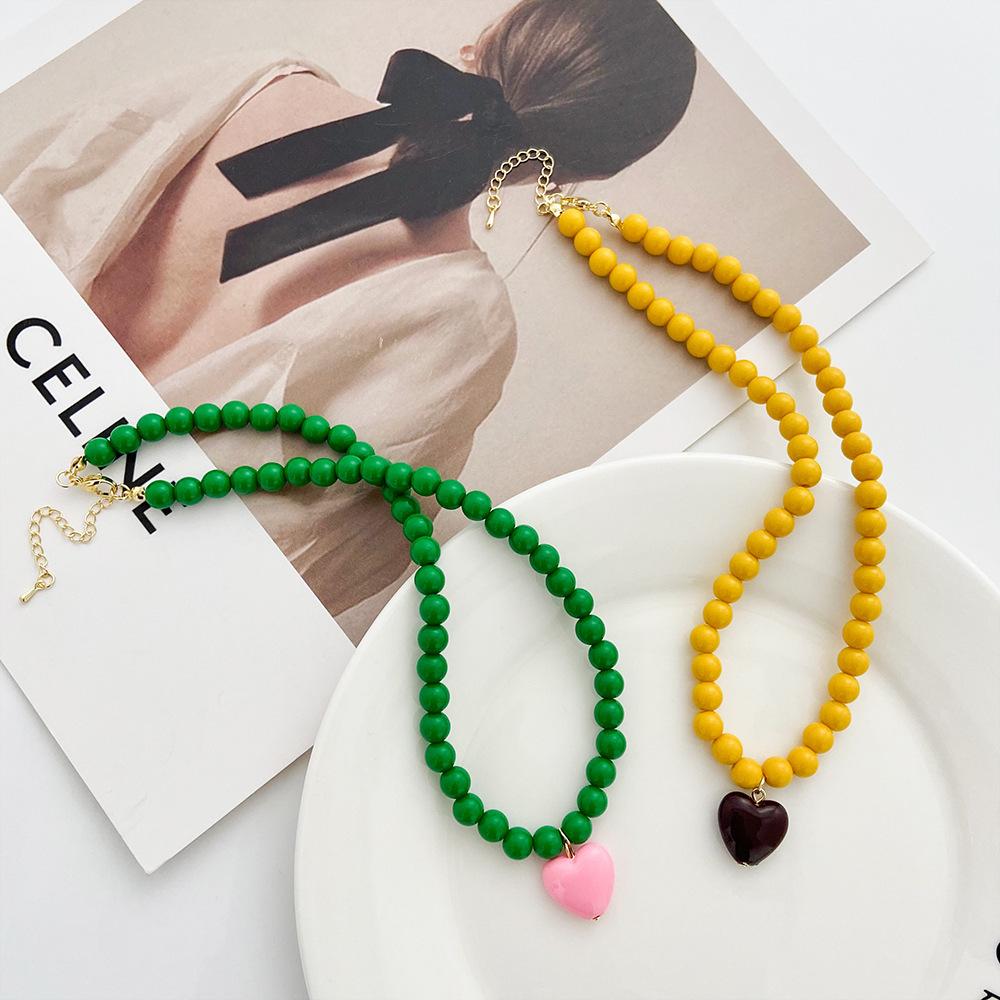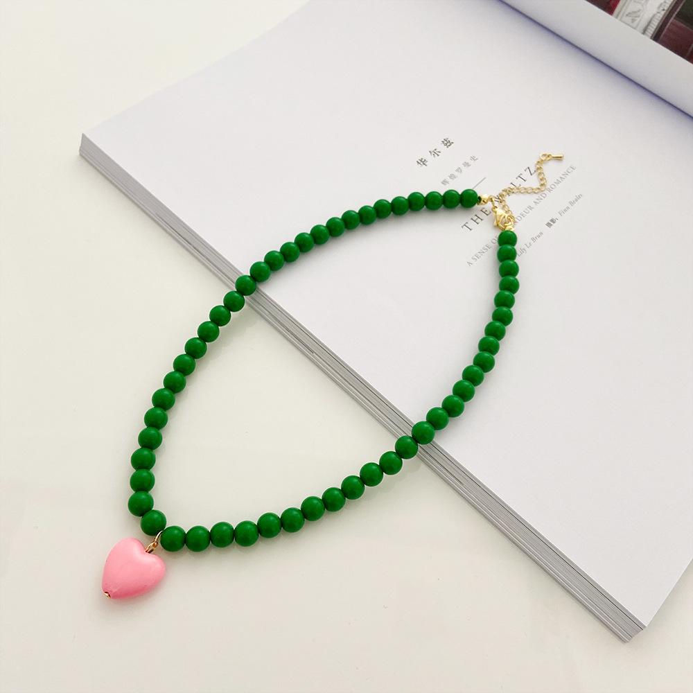 Collar de Cuentas Verdes de Amor de Primavera Temprana para Mujer Diseño Nicho Estilo Dulce Cool Collar Nuevo Estilo Cadena para Clavícula Accesorios