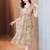 Vestido de Verano Nuevo de Alta Calidad Talla Grande Madre Joven Velo Xiangyun Tortuga Crack Seda Tortuga Falda de Seda de Morera
