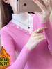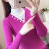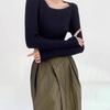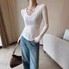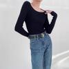 Suéter de Punto de Fondo de Cuello Barco Otoño e Invierno con Clavícula Descubierta de Manga Larga Francés Top Delgado Negro para Mujer