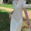 Falda Jacquard Estilo Nacional Adelgazante de Cintura Ajustada Primavera y Otoño 2025 Nuevo Estilo Chino Vestido Cheongsam Joven Mejorado para Mujer
