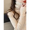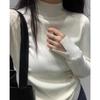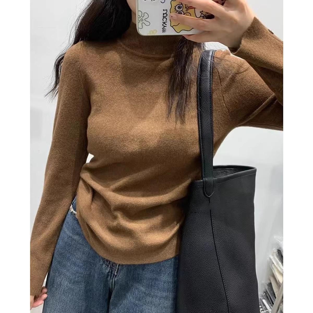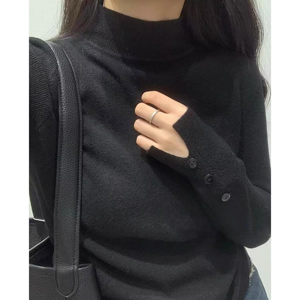Suéter de lana gris de cuello medio alto, ajustado, de manga larga, para mujer, de invierno, de alta gama, con base interior encerada suave