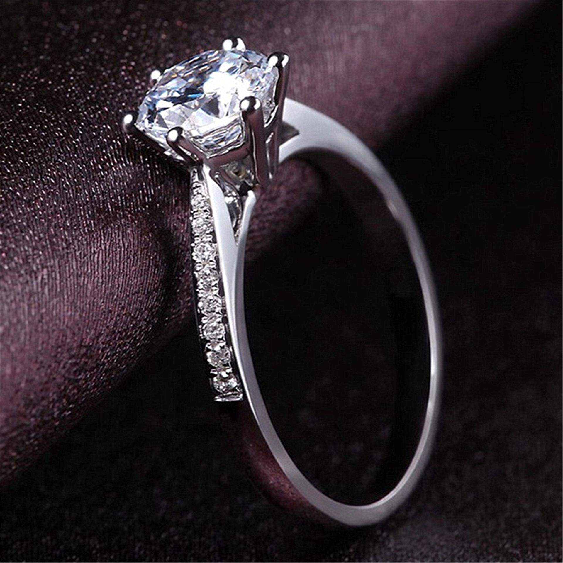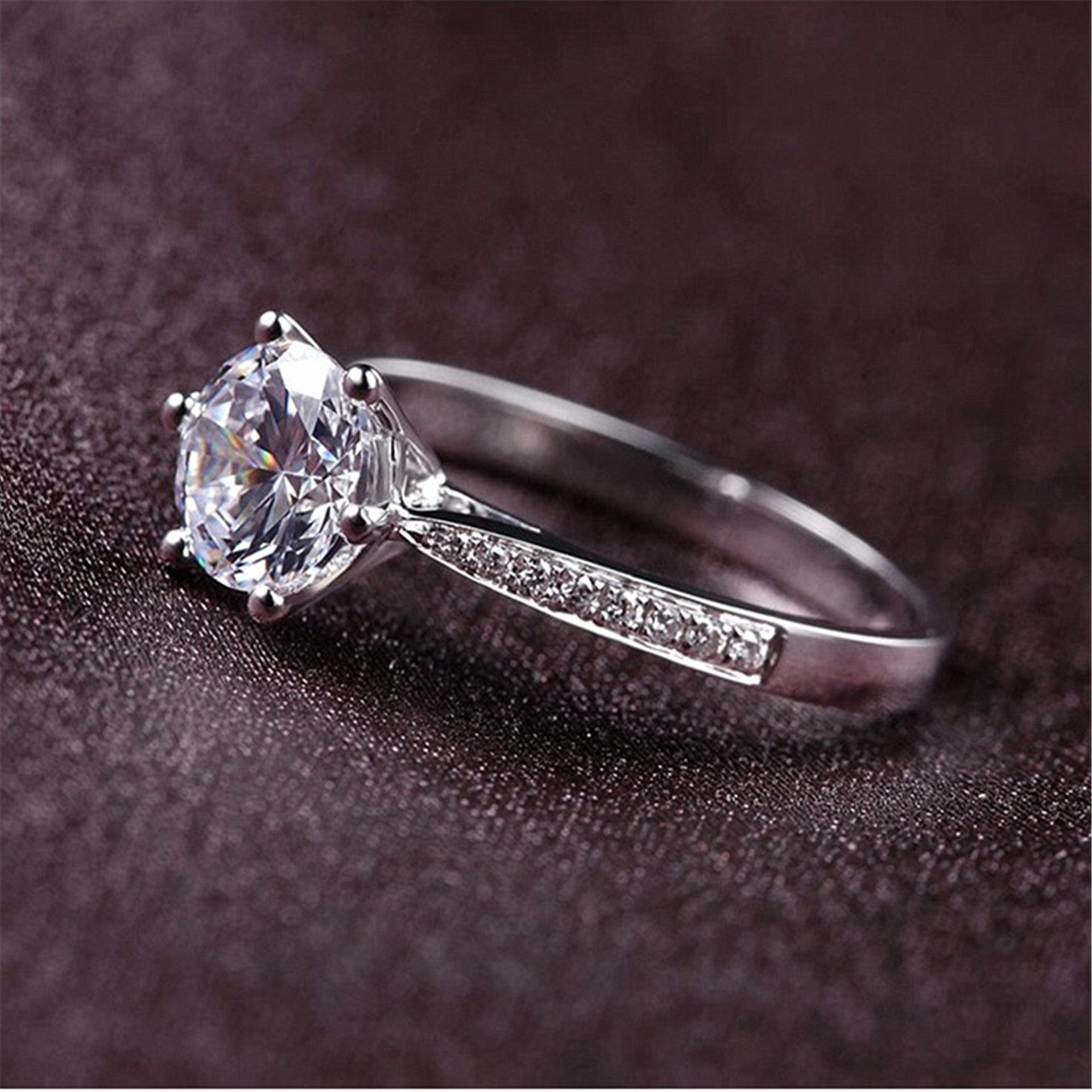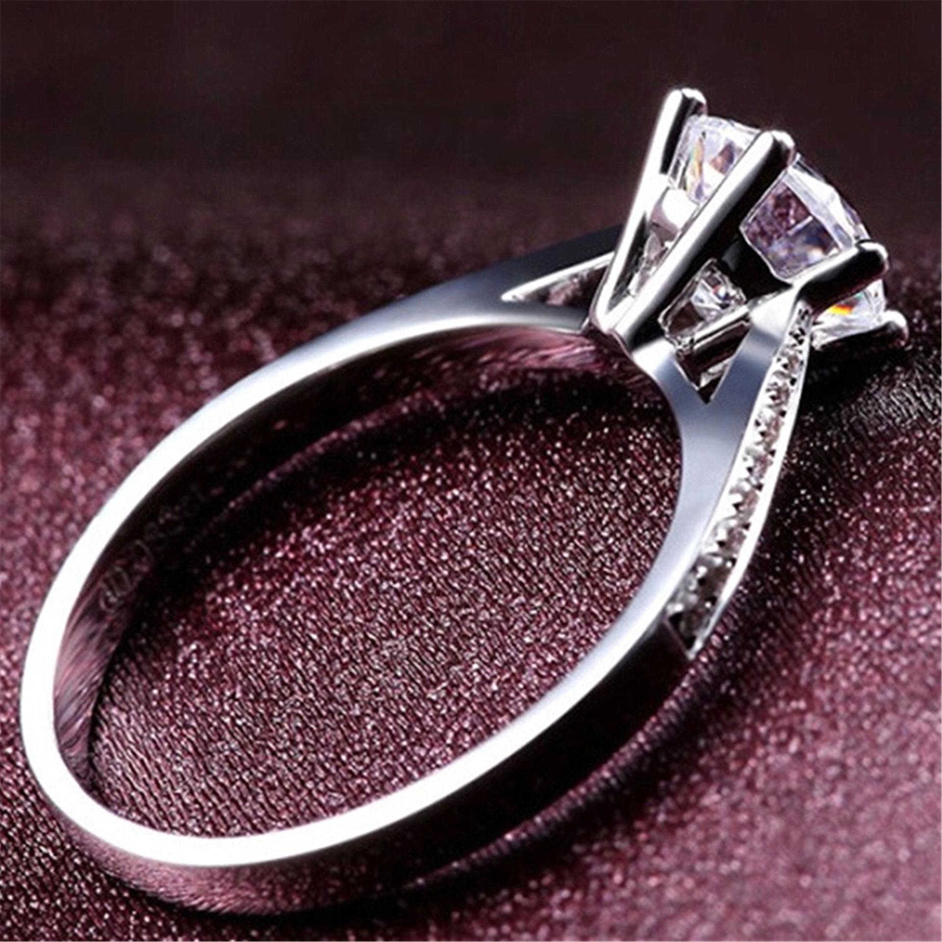 Versión Coreana Anillo de Diamantes de Venta Caliente con Engaste de Garra Chapado en Platino con Seis Garras, Ocho Corazones y Ocho Flechas Circonita Anillo Dropshipping