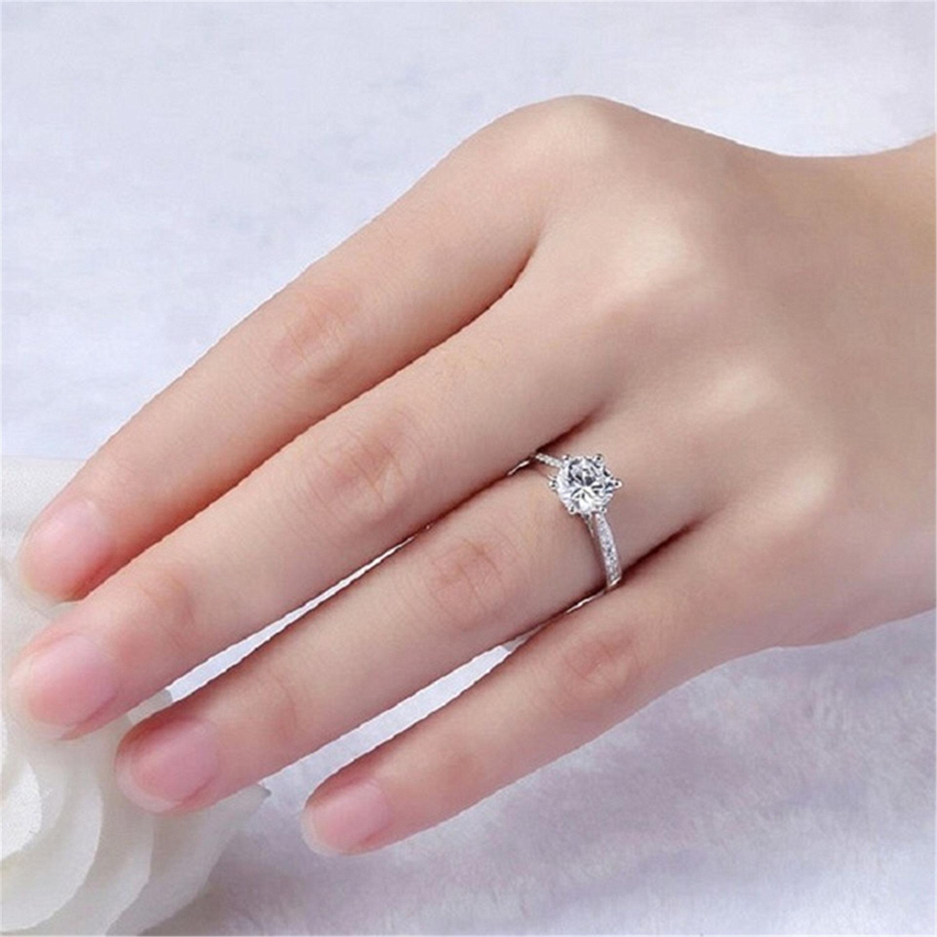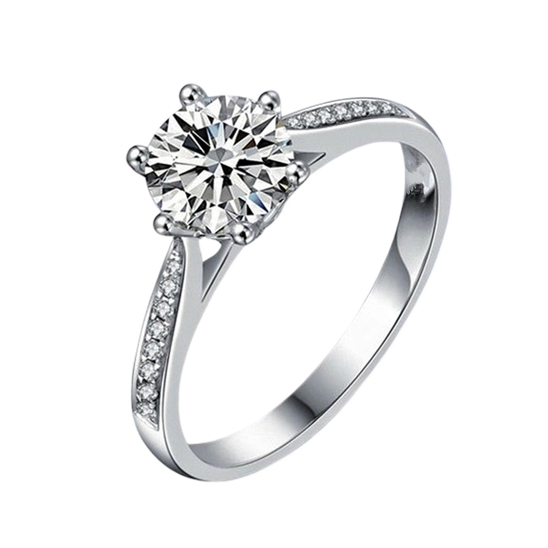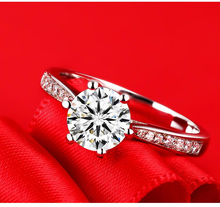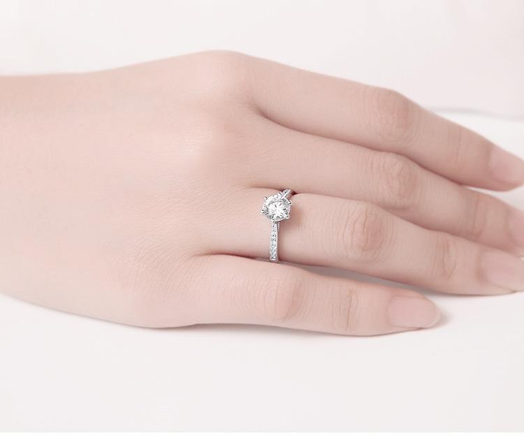 Versión Coreana Anillo de Diamantes de Venta Caliente con Engaste de Garra Chapado en Platino con Seis Garras, Ocho Corazones y Ocho Flechas Circonita Anillo Dropshipping