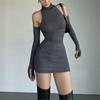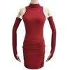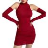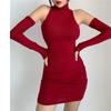 Vestido Rojo Sexy de Manga Larga con Lazo Alto y Cuello Alto Nuevo de Otoño Temprano Ajustado de Hombro Estrecho Elegante Falda de Cadera