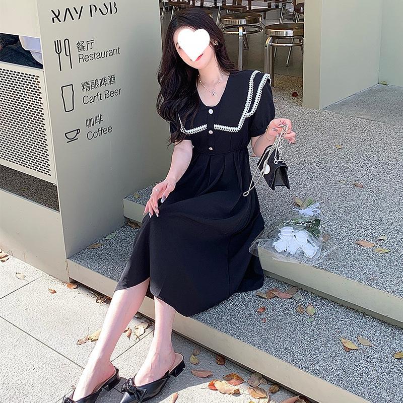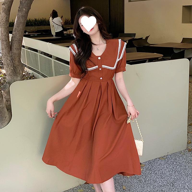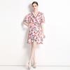 Temperamento francés volantes grasa mm cubrir carne delgada vestido femenino femenino ligero protector solar cuello en V vestido de vacaciones