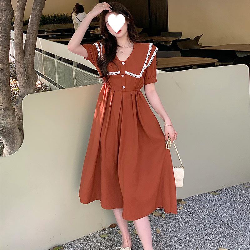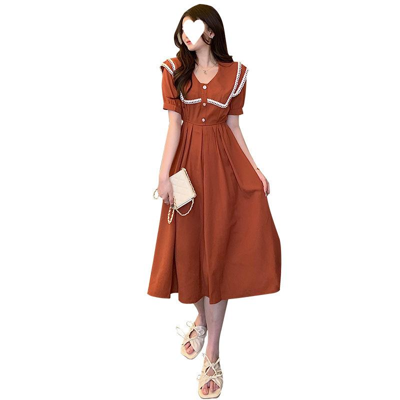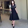Vestido de Verano de Manga Corta Francés Retro con Solapa de Encaje Estilo Hepburn para Mujer
