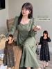 2025 nuevo estilo ligeramente gordita MM vestido floral de manga larga para niña que cubre el vientre y te hace lucir delgada