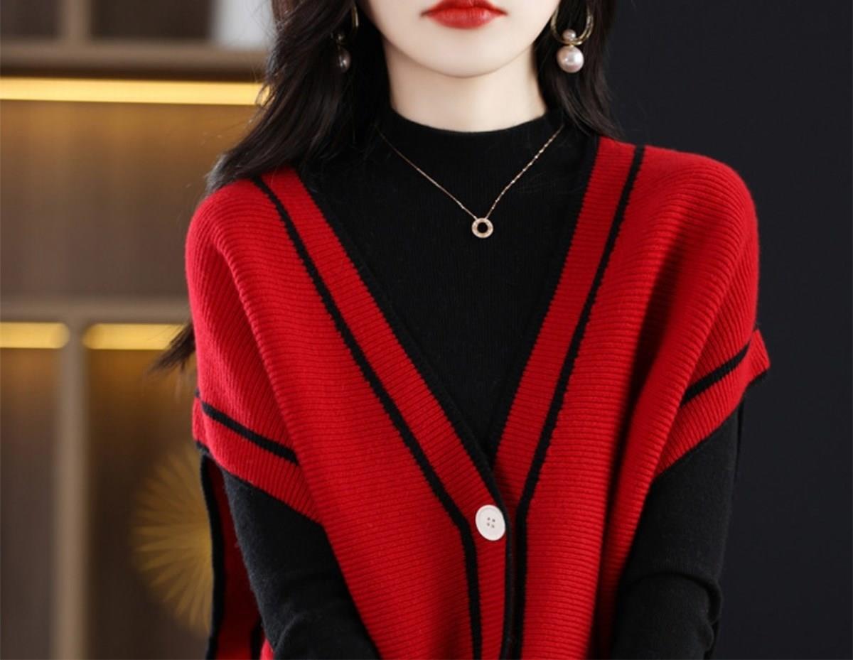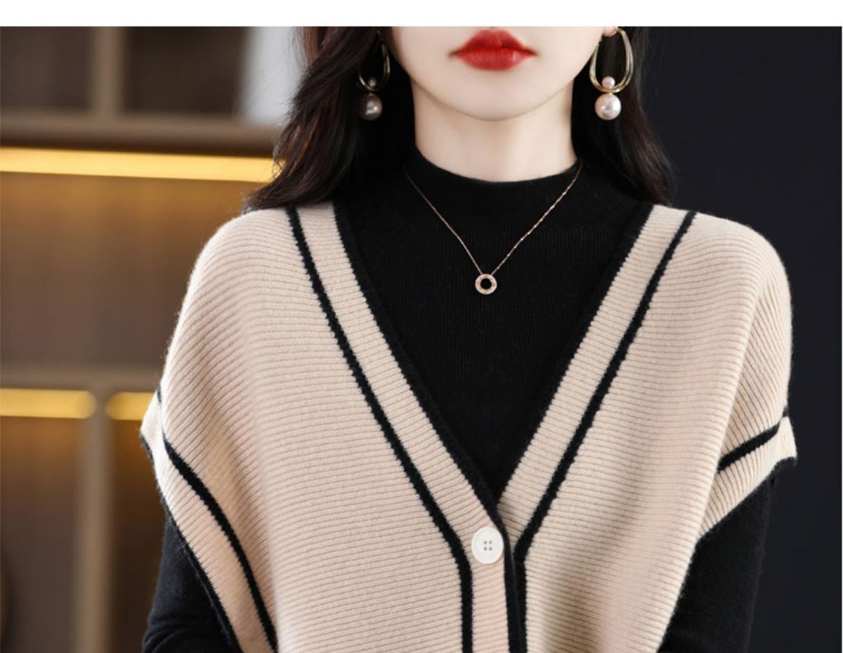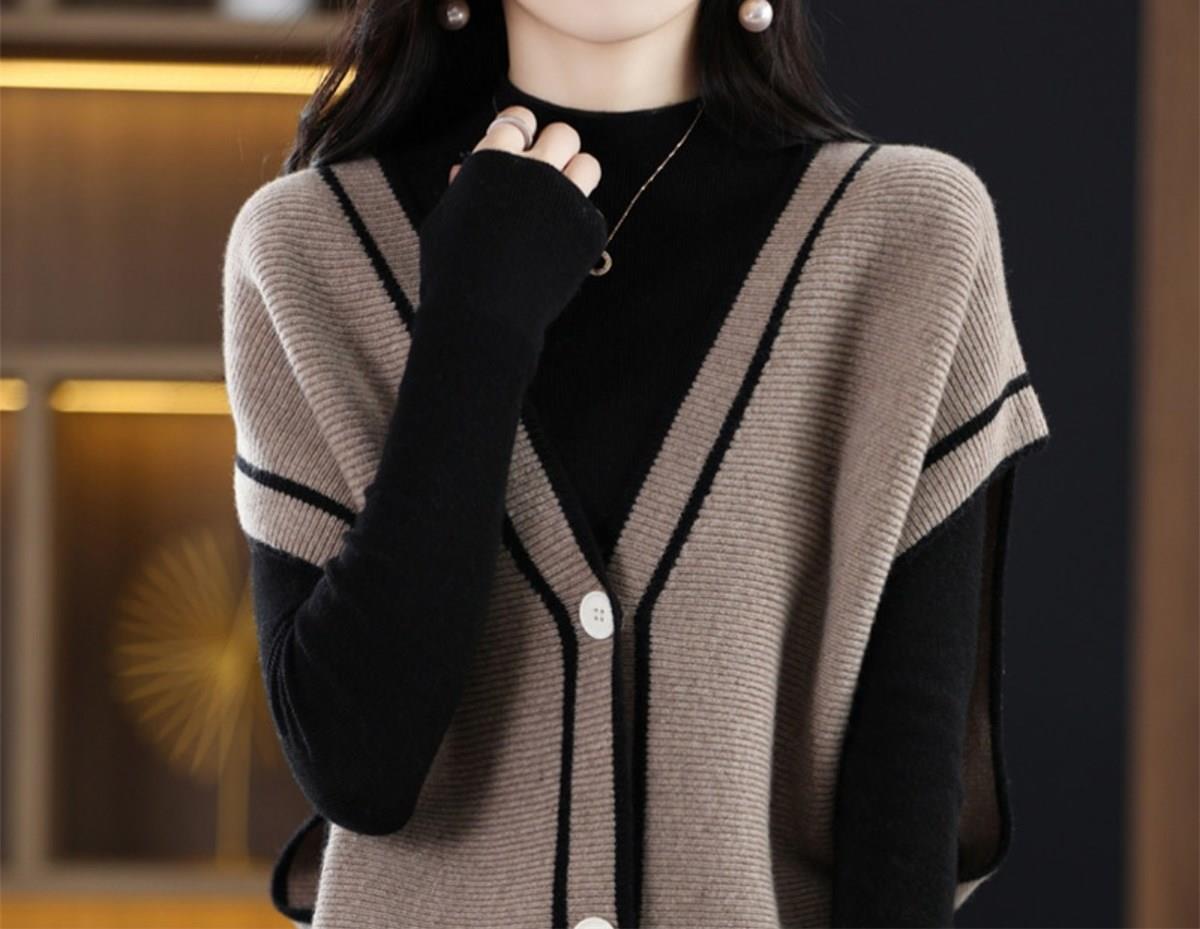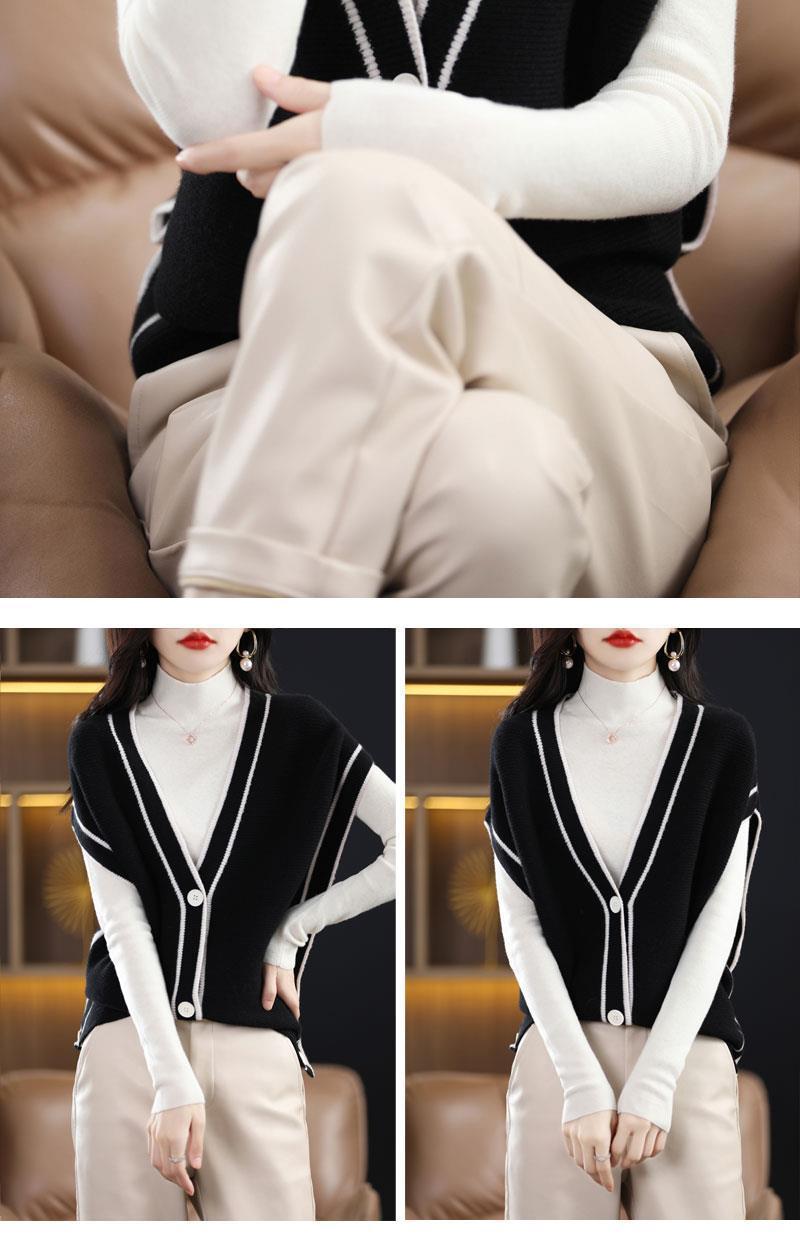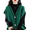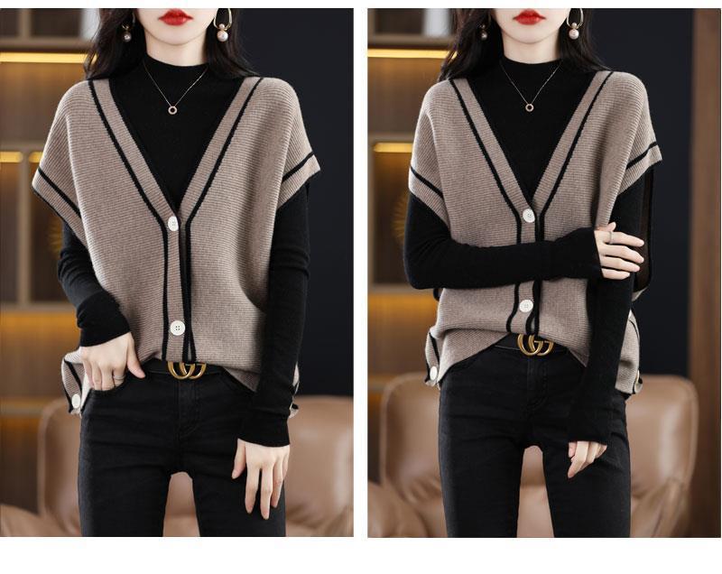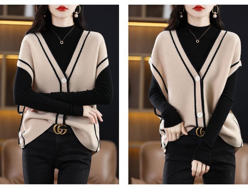Chaleco para Mujer Primavera Temprana Nuevo Monopecho Combinación de Colores Suéter sin Mangas Chaqueta Cárdigan Tejido Holgado para Mujer Chaleco para Mujer