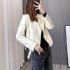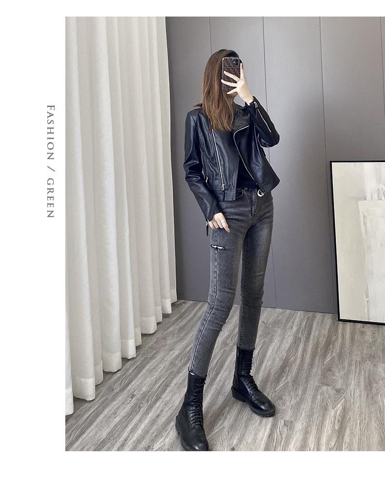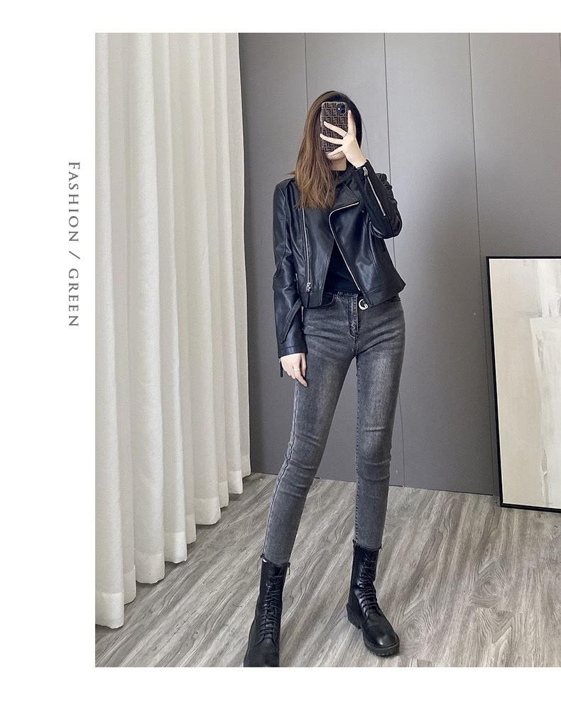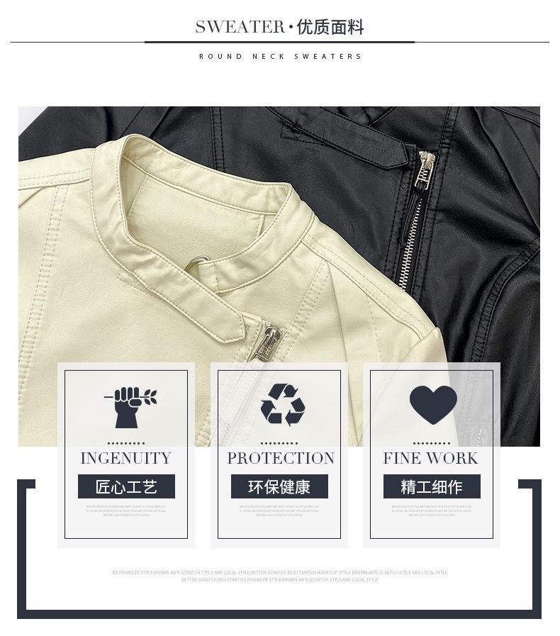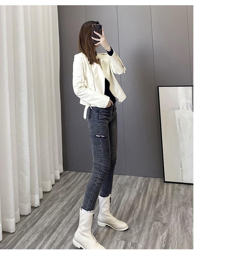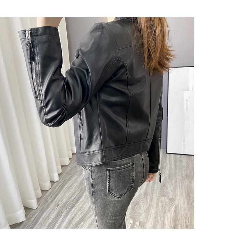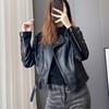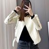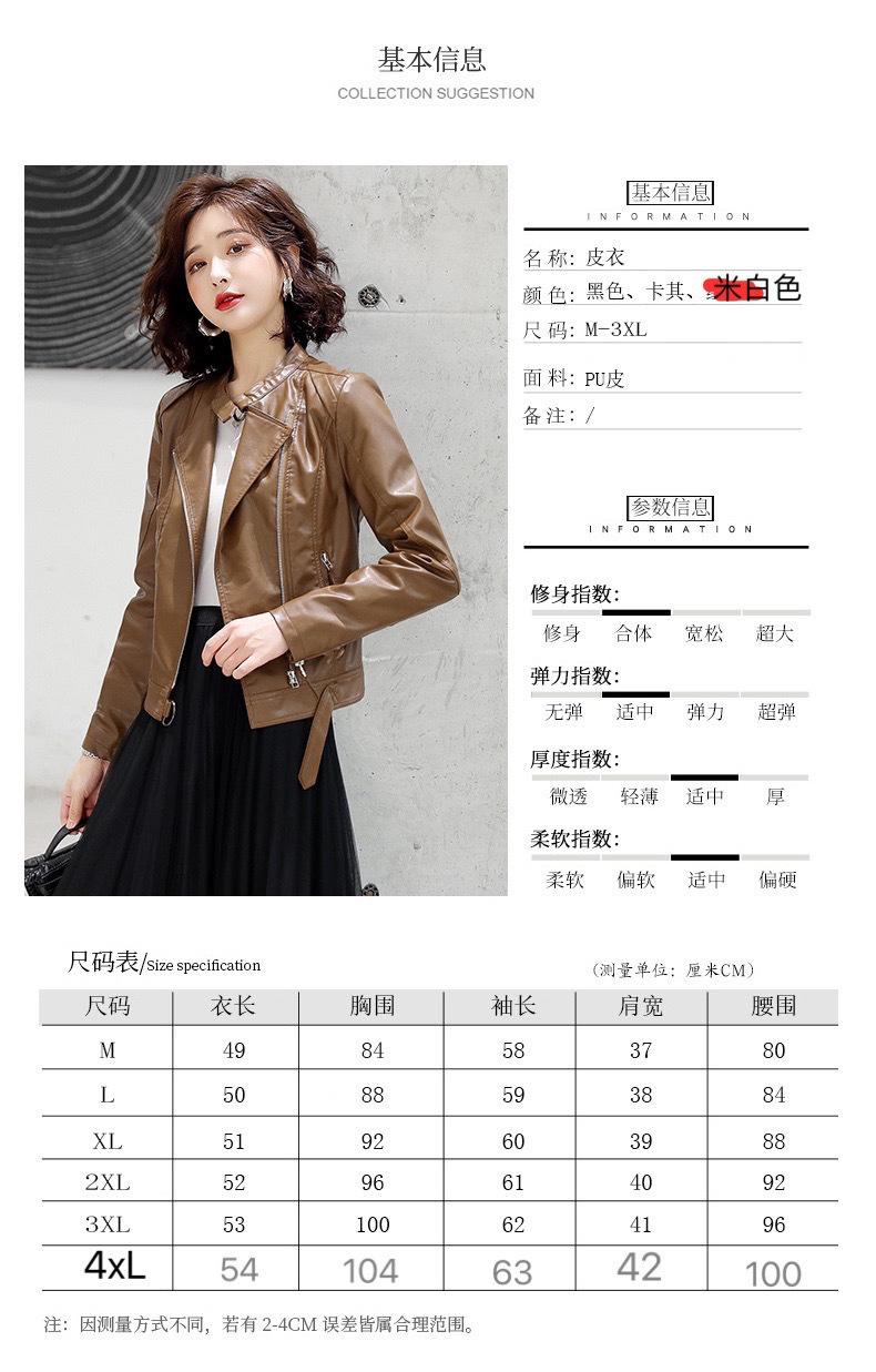 2024 Nueva Llegada Ropa de Cuero para Mujer Otoño Cinturón Chaqueta Corta Estilo Coreano Motocicleta Chaqueta de Cuero PU Adelgazante Combinable Beige