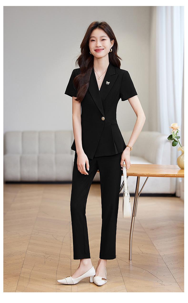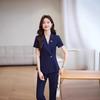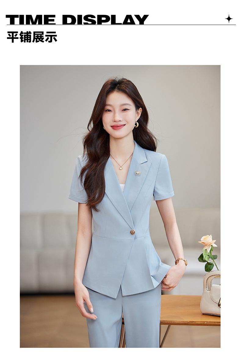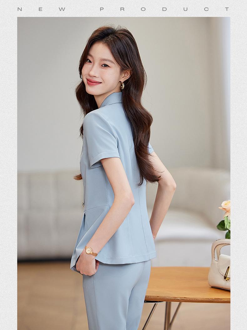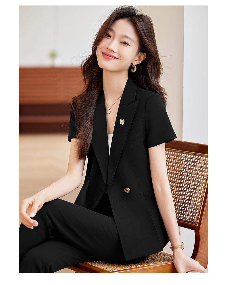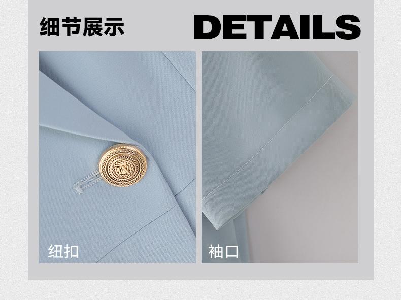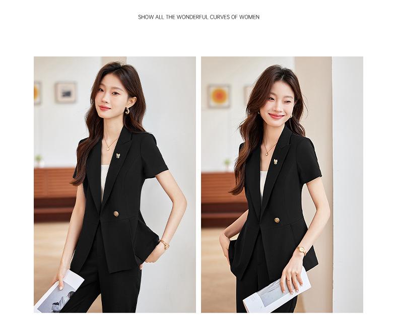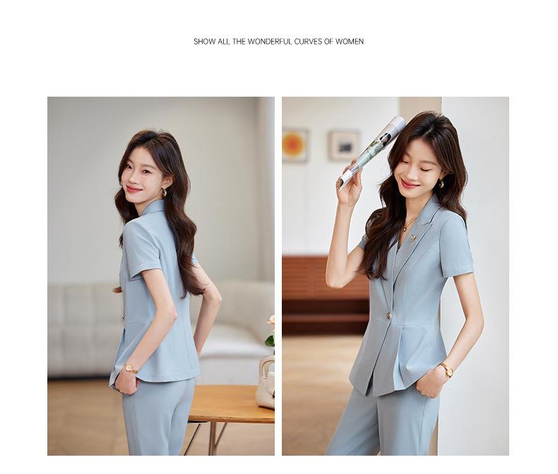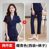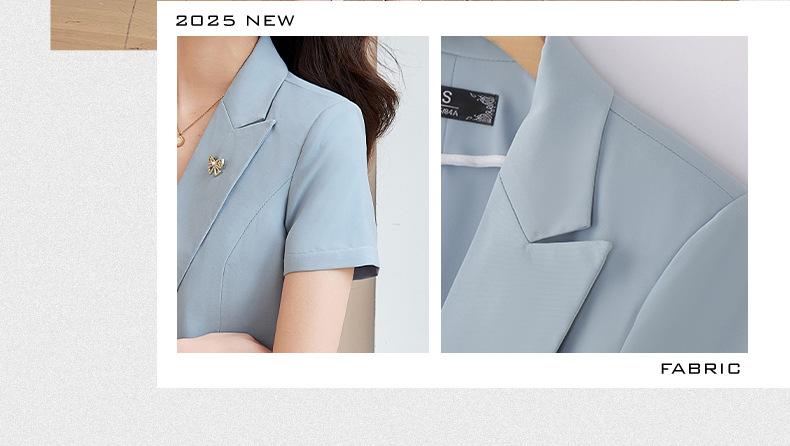 Traje corto de verano de manga corta con cuello tipo sastre para mujer, pantalones de verano profesionales azul marino, traje de dos piezas 2025 nueva moda