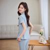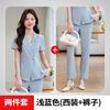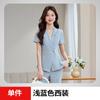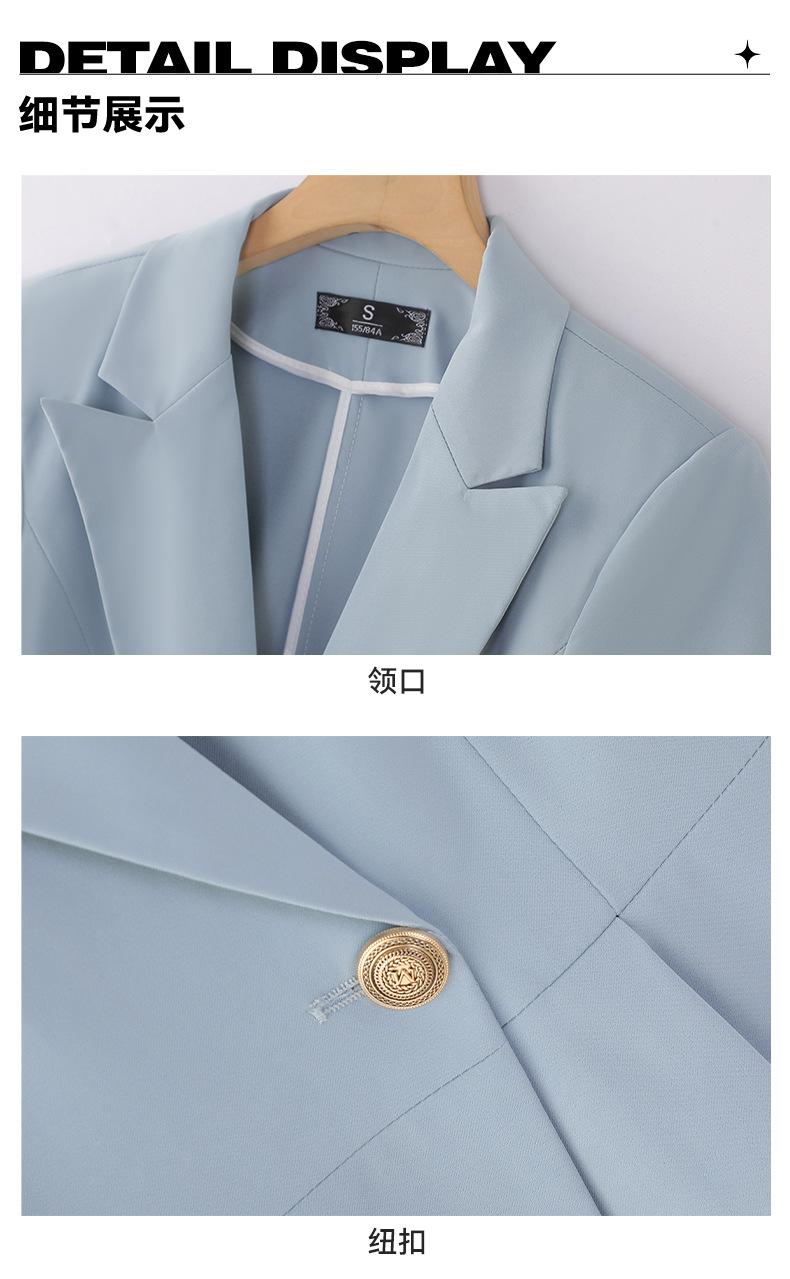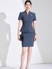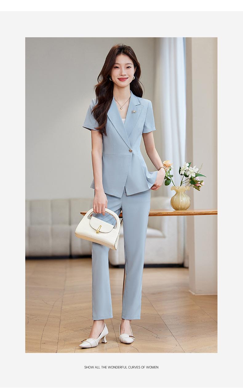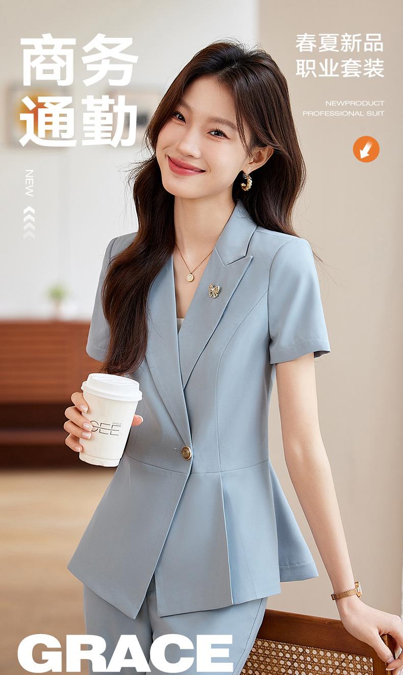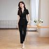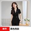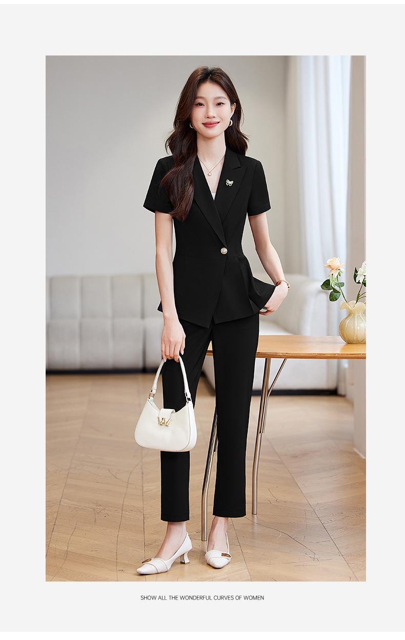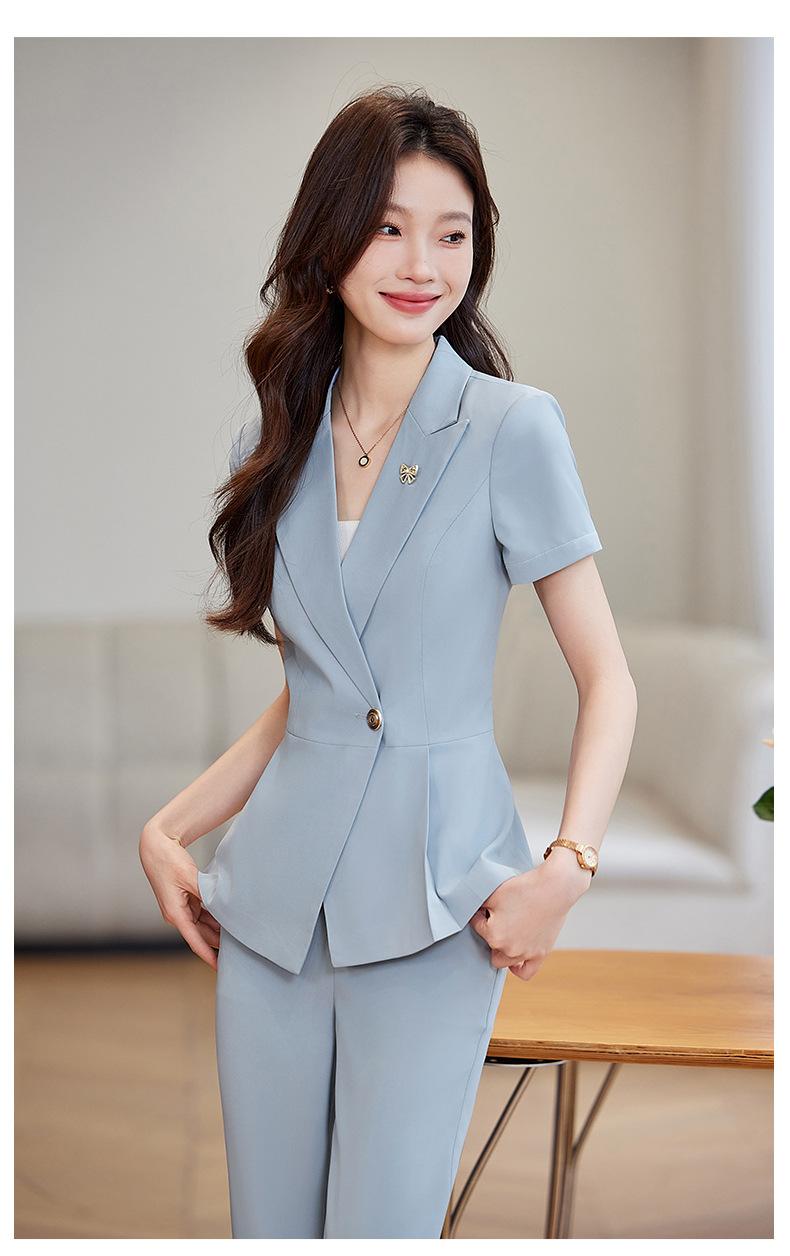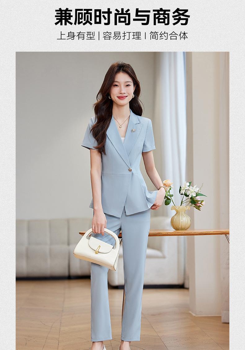 Traje corto de verano de manga corta con cuello tipo sastre para mujer, pantalones de verano profesionales azul marino, traje de dos piezas 2025 nueva moda