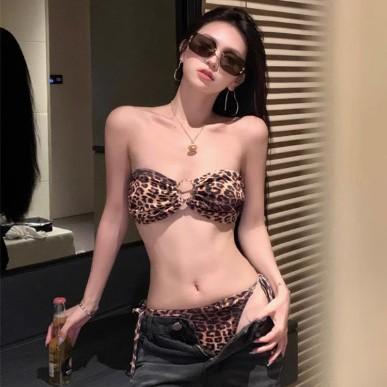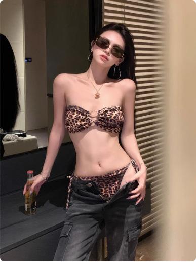 2025 Nuevo Traje de Baño Estampado Leopardo Europeo y Americano Sexy Tres Puntos Espalda Descubierta Tirantes Estilo Ins Traje de Baño Bikini Bikini