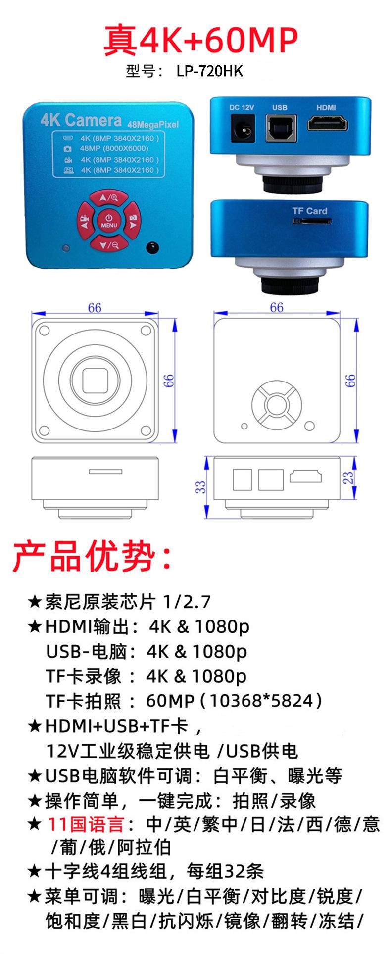 Microscopio Biológico S650T-720Hk Tipo Fibra Polvo Inspección Microbiana Medición de Fotos 60 Millones de Píxeles
