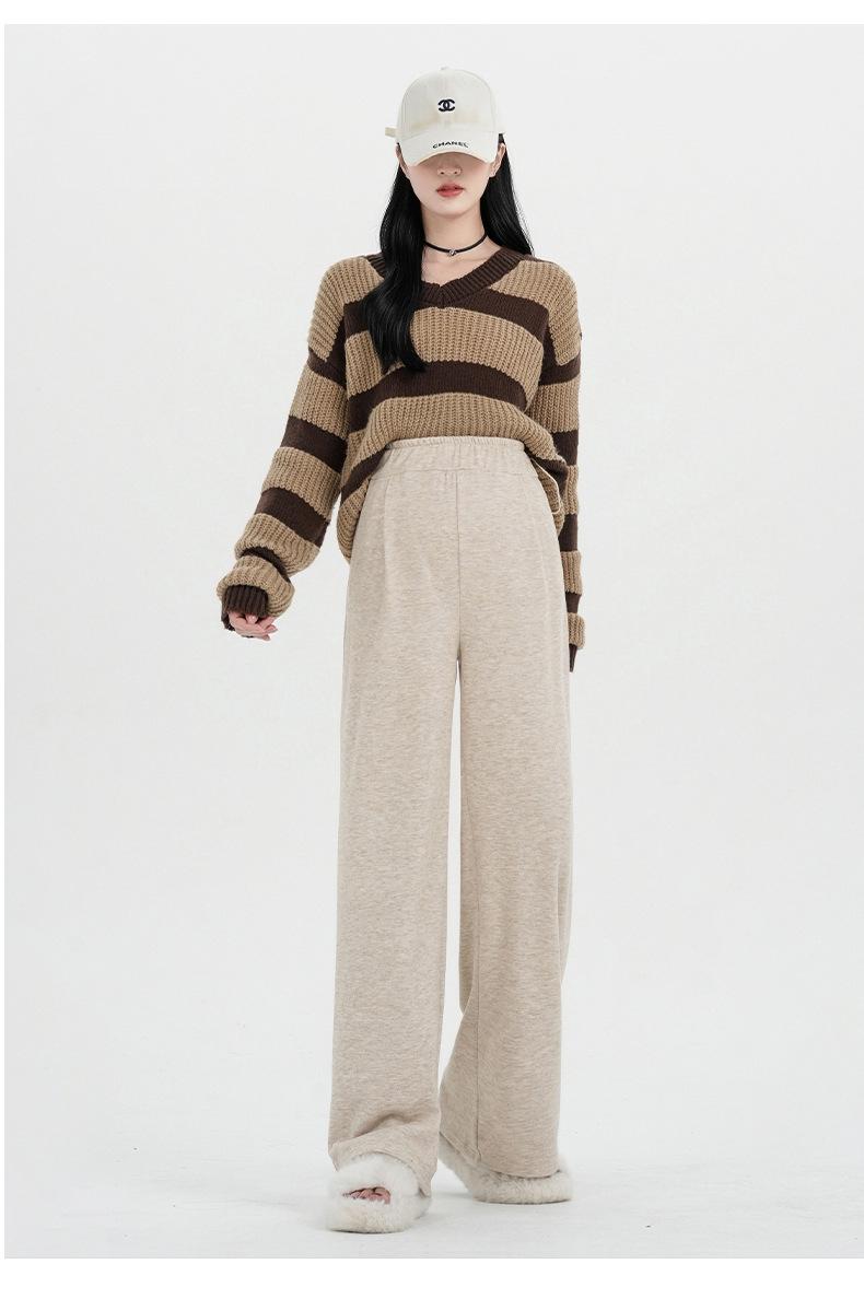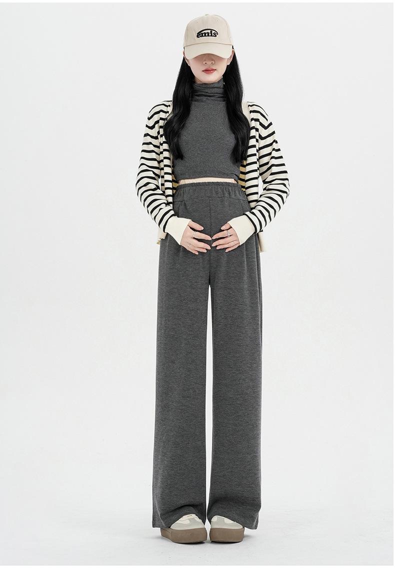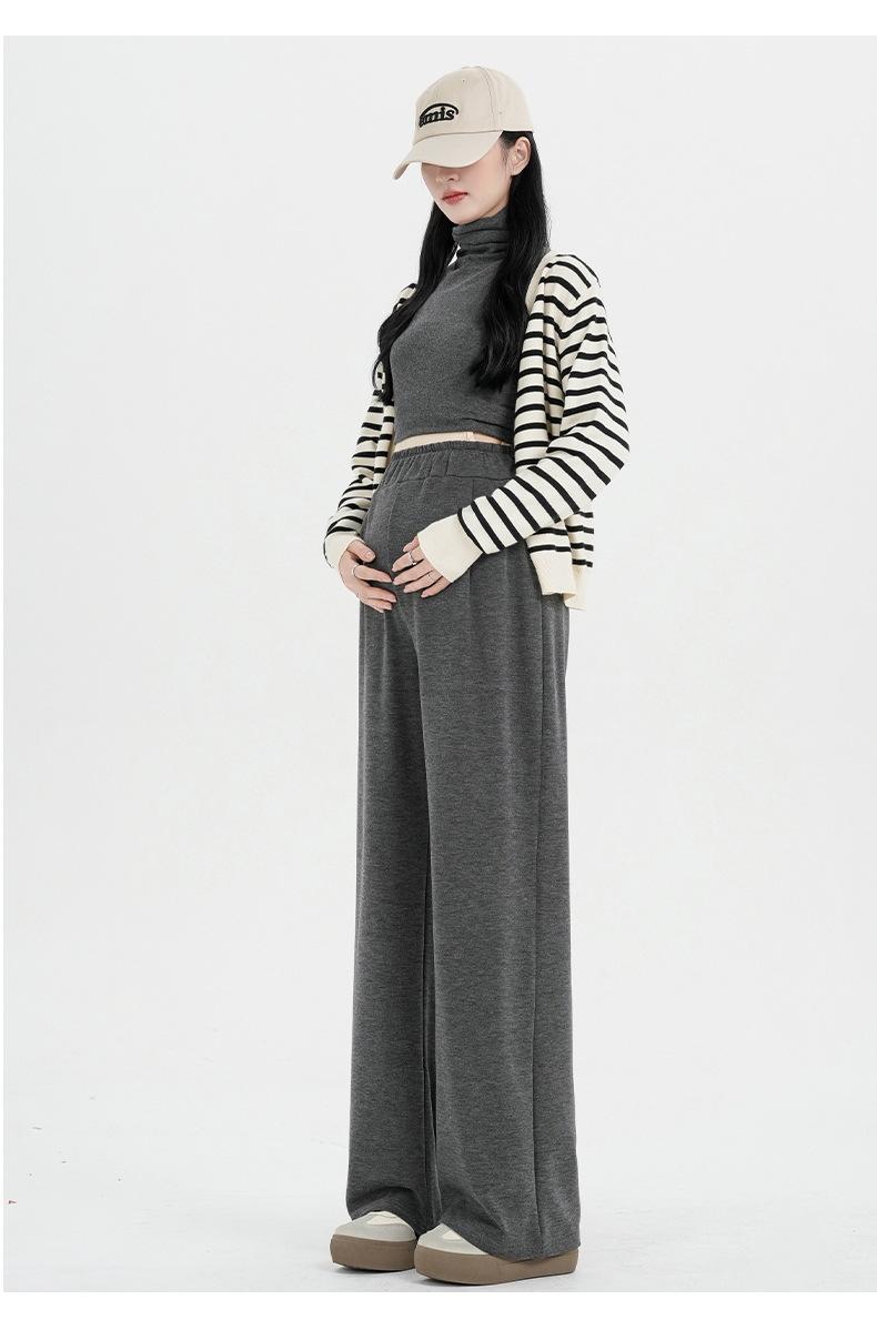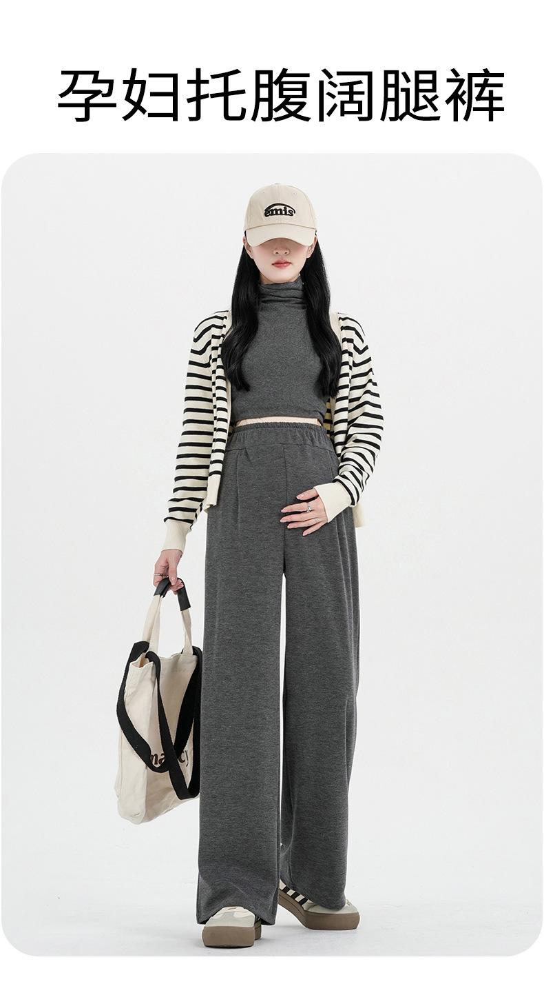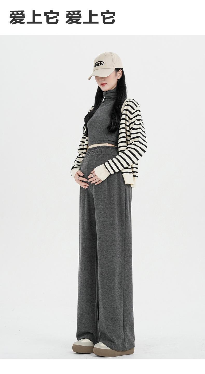 Ropa Postparto Pantalones de Pierna Ancha de Arroz Glutinoso para Mujeres Embarazadas Otoño e Invierno 2024 Nuevos Pantalones Casuales Adelgazantes de Cintura Alta Sueltos para Mujeres