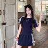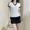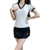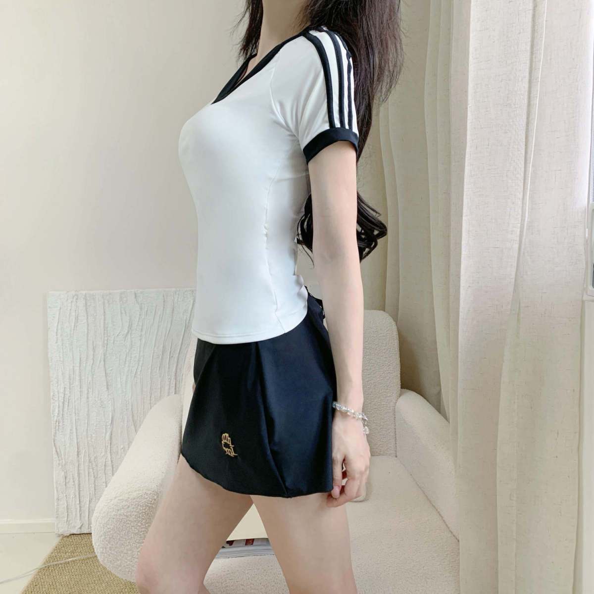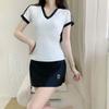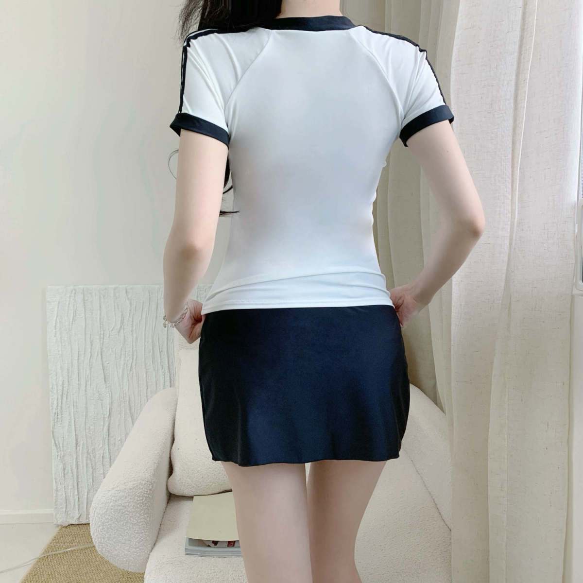 Traje Dulce y Picante para Mujer Camiseta de Manga Corta con Cintura en Contraste Verano Falda Hipster Falda Estilo Deportivo Casual Conjunto de Tres Piezas