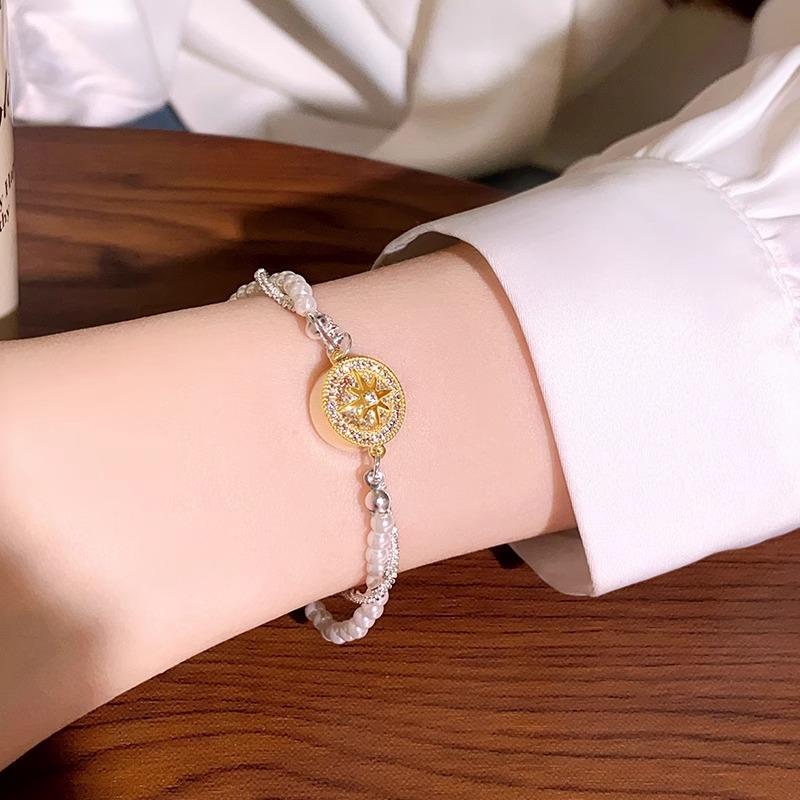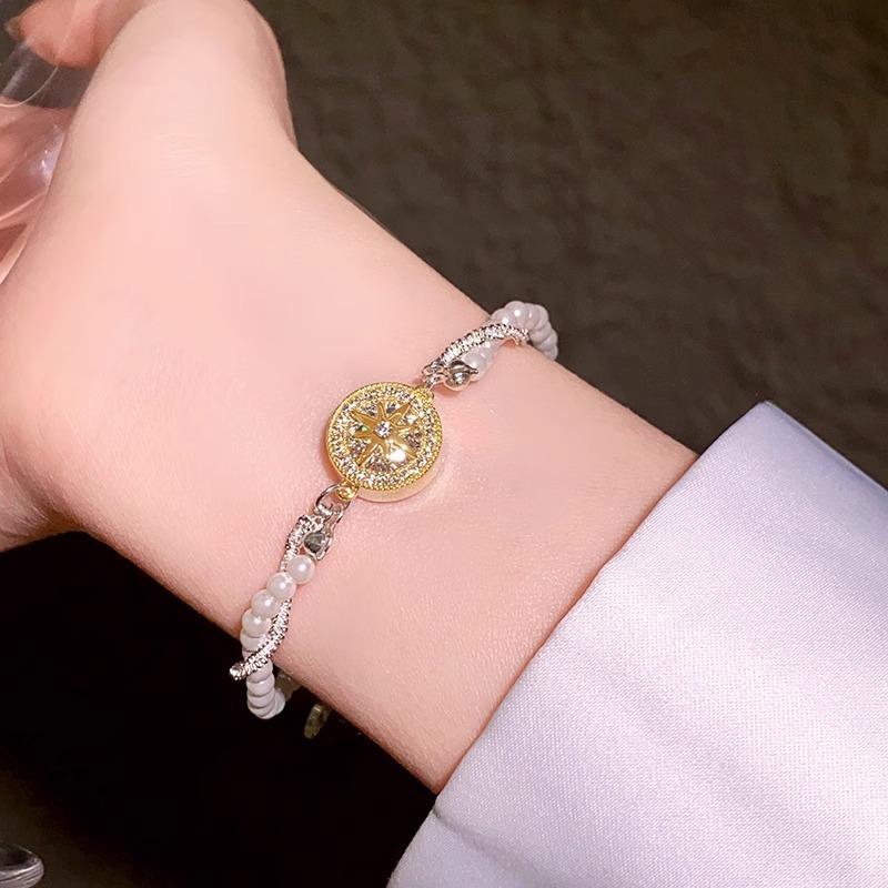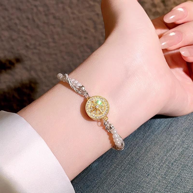 Pulsera Trenzada Envuelta en Perlas de Zircón Estrella de Ocho Puntas para Mujer Diseño Nicho Exquisita Pulsera de Lujo Ligero de Verano de Alta Gama para Mujer