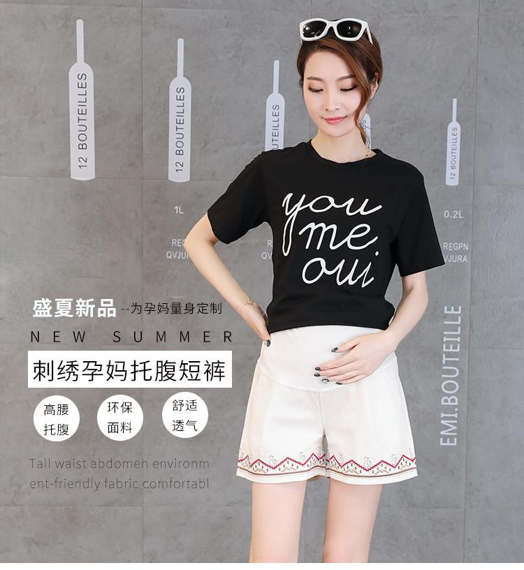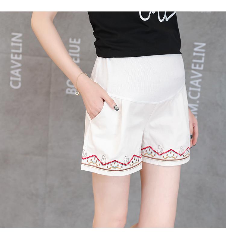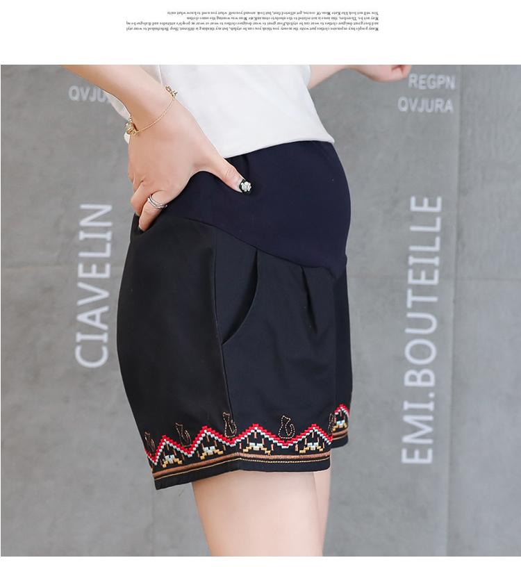 Maternidad 2022 Verano Nuevo Shorts de Vientre para Mujeres Embarazadas Moda Trendy Mamá Bordado Famoso Estilo Étnico Talla Grande Pantalones Haren