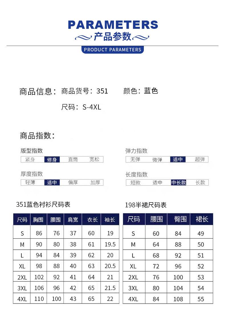 351 blue shirt, 198 navy blue skirt, 351 blue shirt + 198 navy blue skirt, 187 blue pants, 501 black skirt, 50...
