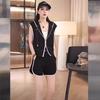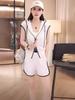 Traje Deportivo Urbano con Base de Sal para Mujer Verano Nuevo Casual Moda Europea de Alta Gama con Capucha Shorts Conjunto de Dos Piezas # 909